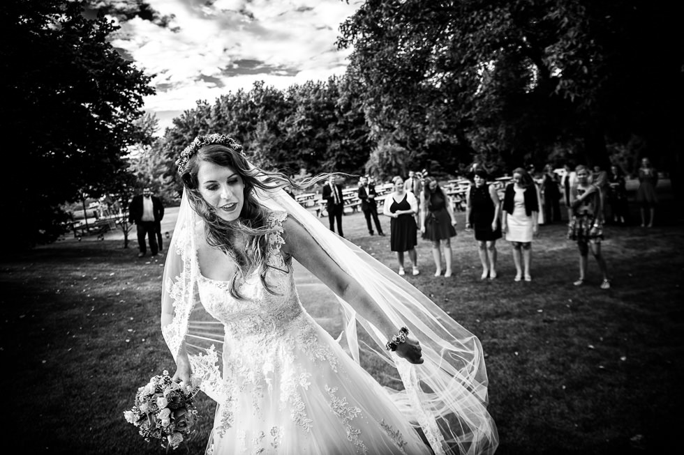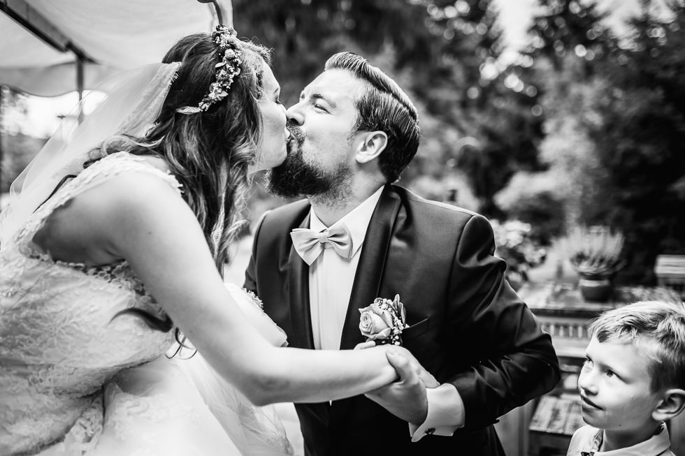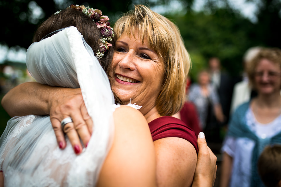 Die freie Trauung fand im Garten des Hofgutes statt. Ausreichend Platz gibt es in den Aussenlagen dafür. Leider fing es nach der Trauung, zum Glück erst nach der Trauung, etwas zu regnen an. So dass die Gäste sich in den überdachten Teil flüchten mussten. Aber dies hat der Stimmung keinen Dämpfer verpasst. Nachdem der Regen aufgehört hatte, sorgte das Brautpaar mit einem Eismobil auf einem Fahrrad für eine gelungene Abwechslung. Da wir für die Portraits nicht viel Zeit hatten, haben wir diese direkt auf dem Gelände und der benachbarten Wiese des Hofgutes gemacht. Die Abendliche Feier fand dann in der wunderschön dekorierten Eventscheune statt. Den späteren Abend konnten wir noch wunderbar für einige Hochzeitsportraits nutzen.