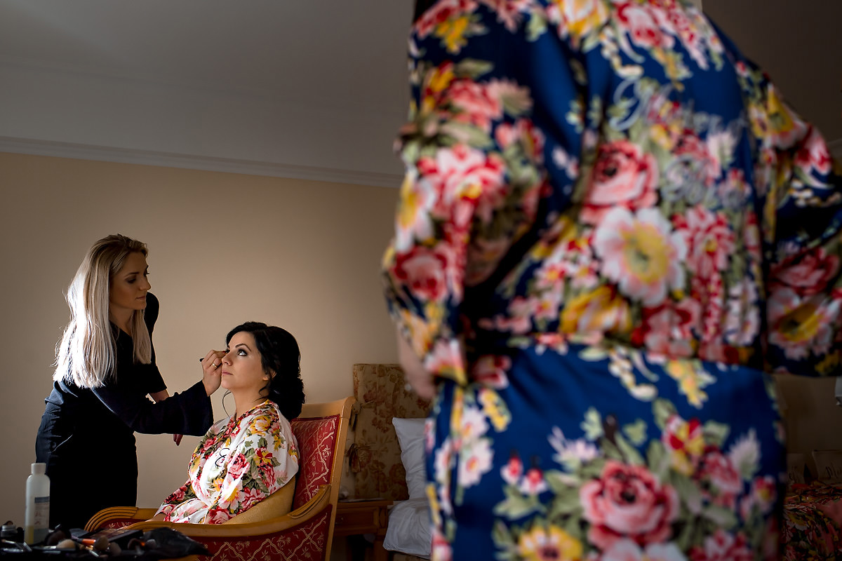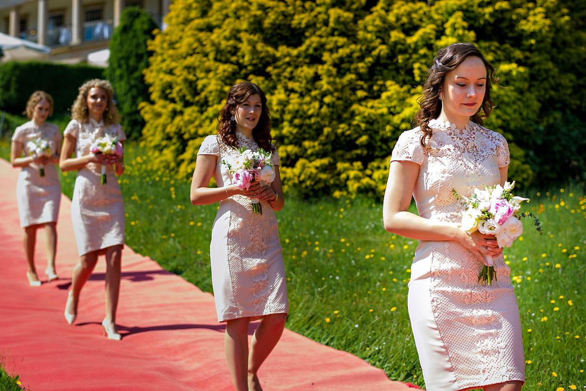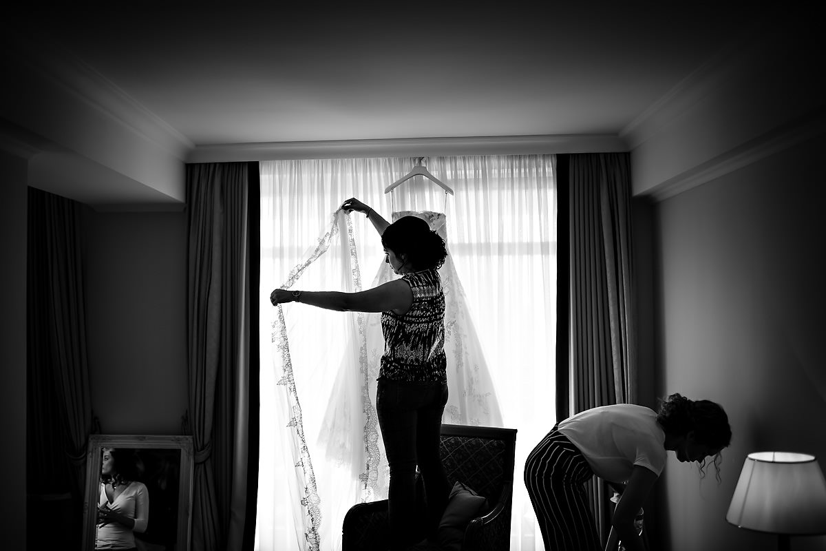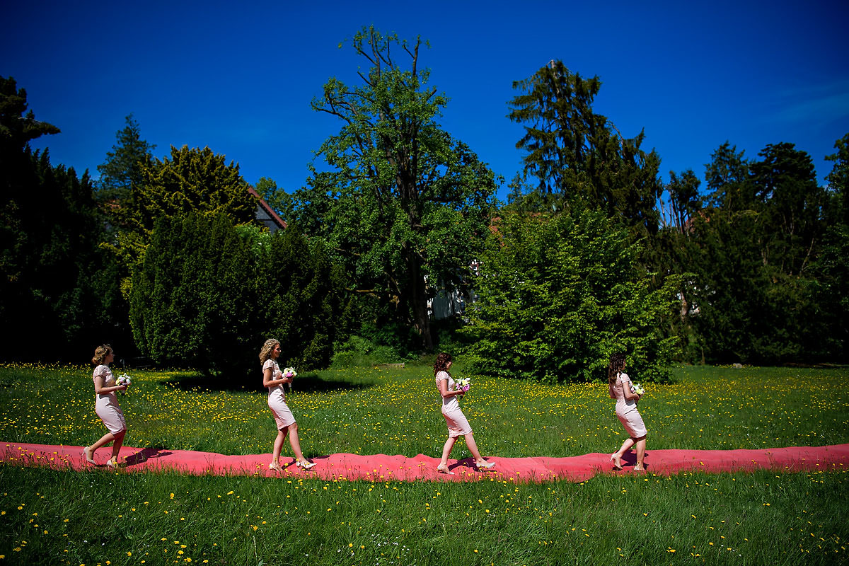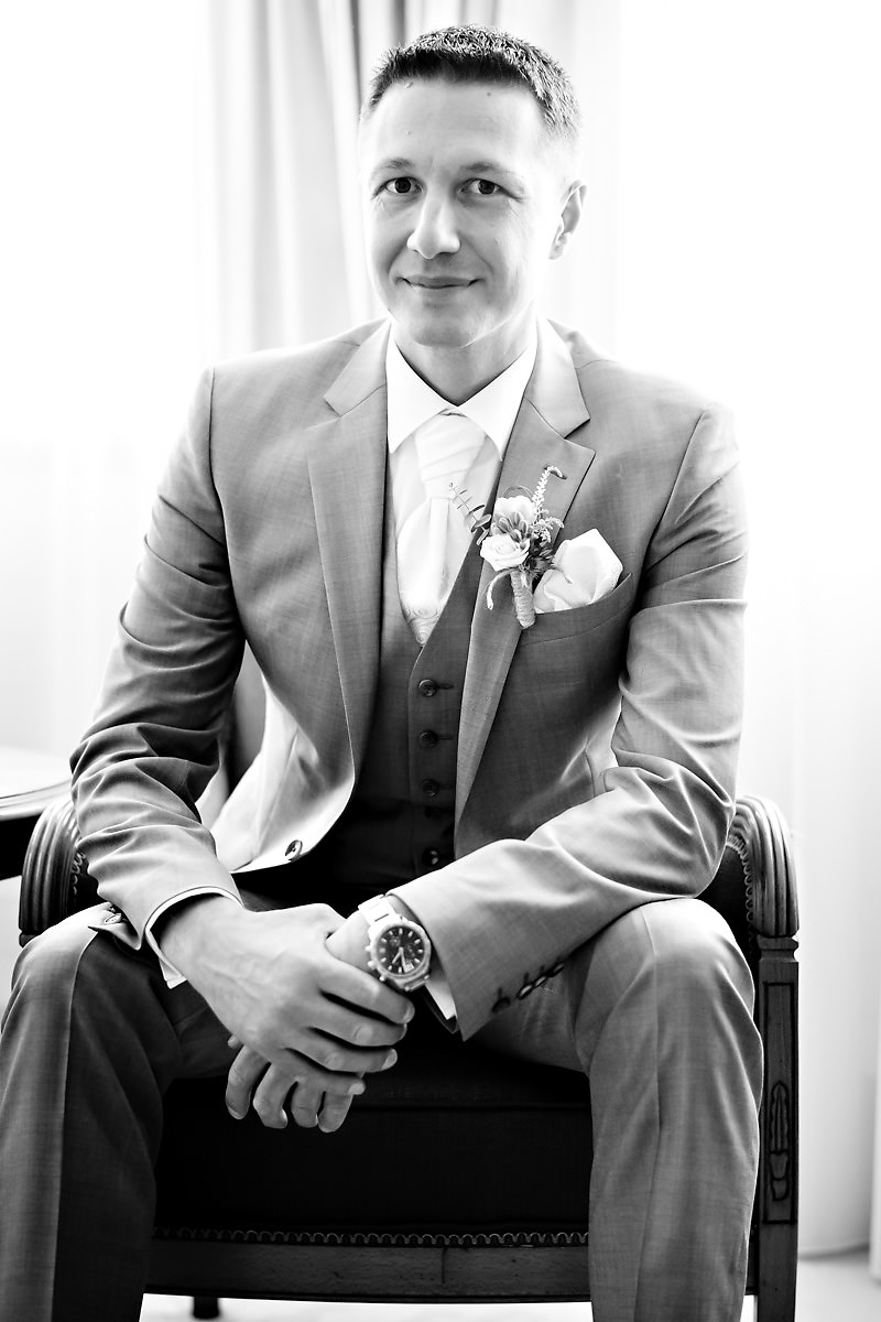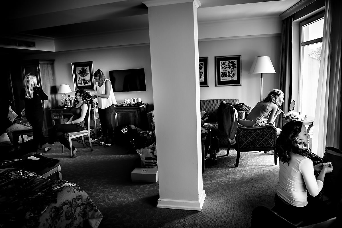 Die Brautvorbereitungen fanden in einer der Suiten im Hotel statt. Dort erwartete mich die Braut mit ihren vier Brautjungfern. Daneben war natürlich auch noch die Brautmama anwesend. Was ein schöner Start in den Tag, sich im Kreise seiner liebsten für den kommenden Tag zurecht zu machen. Anschliessend wartete der Papa in der Lobby, um die Braut zur Trauung zu führen.