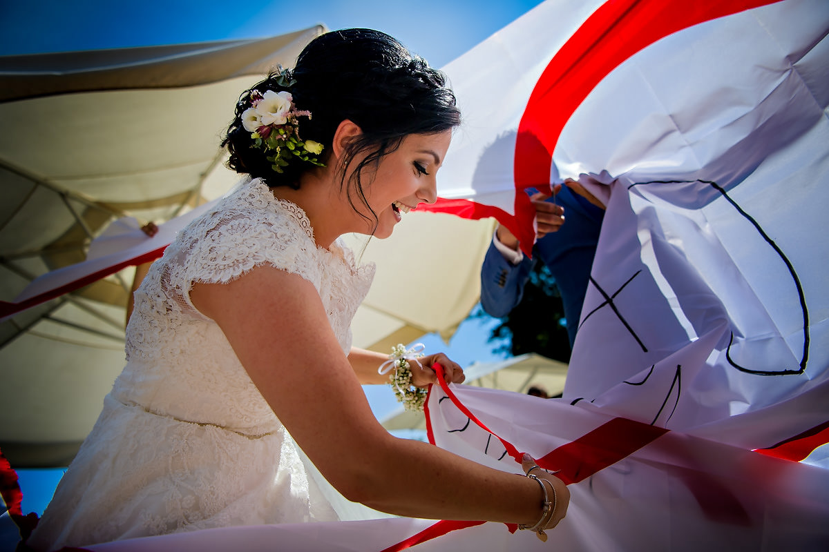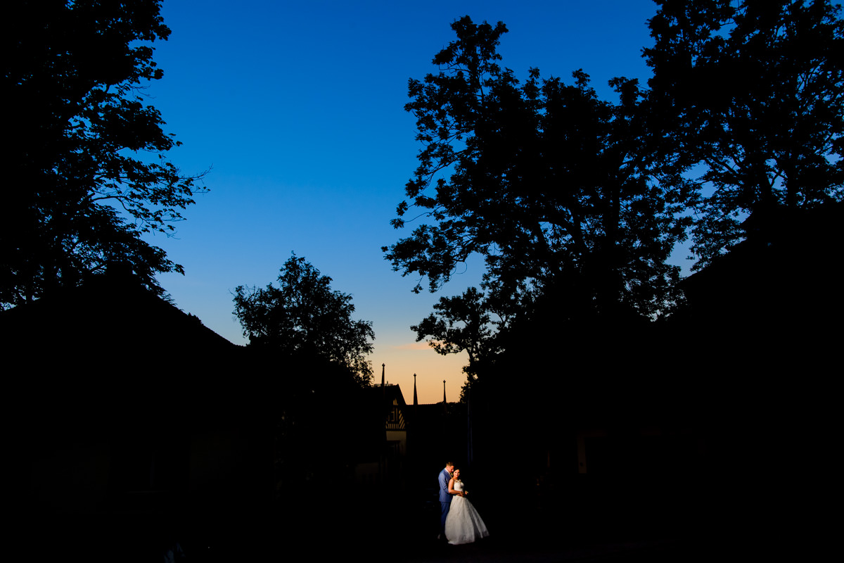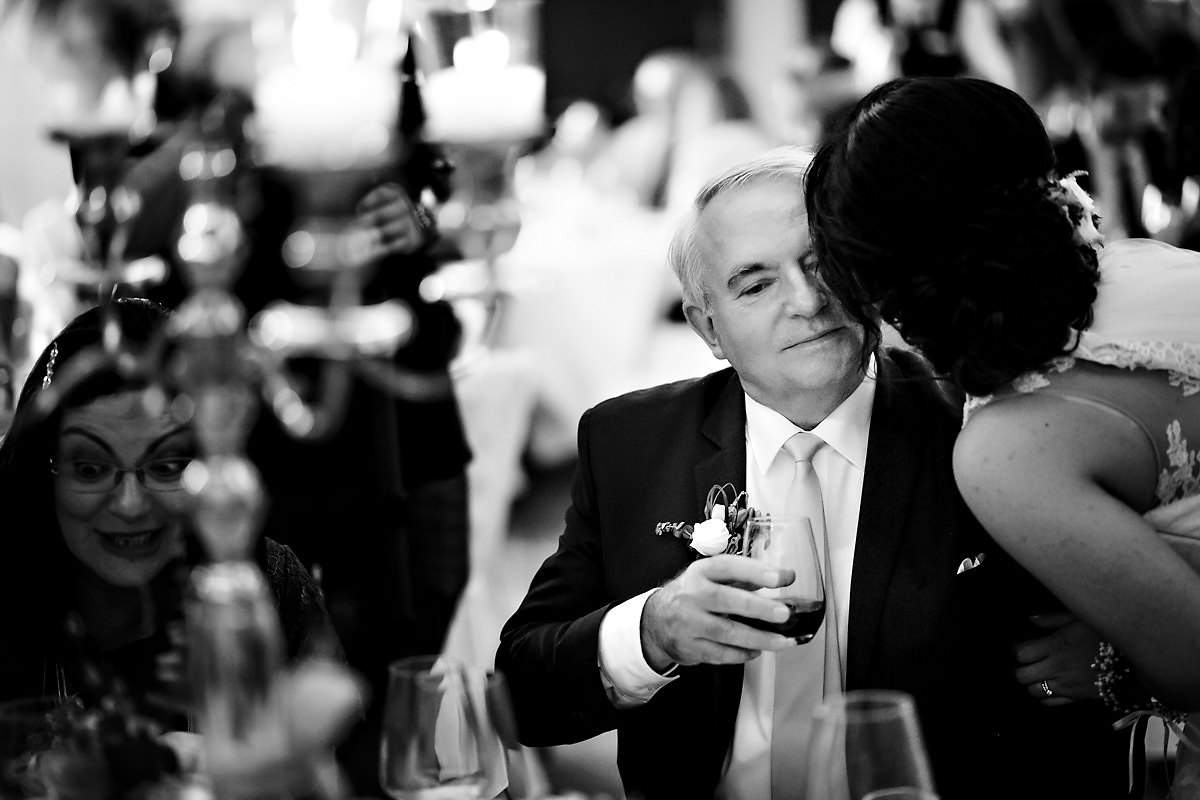 Die abendliche Feier fand im Festsaal des Hotels statt. Leckeres Essen und ein paar Reden prägten das abendliche Programm. Danach gab es ein spektakuläres Feuerwerk auf der Terrasse. Da das Brautpaar bulgarische Wurzeln hat, und auch einige Gäste aus Bulgarien angereist waren, gab es für die Gäste noch eine spezielle Überraschung. Die beiden haben sich traditioneller Bulgarische Kleidung angezogen. Dann lockten sie mit bulgarischer Tanzmusik jeden der Gäste auf die Tanzfläche.
