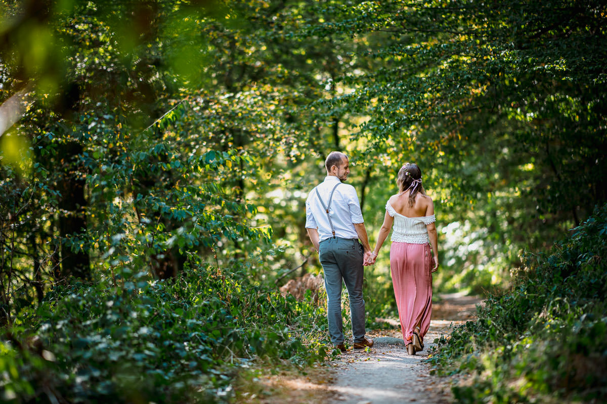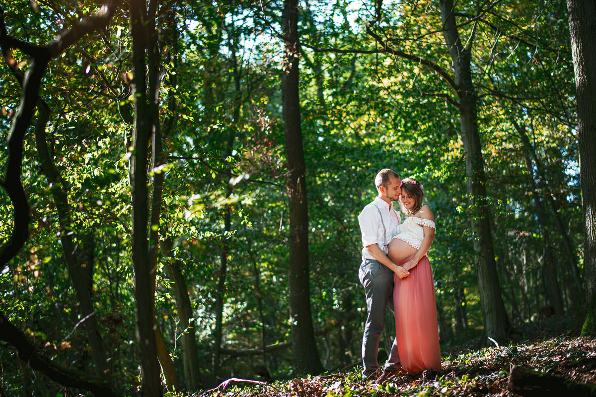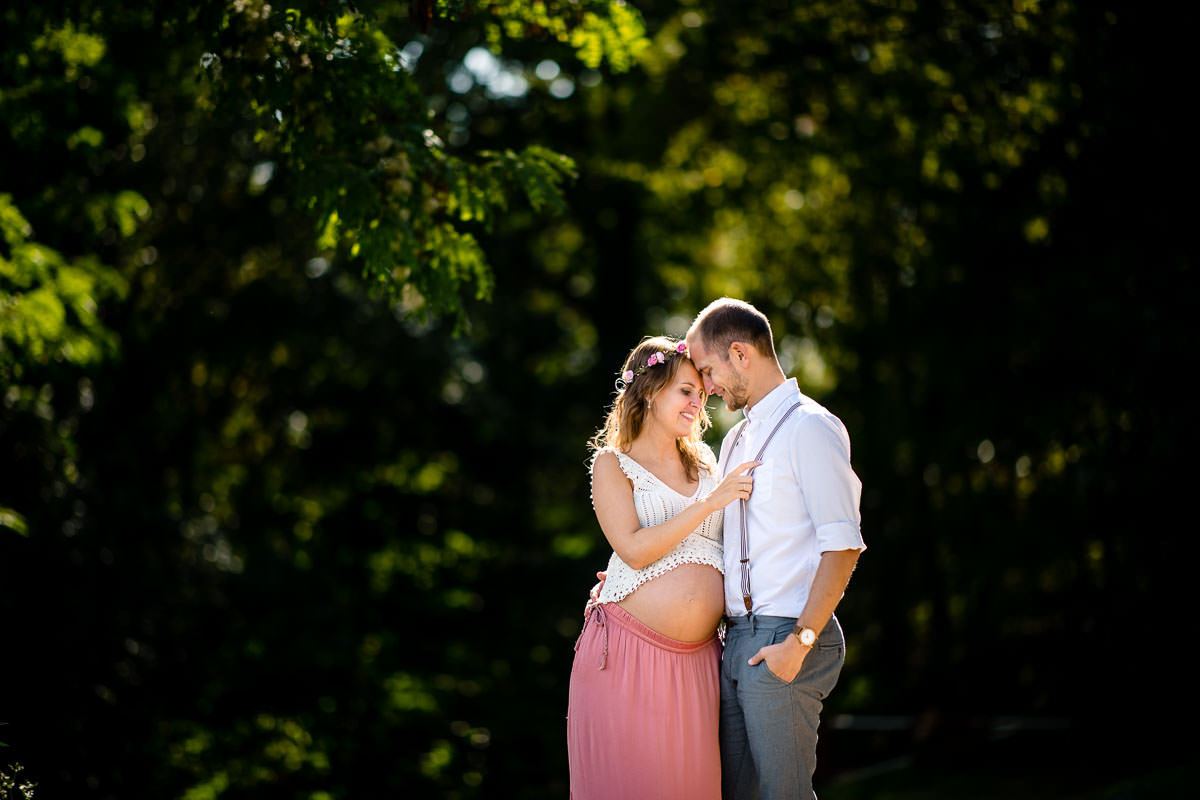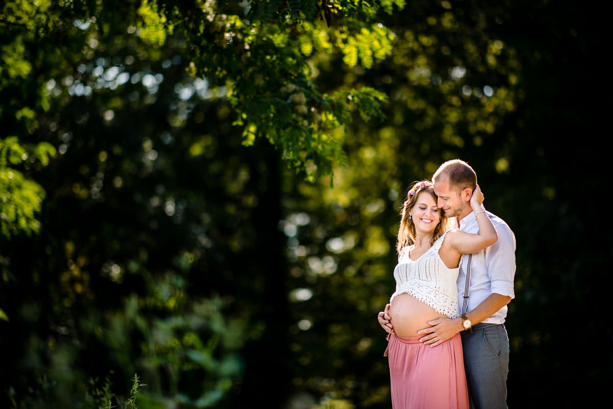 Ein Paarshooting in der Schwangerschaft sollte so ca. 4-8 Wochen vor dem Geburtstermin stattfinden. Dann hat euer Babybauch schon eine sehr schöne Form und ihr seid körperlich fit. Denn ganz klar, draußen in der Natur Bilder zu machen, ist etwas anstrengender als im Studio. Da ihr euch einfach mehr bewegen müsst. Aber keine Angst, wir legen Pausen ein, wenn ihr es benötigt. Um euren Bauch gut sehen zu können, solltet ihr etwas bauchfreies tragen. Alternativ bieten sich auch eng anliegende Tops oder Kleider an. Grundsätzlich sollte es so sein, daß man die Kontur eures Bauches gut sieht. Weite Kleider sind zwar bequemer, aber man sieht darin nicht gut die Form. Die Zwei haben das perfekt gemacht bei diesem Babybauch Shooting in Mannheim. Von der Uhrzeit ist am besten der Nachmittag geeignet, da das Licht um diese Tageszeit am schönsten ist. Die Location für die Bilder sprechen wir gemeinsam ab. Für das Schwangerschaftsshooting das ihr hier seht,  sind wir einfach ins Grüne an einen Waldrand gefahren. Ihr seht man braucht keine ausgefallene Location für schöne Schwangerschaftsbilder in Mannheim und Umgebung.