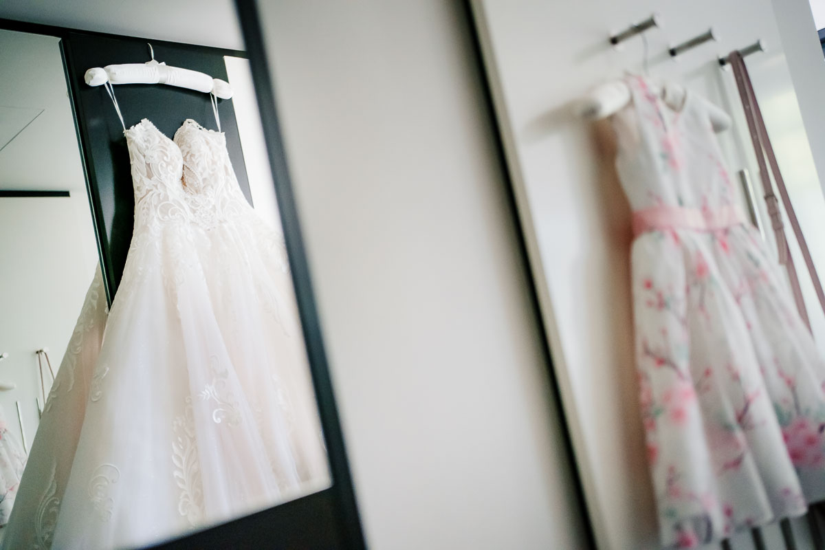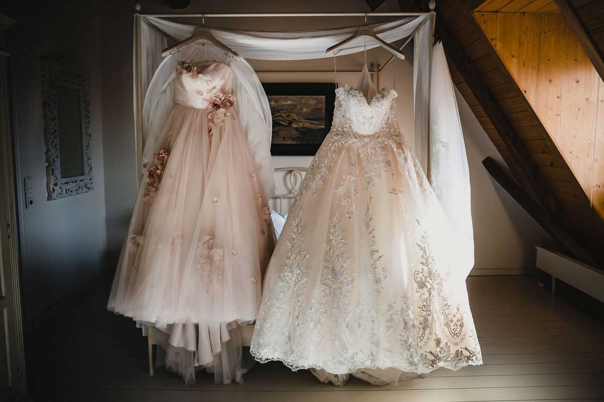 Brautkleid-Fotos sind weit mehr als nur Schnappschüsse vom Kleid — sie gehören bei einer Hochzeitsreportage zu den Must Have Aufnahmen. Denn die Braut wird es lieben, ihr Kleid in einer stilistisch schönen Aufnahme mmer wieder zu betrachten.