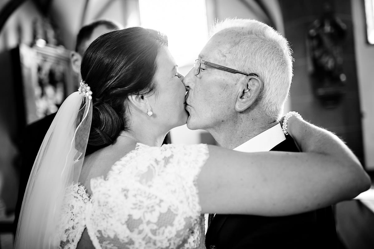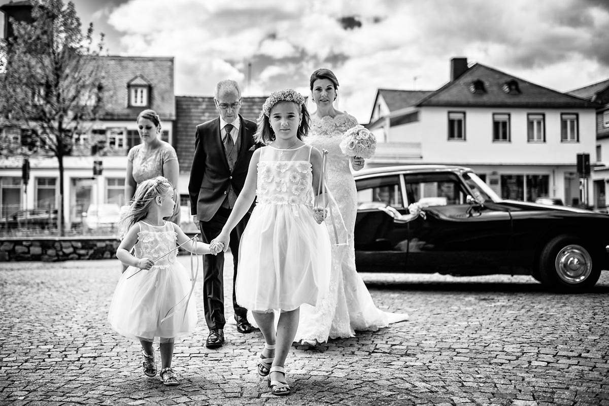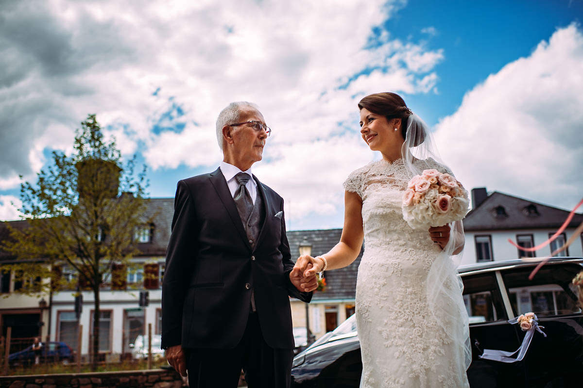 Die kirchliche Trauung fand in Geisenheim im Rheingauer Dom statt. Der Rheingauer Dom ist eine sehr schöne Kirche, die ausreichend Platz für eine grössere Hochzeitsgesellschaft bietet. Eine kurze Autofahrt im stilvollen Auto brachte uns an die Kirche. Dort fand dann die schöne Trauzeremonie mit der Familie und den zahlreichen Freunden und Bekannten statt.