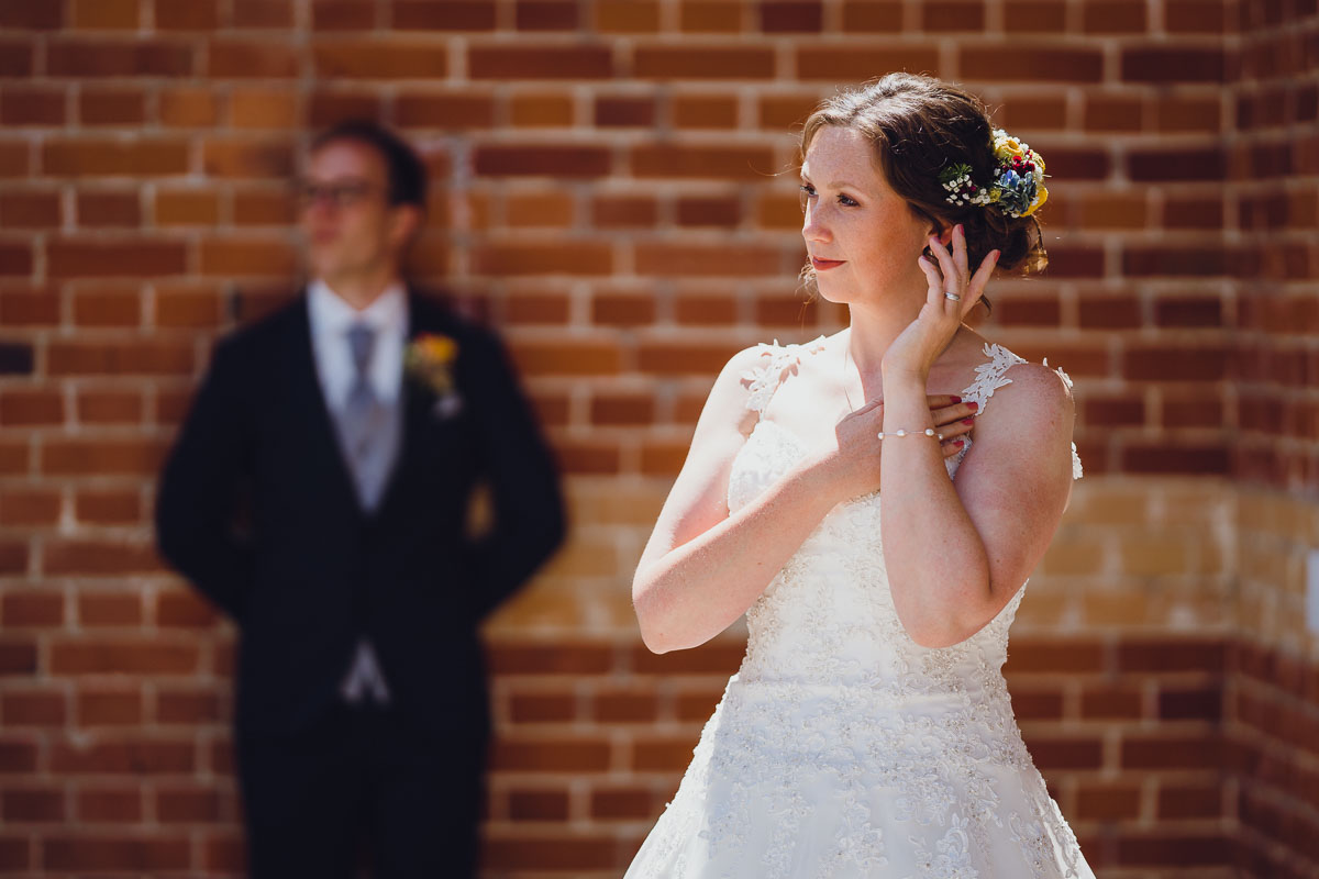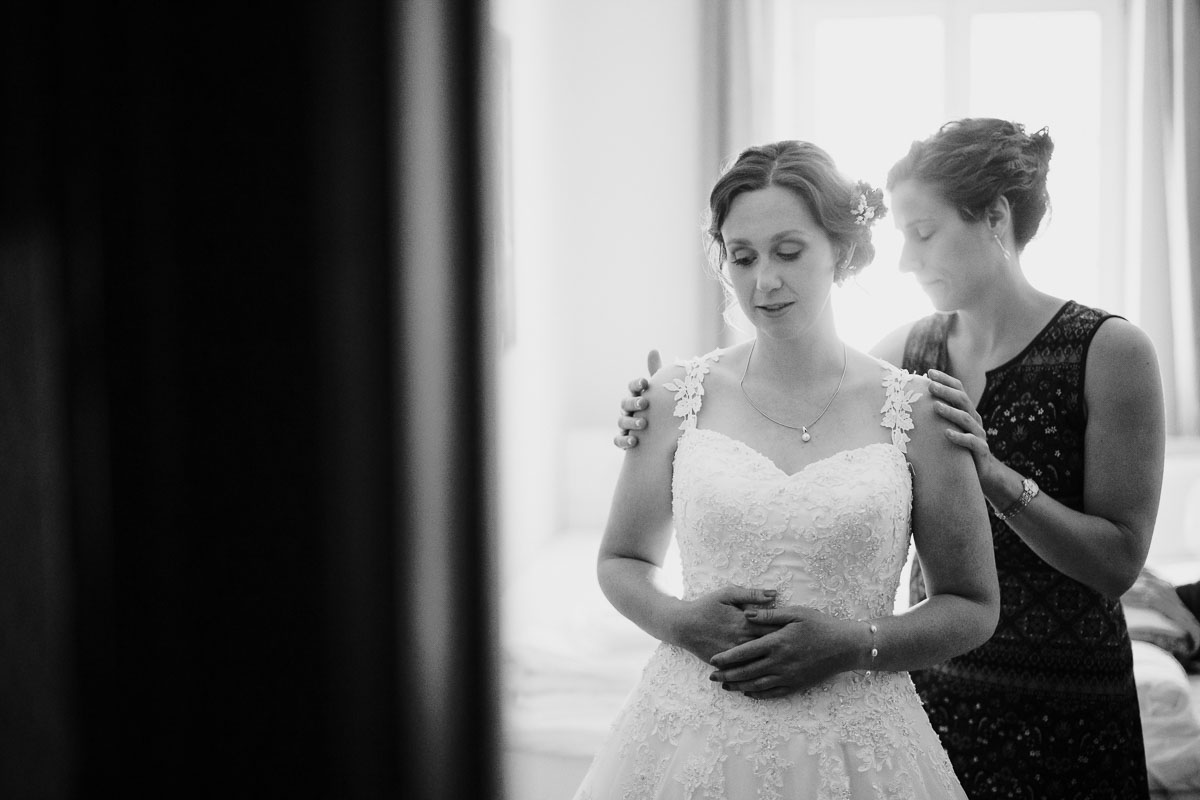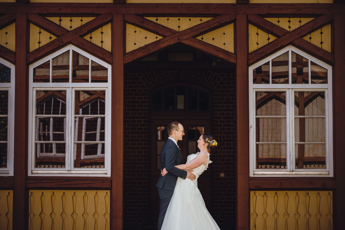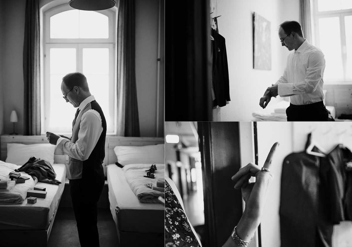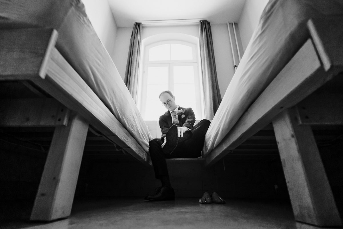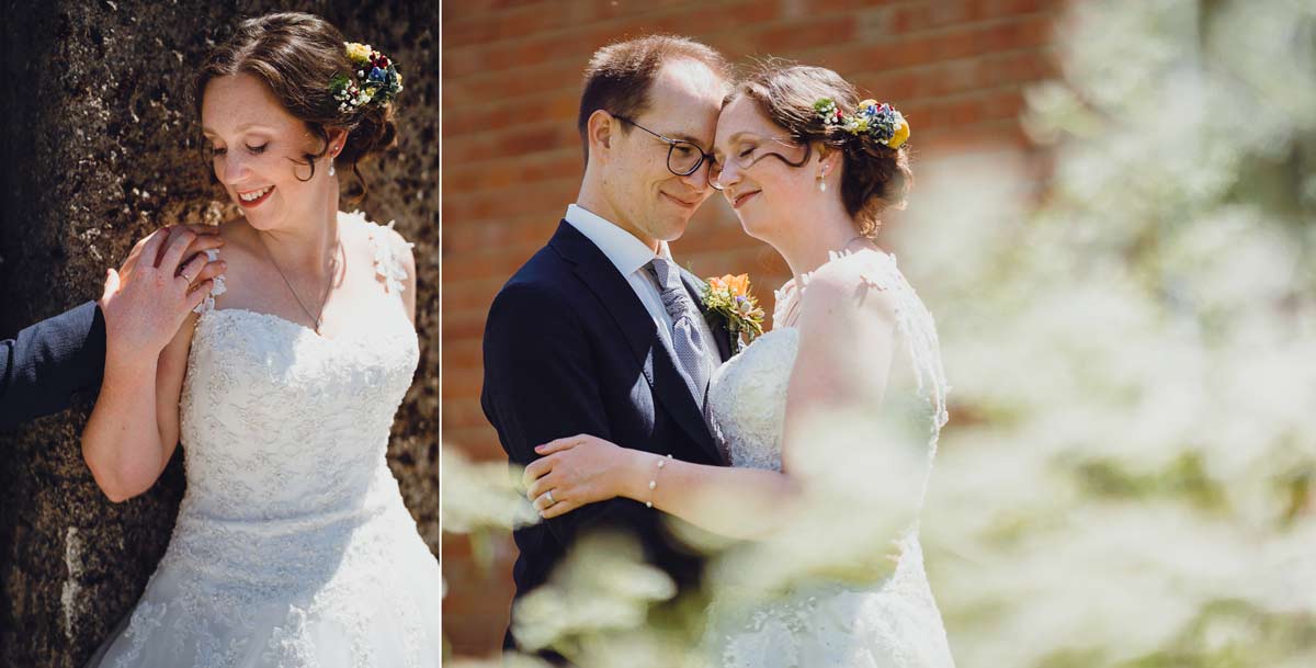 Begonnen haben wir fotografische den Tag mit dem Ankleiden. Das Brautpaar hatte Zimmer in den Offiziersunterkünften. Dabei unterstütze sie die Trauzeugin. Danach fand der First Look statt. Anschließend hatten wir Zeit für ein Brautpaarshooting. Gar nicht so einfach um die Mittagszeit bei recht starker Sonne. Aber wir haben das gut gemeistert.