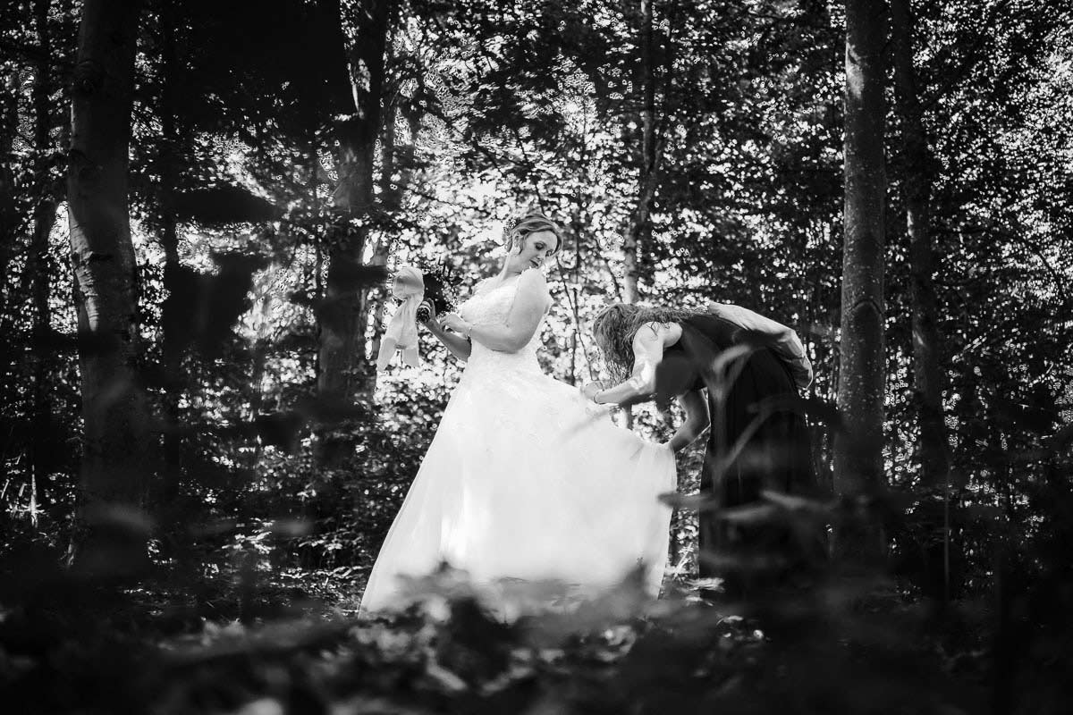 Nach der Trauung fanden die Gratulationen und der Sektempfang ebenfalls auf der Lichtung statt. Danach hatten die Gäste noch Zeit ihre Zimmer zu beziehen und der Rest der Gesellschaft ging in die Hochzeitslocation Alte Schmiede. Auch dort konnten wir abends nochmal ein paar Hochzeitsbilder machen.