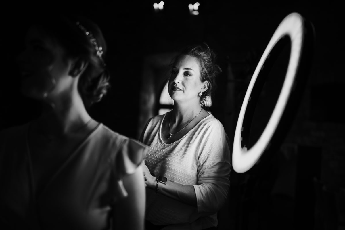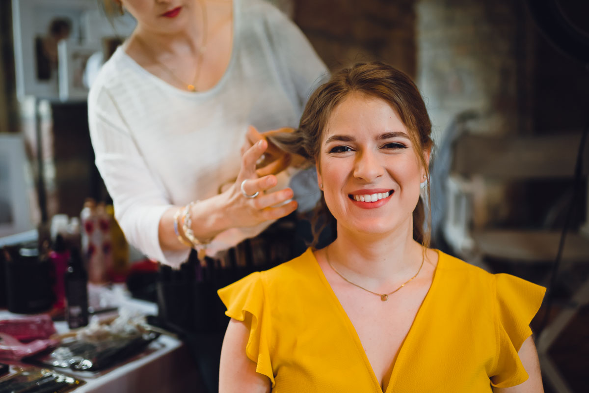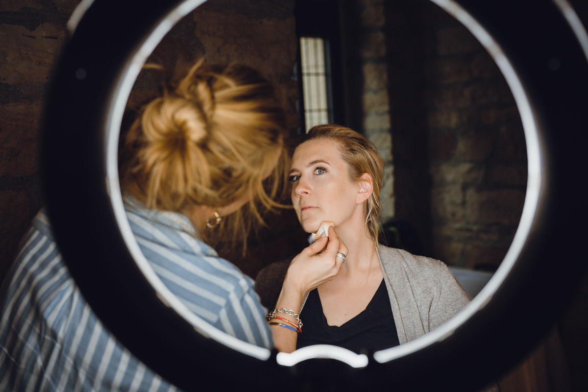 Daneben wurde dann auch die Braut gestylt. Also keine richtige Braut. Sondern in diesem Fall war es die Eventleiterin selbst, die auch durch die Hochzeit auf Probe moderiert hat. Für das Brautstyling war Nadine Hoffmann zuständig und für das Kleid die Brautzeit aus Maxdorf. Die liebe Britta von der Brautzeit hat auch gleich ihre beiden Töchter mitgebracht, die ebenfalls gestylt und auch Brautkleider angezogen haben. Für mich als Hochzeitsfotograf ein wahres Fest. Da ich gleich drei Bräute zur Verfügung hatte, mit denen ich Bilder machen konnte. Als weiterer Fotograf war mein lieber Kollege Emanuel Spiegel mit vor Ort.