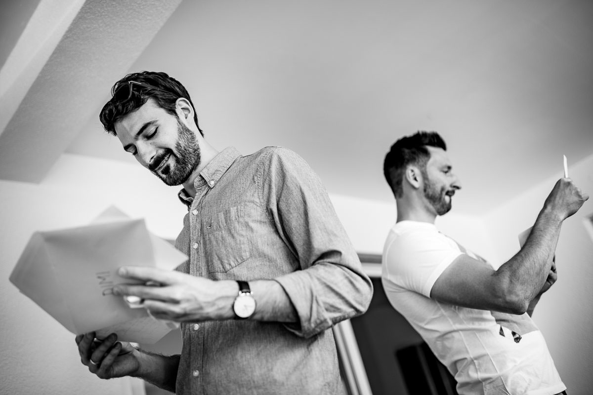 Es war so schön zu sehen, wie liebevoll und eng die Beziehungen in der Familie gepflegt werden. Zum Beispiel hat der Bräutigam sowohl für die Eltern als auch seinem Bruder und seinem Trauzeugen persönliche Briefe verfasst. Eine wahnsinnig tolle und persönliche Geste, wie ich finde.