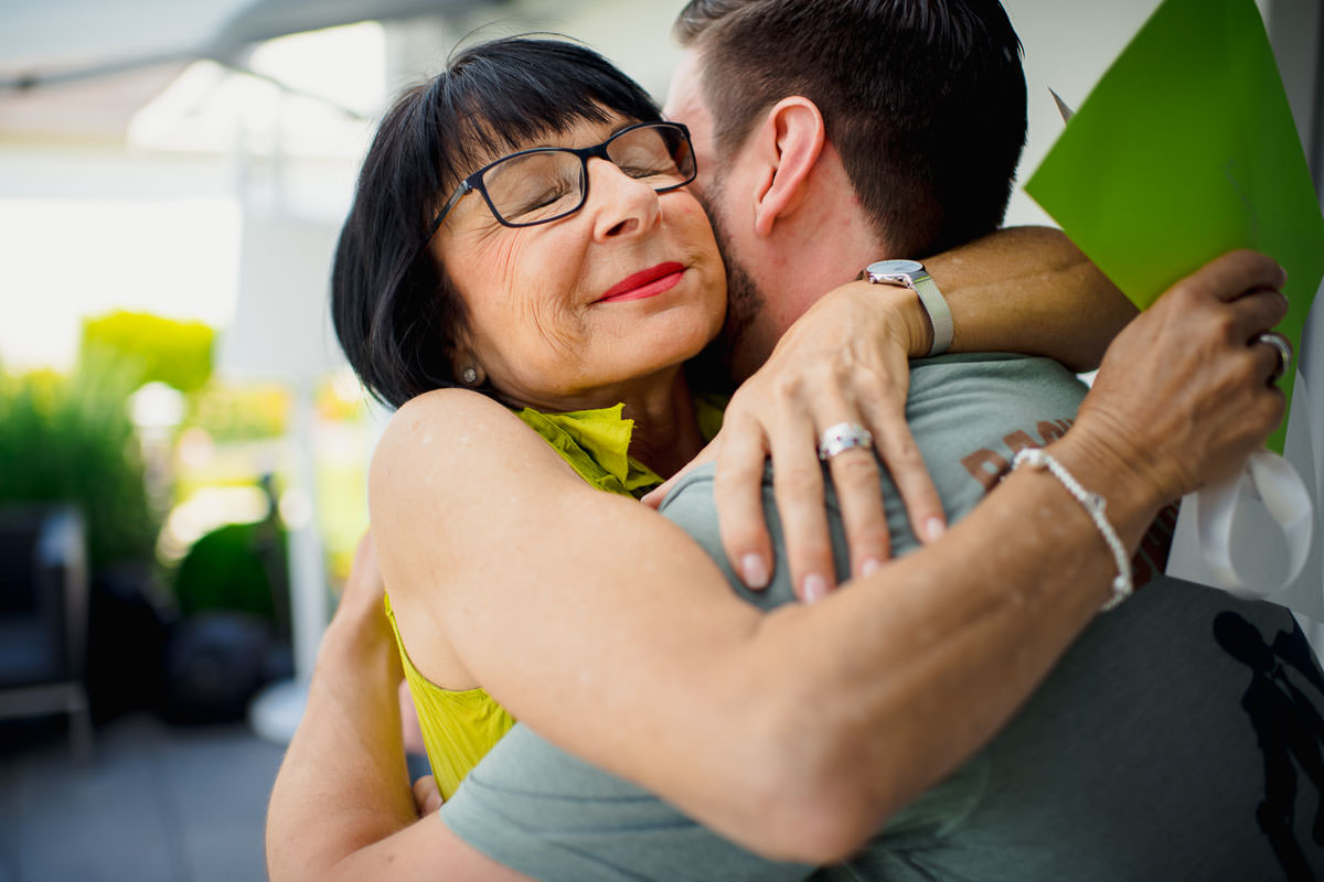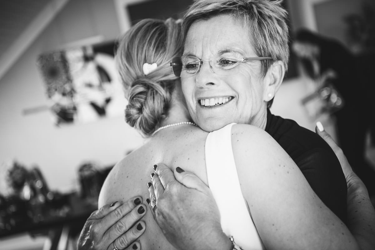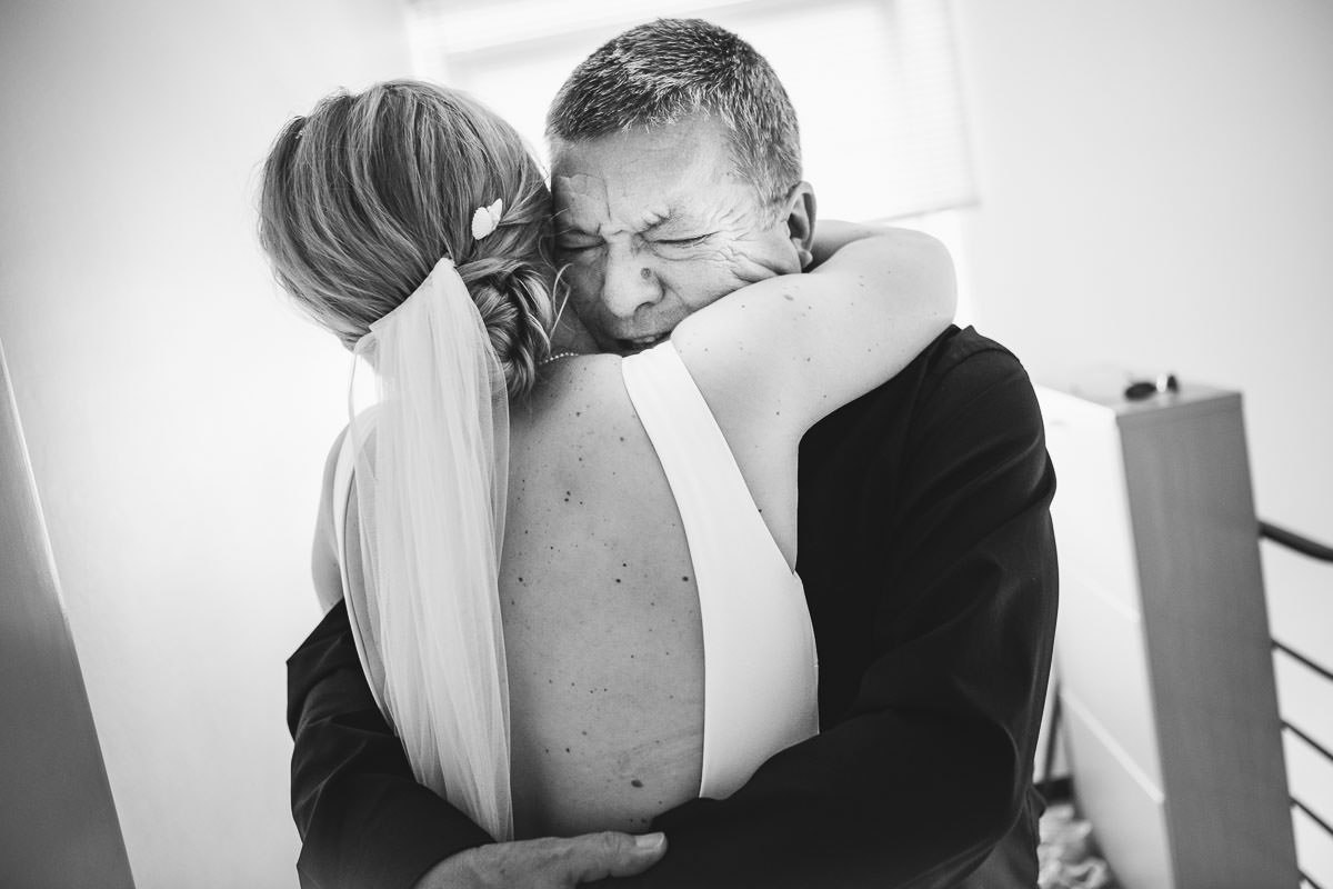 Danach ging es zur Braut. Ebenfalls nach Kelkheim. So hatte ich es auch nicht weit. Dort erwartete mich neben der Braut noch die Brautmutter, die Tochter der Braut und ihre beiden Trauzeuginnen. Ein schöner Moment war hier zum Beispiel dieser. Nachdem alle bis auf die Braut gegangen sind, und ein wenig Ruhe eingekehrt ist, kam der Braut. So hatten die zwei noch einen Moment für sich.