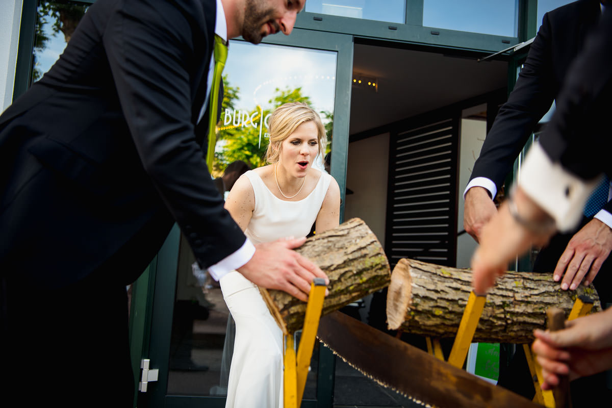 Die freie Trauung fand im Innenhof der Burg Crass statt. Natürlich mit Blick auf den Rhein. Die freie Trauung wurde von Nadine Stauch geleitet, die ebenso vor ein paar Jahren den Bruder getraut hat. Nach der schönen und persönlichen Trauzeremonie fand der Sektempfang ebenfalls auf der Terrasse statt. Noch den Gratulationen ging es für uns zum Portraitshooting. Das Shooting haben wir auf dem Gelände der Burg Crass gemacht.