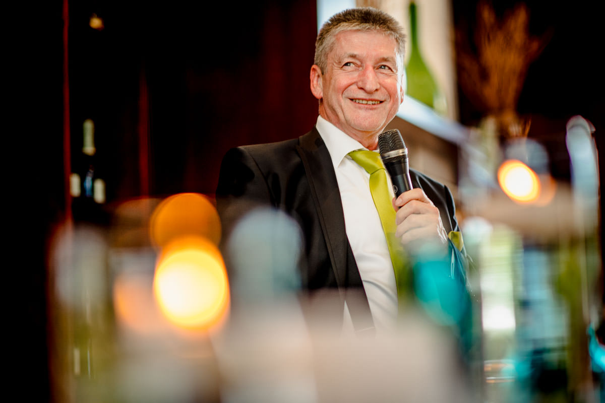 Die abendliche Feier fand im schön dekorierten Festsaal statt. Dass bei den beiden die Familie ganz wichtig ist, zeigte sich bei den liebevollen Reden vom Brautpaar. Als auch bei den Beiträgen der engsten Familienangehörigen. Der Kuchenanschniit musste gleich zweimal durchgeführt werden. Einmal bei der Hochzeitstorte und zweitens bei dem überraschend gelieferten Mettwurstkuchen. Lecker.