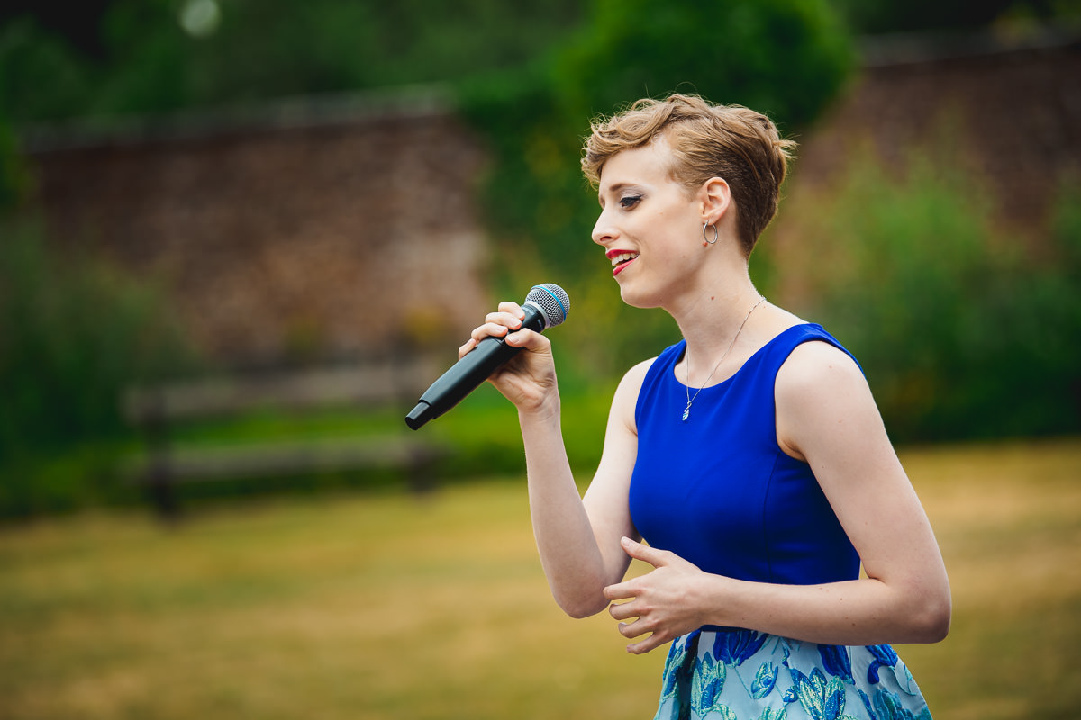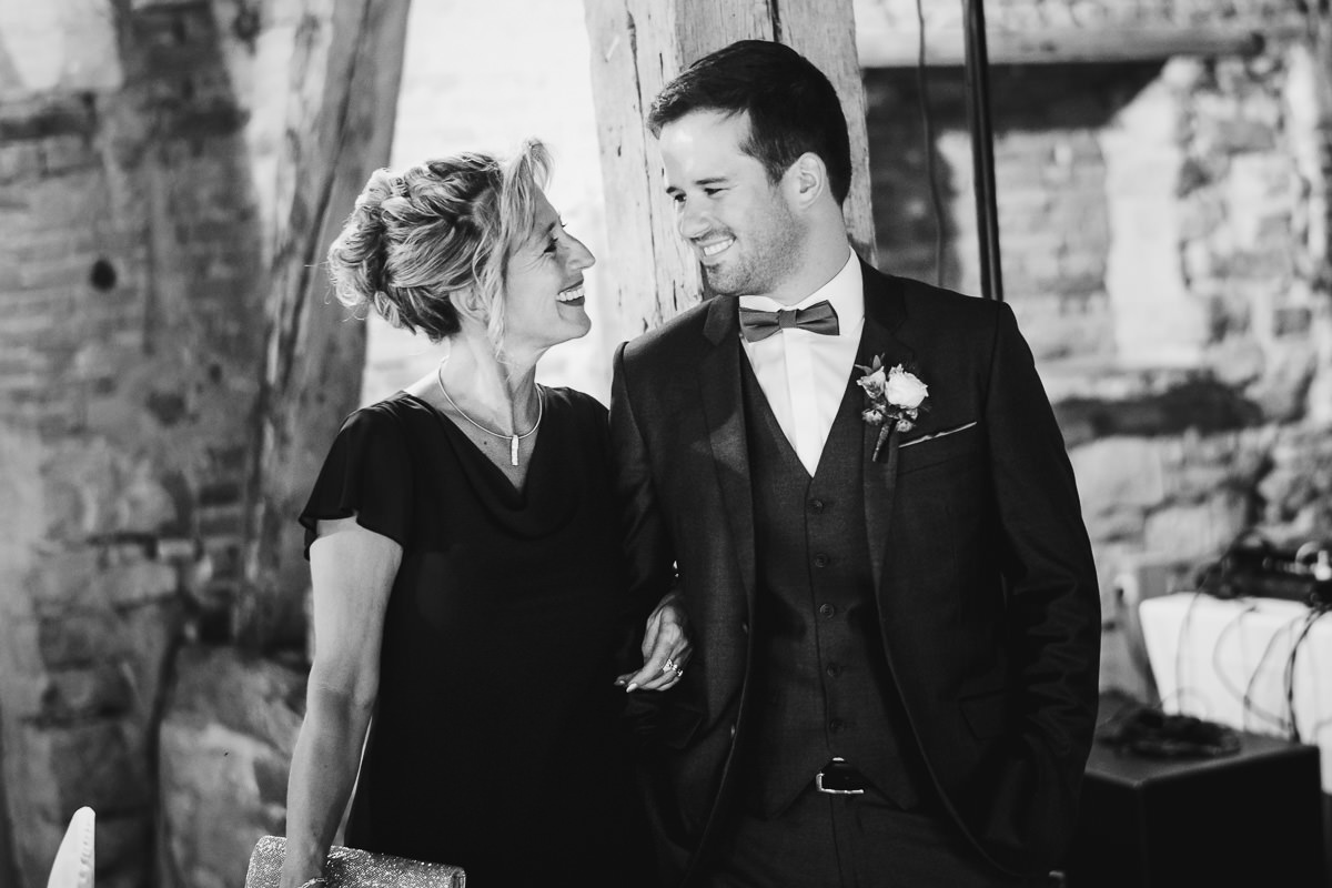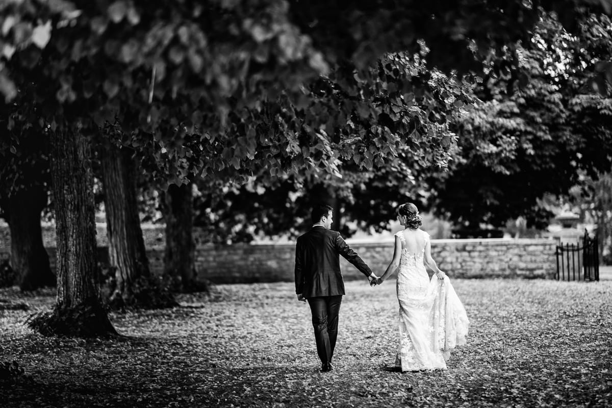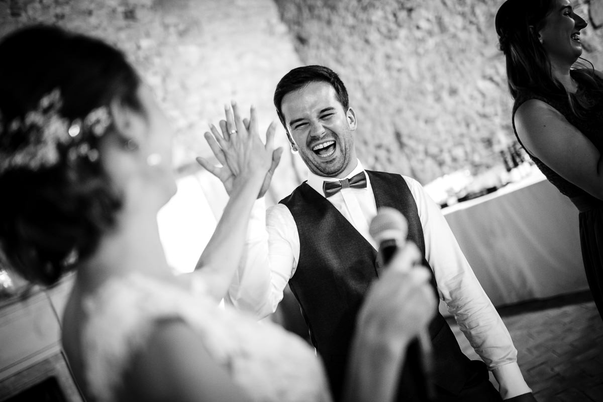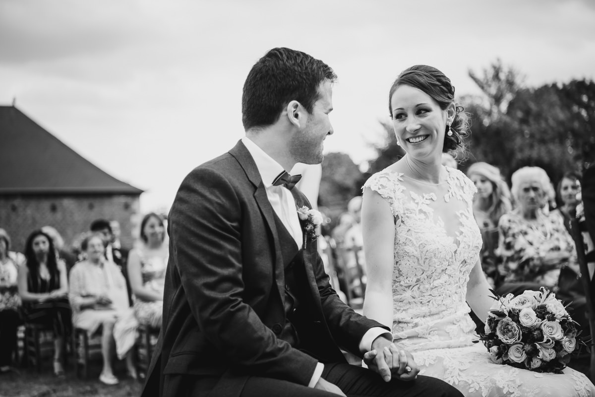 Die Trauung fand auf der freien Wiese statt. Leider hat sich die Sonne hinter dunklen Wolken versteckt. Ein Grossteil der Gäste wurde vom Hotel mit einem Bus zum Schloss transportiert. Da dieser infolge Baustellen leider verspätet war, musste die Braut im Innenhof noch etwas warten. Infolgedessen wurde sie auch immer nervöser. Aber dann war es endlich soweit, und es ging los. Die Trauzeremonie war trotz des düsteren Wetters eine der schönsten, die ich erlebt habe. Denn sie war komplett durch Beiträge der Freunde und der Familie gestaltet. Deswegen auch sehr persönlich. Nach der Trauung wurde noch kurz gratuliert bevor wir ein paar der Portraits gemacht haben. Leider war infolge des fortgeschrittenen Zeitplans nicht so viel Zeit dafür.