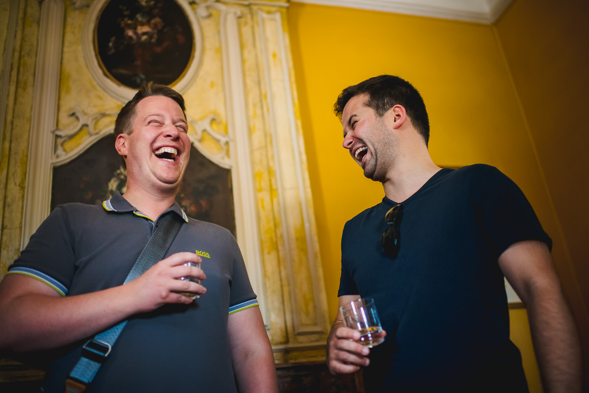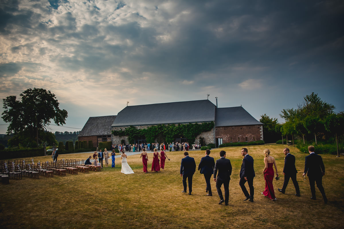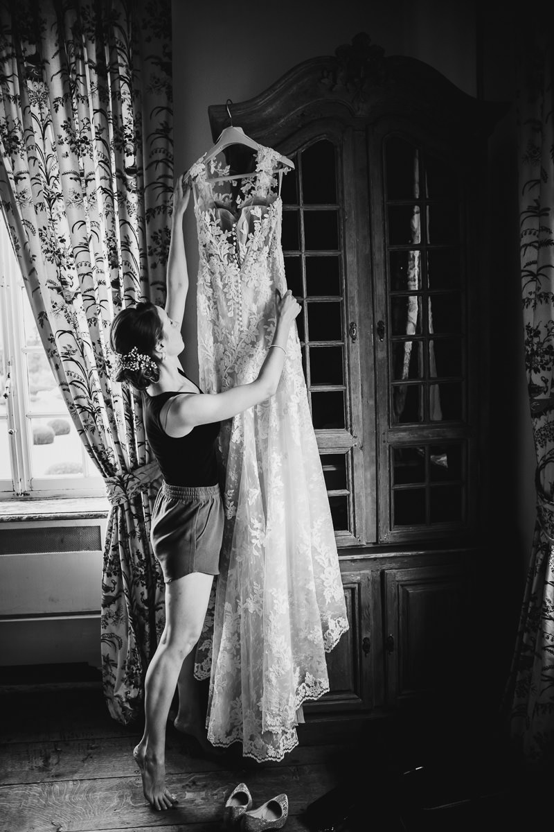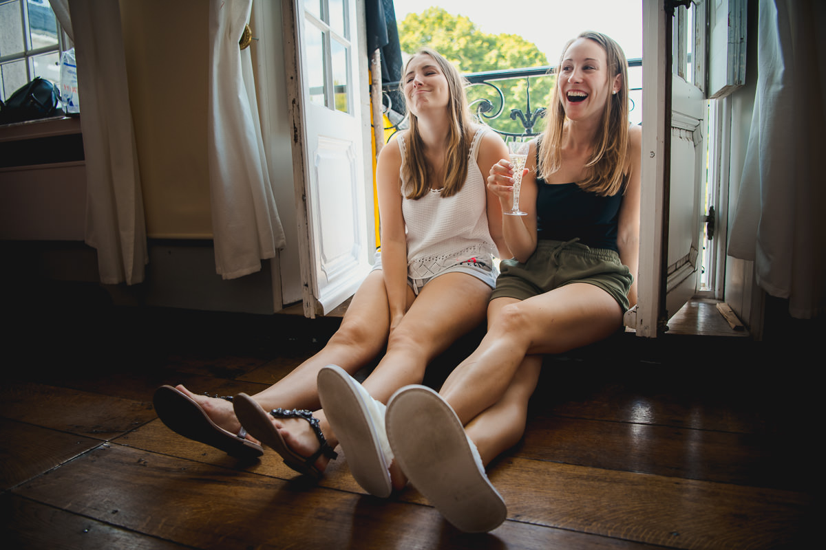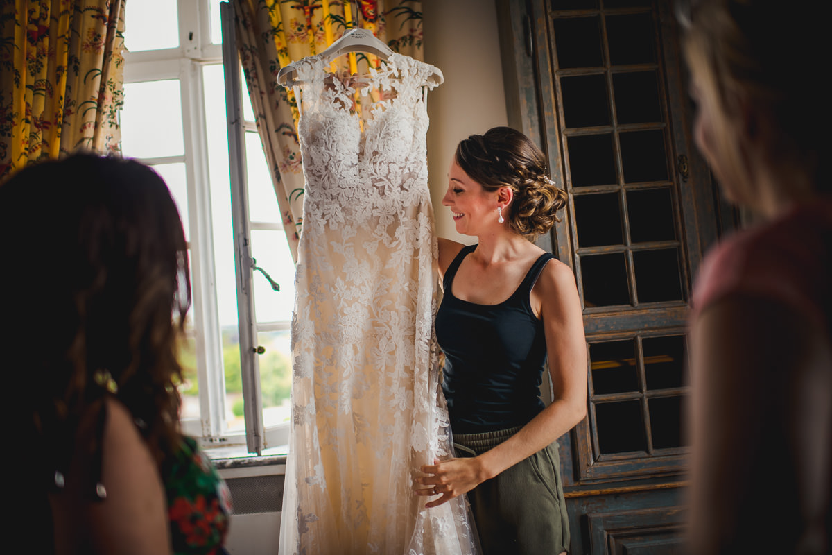 Die Brautvorbereitungen fanden, wie die gesamte Feier im Schloss Deulin in Belgien statt. Das Schloss befindet sich im privaten Besitz. Die Räumlichkeiten im Hauptgebäude standen der Braut für die Vorbereitungen zur Verfügung. Das Brautpaar selbst stammt aus Luxemburg und viele der Freunde sind ebenfalls aus Luxemburg angereist. Nach und Nach wurden auch die Räume immer voller, da sich immer mehr Freundinnen und Freunde eingefunden haben. Es hat einfach einen riesigen Spass gemacht, von Raum zu Raum zu gehen, um viele tolle Momente einzufangen. Der Bräutigam hat sich kurzfristig entschlossen, draussen im Innenhof sich final anzuziehen.