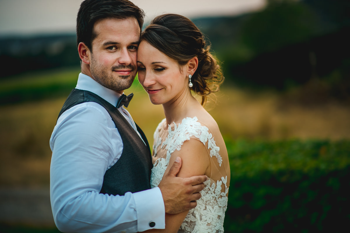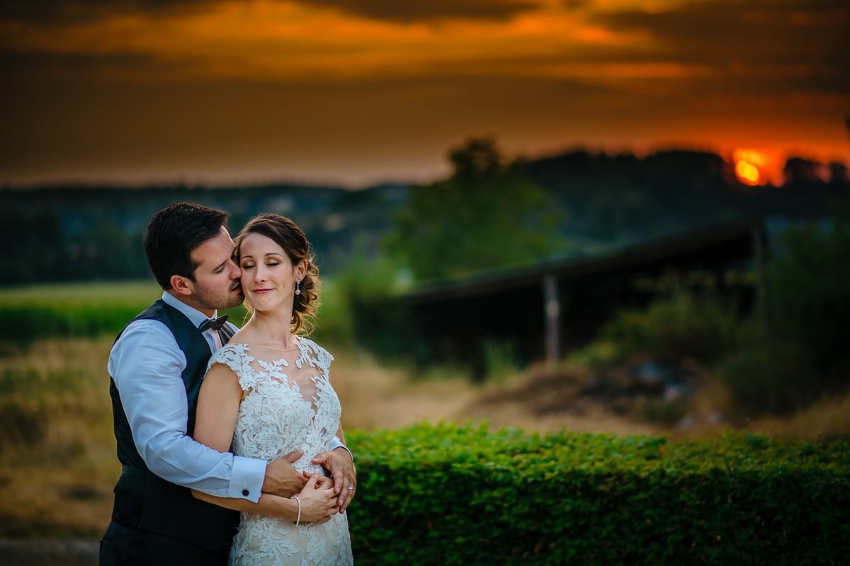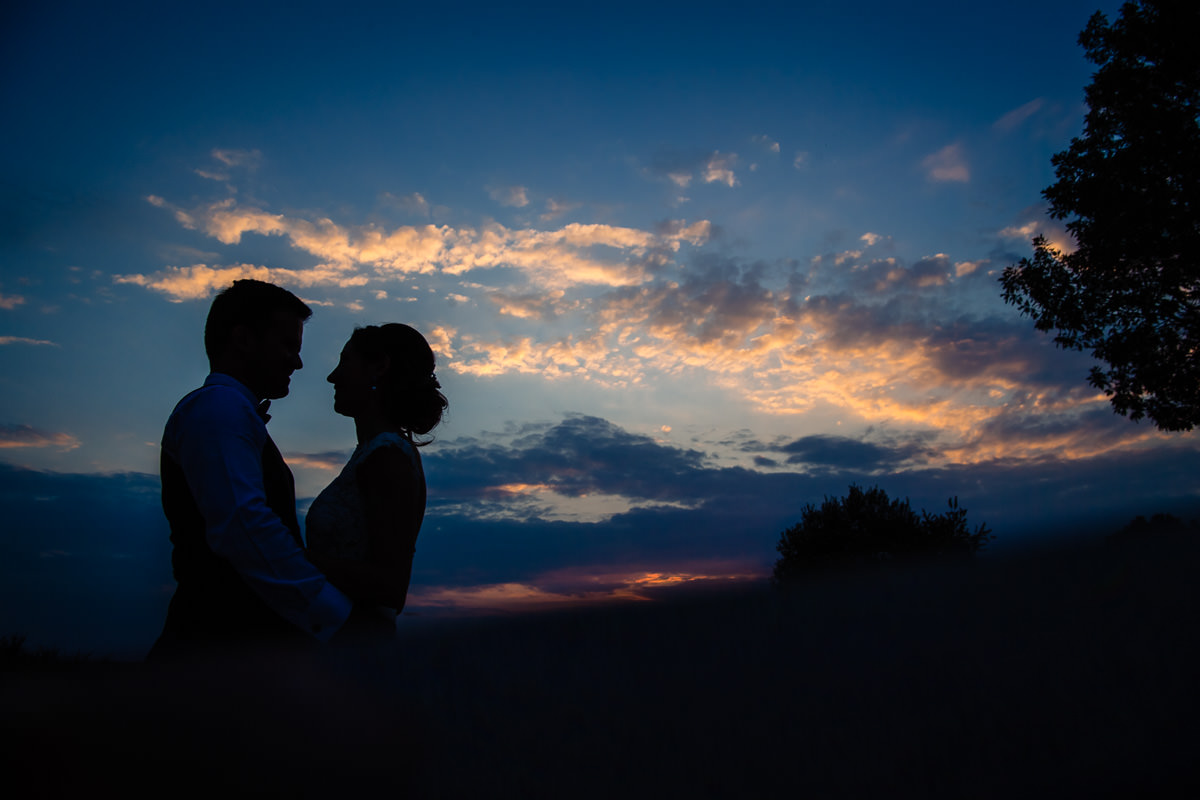 Die abendliche Feier fand in der Scheune des Schlosses statt. Der Abend war gut gefüllt mit verschiedenen abwechslungsreichen Programmpunkten und einem leckeren Essen. Dazwischen hatten wir noch Glück und konnten ein paar Hochzeitsbilder bei einem tollen Sonnenuntergang machen. Zu später Stunde kam dann noch der Eröffnungstanz, der die Tanzfläche für die tanzwütige Meute endgültig frei machte.