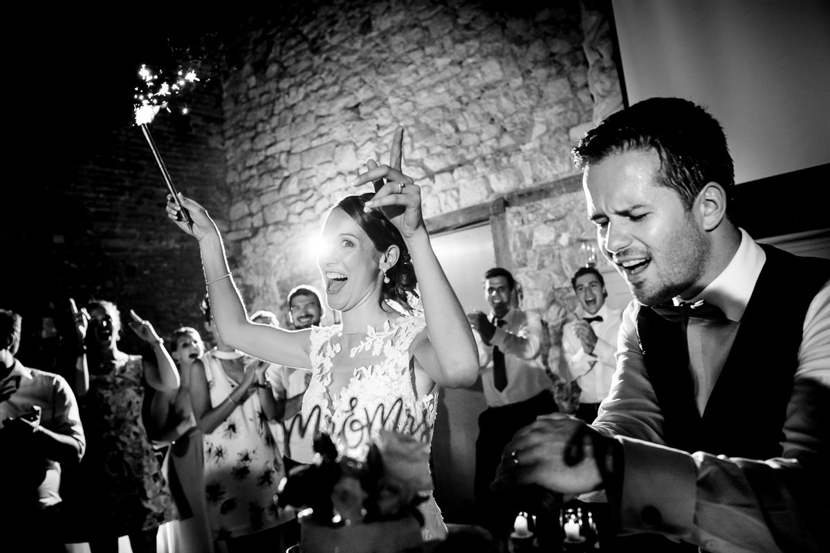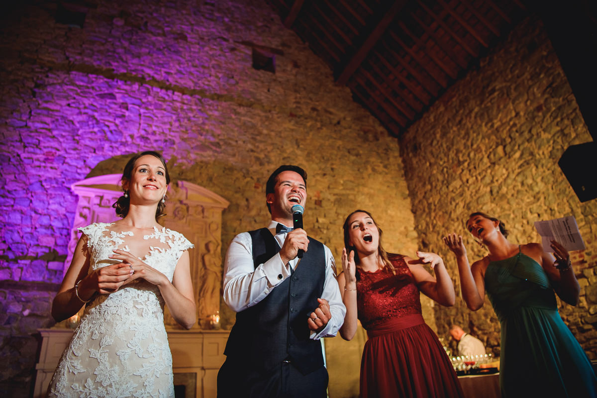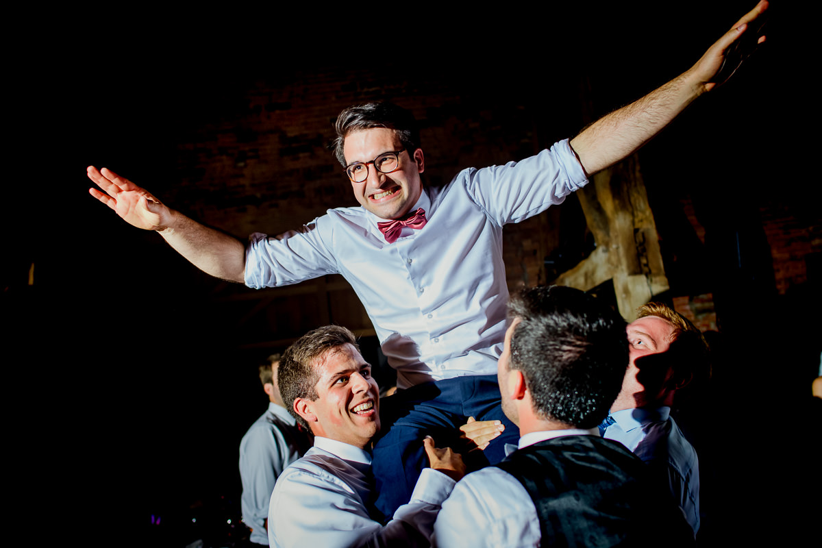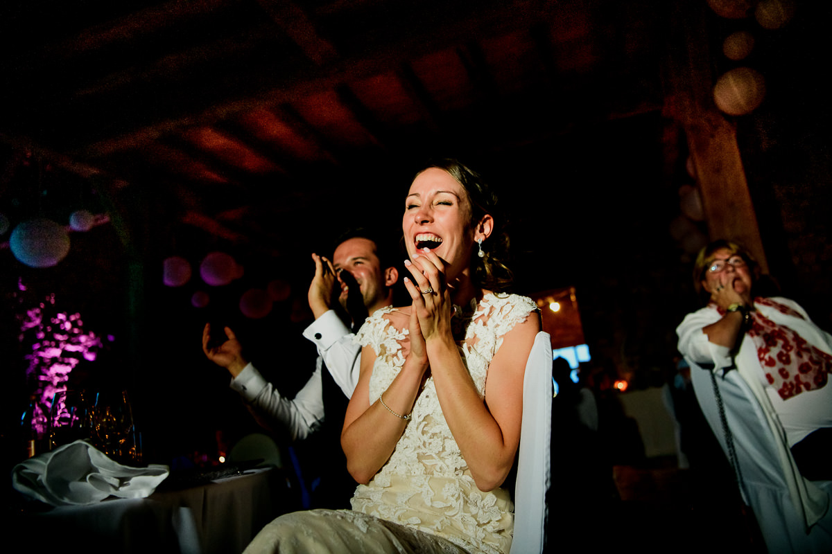 Die abendliche Feier fand in der Scheune des Schlosses statt. Der Abend war gut gefüllt mit verschiedenen abwechslungsreichen Programmpunkten und einem leckeren Essen. Dazwischen hatten wir noch Glück und konnten ein paar Hochzeitsbilder bei einem tollen Sonnenuntergang machen. Zu später Stunde kam dann noch der Eröffnungstanz, der die Tanzfläche für die tanzwütige Meute endgültig frei machte.