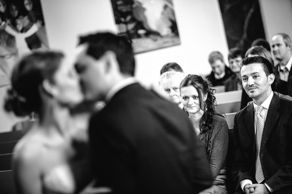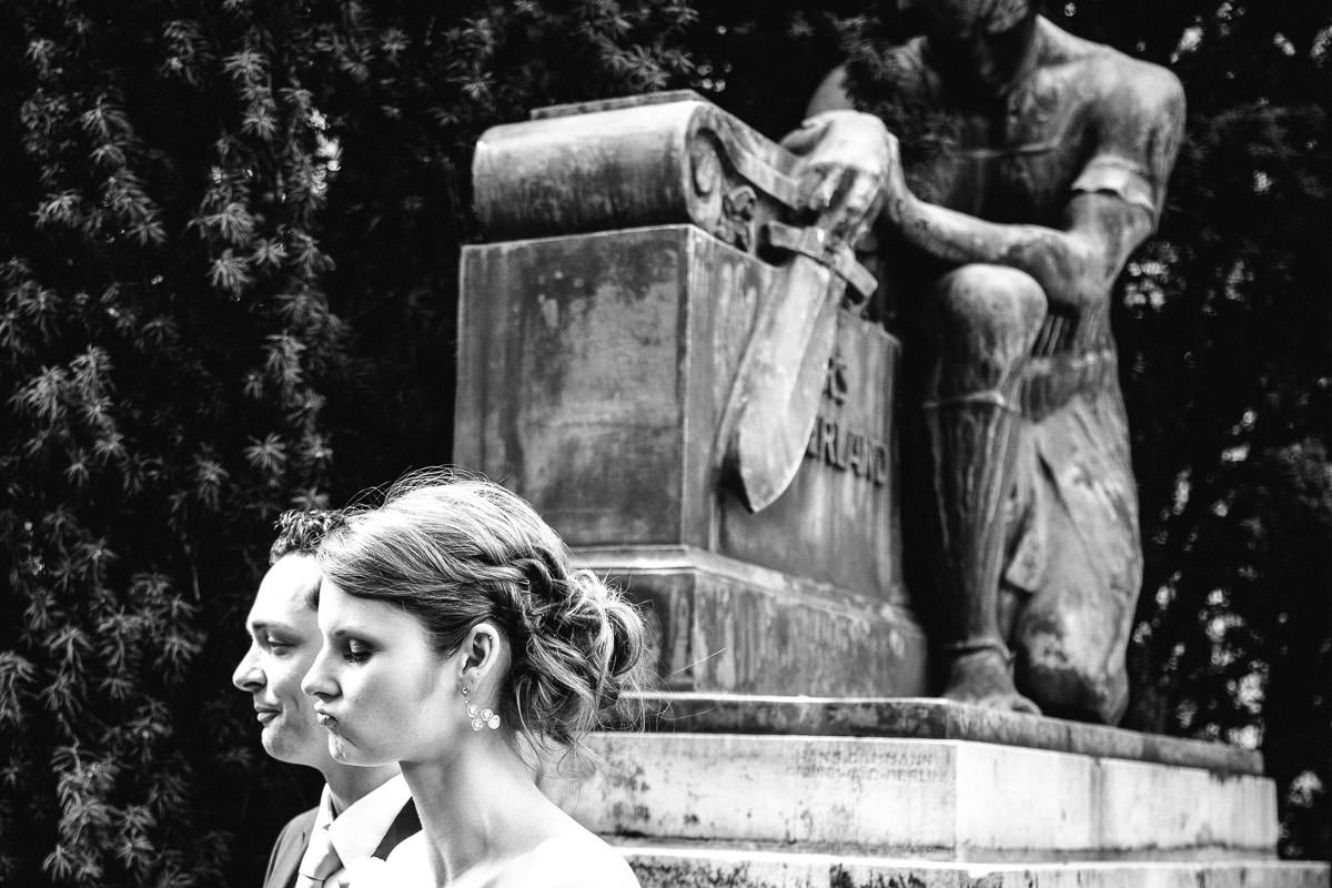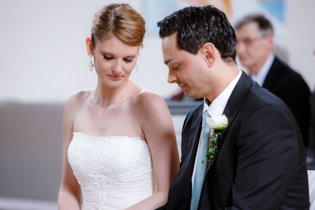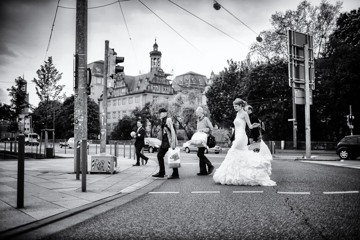 Die Trauung fand dann in der evangelischen Kirche in Riedstadt Erfelden statt. Dort wurde auch nach der Trauung kräftig angestossen. Danach hatten wir Zeit für die Hochzeitsportraits. Diese haben wir zum Teil noch in Erfelden aber auch in Darmstadt gemacht. Dafür haben wir uns unter anderem das Darmstadium ausgesucht. Denn der große Vorteil war, dass wir fürs Darmstadium nur über die Strasse gehen mussten. Denn das Staatsarchiv liegt schräg gegenüber des Darmstadiums. Die spätere Feier wurde dann im Staatsarchiv Darmstadt im sehr schönen Karolinensaal gefeiert.