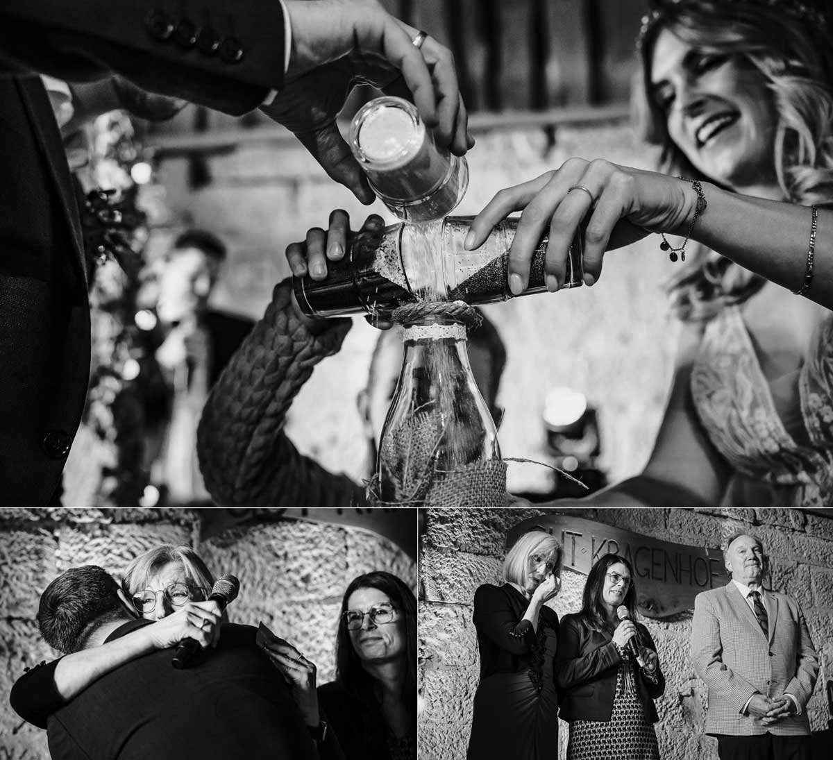 Die Eltern der Beiden überreichten während der Trauung ihre Wünsche an das Brautpaar und als Abschluss haben sie zu dritt aus Sand ein gemeinsames Kunstwerk gegossen.