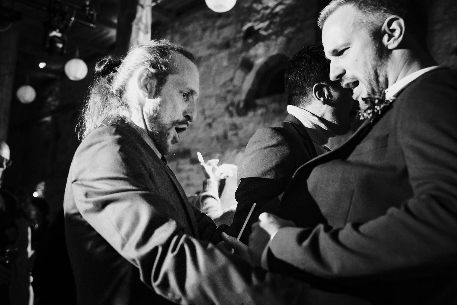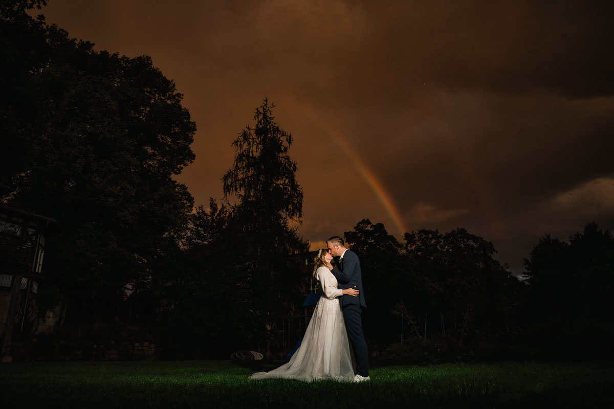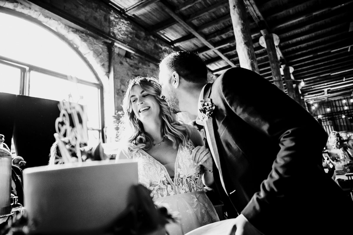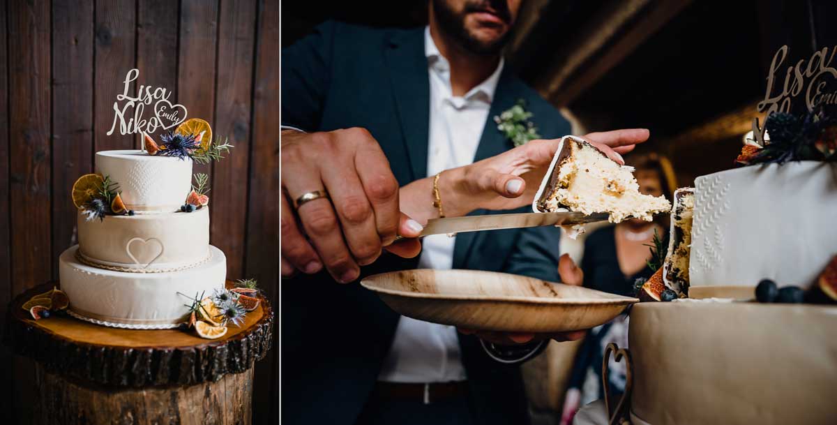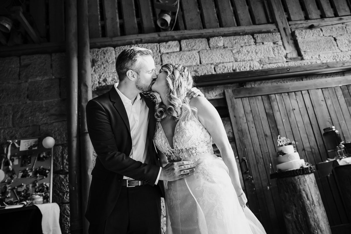 Nach der Trauung und dem Auszug des Brautpaares fanden die Gratulationen statt. Wetterbedingt ebenfalls in der Scheune. Anschließend wurde direkt die Hochzeitstorte angeschnitten. Kurz darauf haben wir uns für ein paar Hochzeitsfotos verabschiedet. Leider mussten wir das kurz unterbrechen, da nochmal ein kleiner Regenschauer durchgezogen ist. Der aber zum Glück nicht lange anhielt. Später konnten wir aber auch nochmal Zeit dafür nutzen.