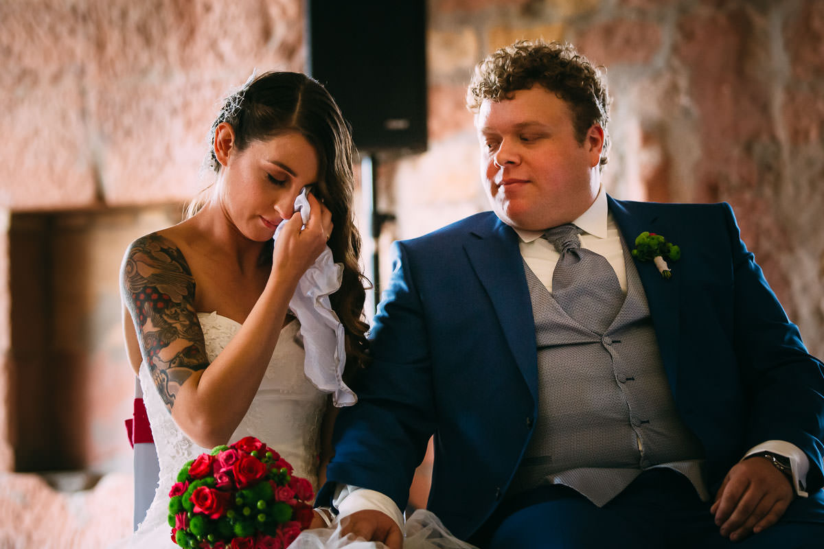 Die freie Trauung wurde komplett durch das Brautpaar und die Gästen gestaltet und war sehr emotionsreich. Die Freunde und Eltern haben sich enorm viel Mühe gegeben. Der Höhepunkt der Trauung waren die Trauversprechen, die haben meine Augen ganz schön feucht werden lassen. Ich kann dir sagen, da musst du dich schon überwinden nicht einfach mit offenem Mund zu lauschen, sondern auch zu fotografieren. Nach der Trauung und den Gratulationen hatten wir Zeit für die Hochzeitsfotos im Hambacher Schloss. Dafür stand uns teilweis ein ganz schön dramatischer Himmer zur Verfügung. Der Abend war genauso großartig wie der Rest vom Tag. Viele schöne Momente und eine Hochzeitsgesellschaft die enormen Spass hatte. Abends hat dann die Band LateLounge mit der Sängerin Silke Vorrath gut eingeheizt und für tolle Stimmung und schöne Fotos gesorgt :-).