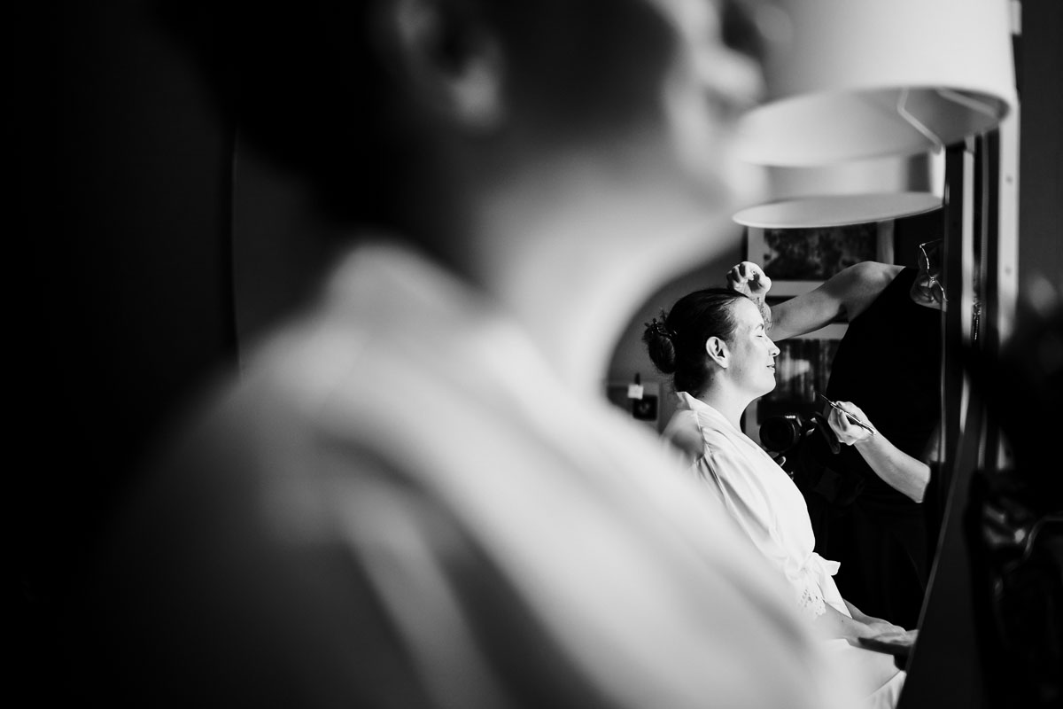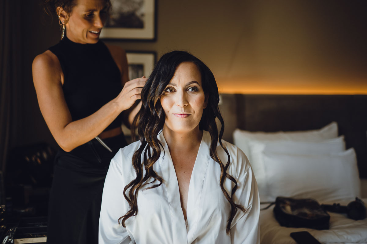 Das Brautstyling fand in einem der Zimmer statt. Hier durfte ich Braut und Trauzeugin fotografisch begleiten.