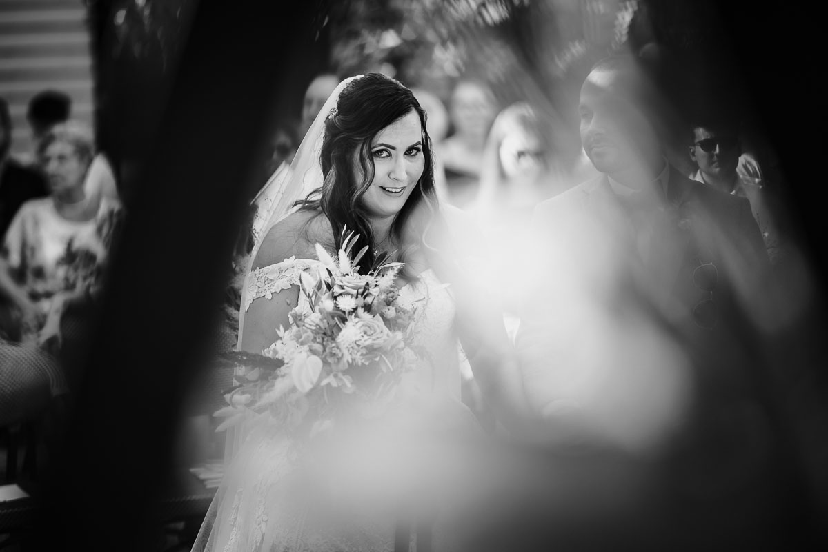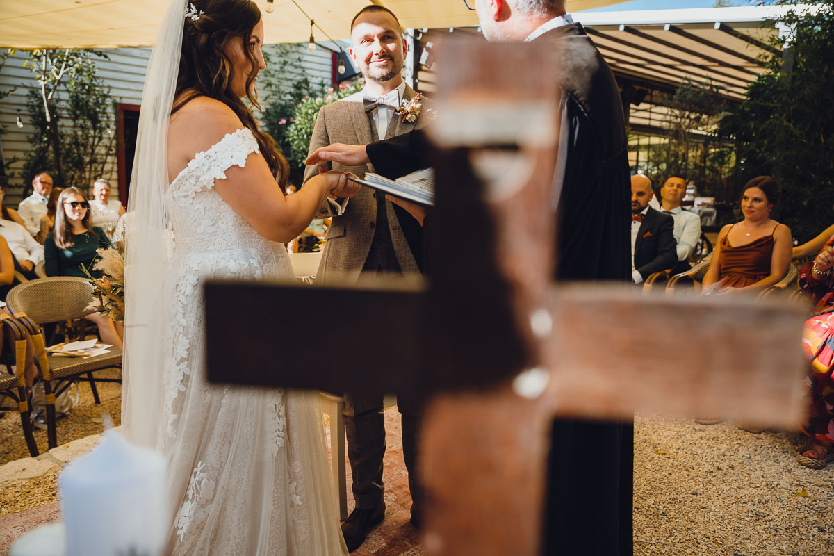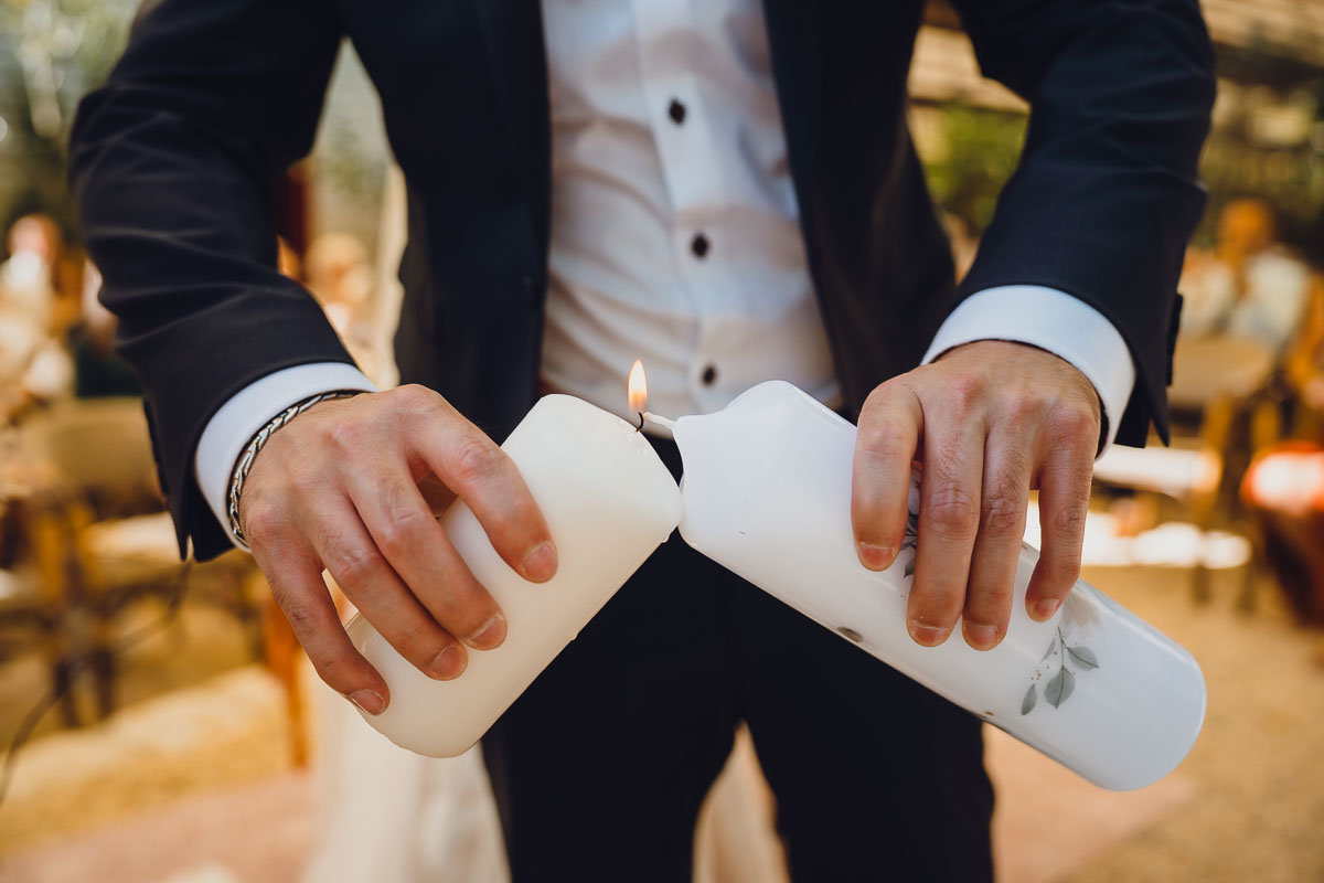Nach dem First Look und ersten Hochzeitsbildern im NH Collection ging es zum Heids Restaurant. Dort fand die freie Trauung im überdachten Garten statt. Der Bereich wurde wunderschön dekoriert. Die Trauung wurden von einem befreundeten Pfarrer geleitet. Anschließend fand der Sektempfang und die Gratulationen statt.