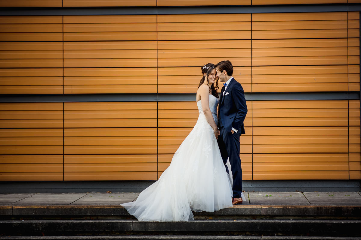 Die Hochzeitsportraits haben wir auf den Weg vom Hotel zum Messeplatz und auf dem Messeplatz selbst gemacht. Respekt an den Bräutigam. Der hat nämlich zuvor schon die Gegend inspiziert und sich selbst Gedanken gemacht, wo er denn seine Hochzeitsbilder machen würde. Dennoch hat er mir komplett freie Hand bei meinen Fotos gelassen.