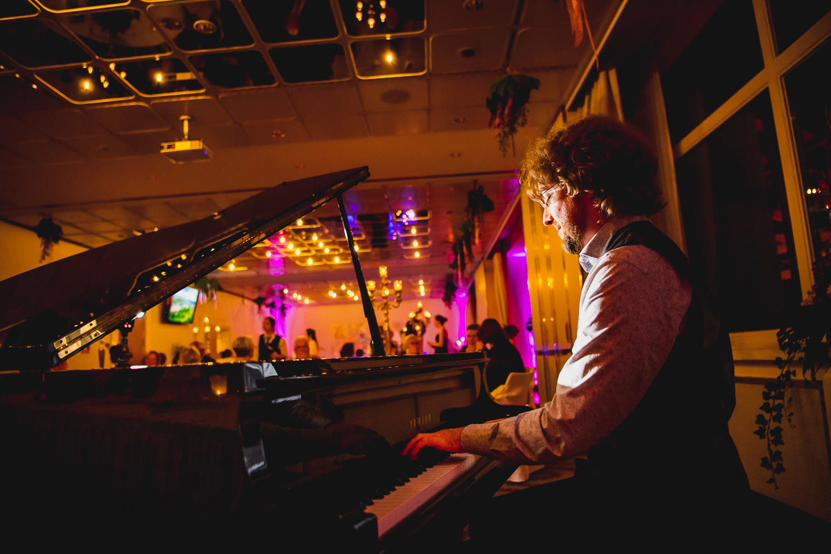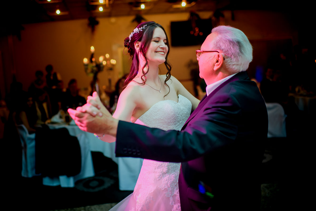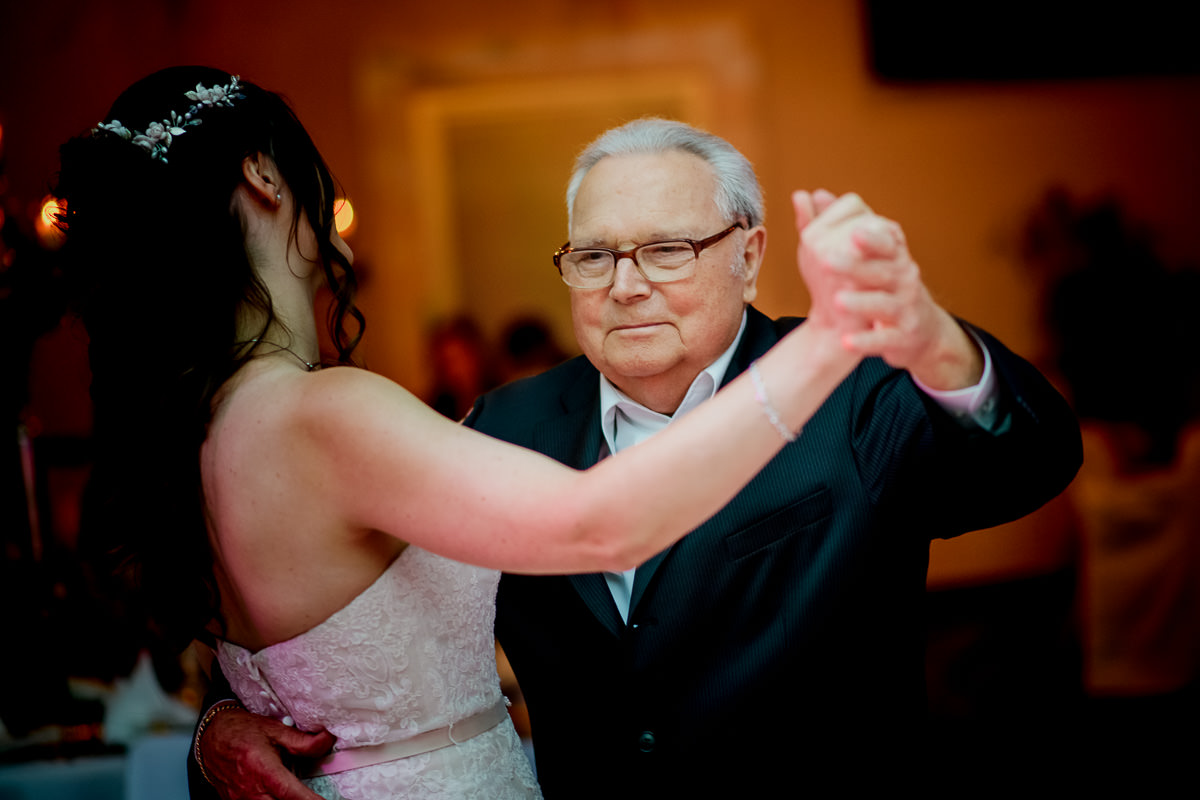 Im Anschluss fand der Sektempfang in einem weiteren Raum statt, bevor es dann abends in den Festsaal ging. Eines der Highlights war hier der Tanz der Braut mit ihrem Opa, der direkt nach der Eröffnungsrede stattfand. Am Abend wurde gemütlich gegessen, begleitet durch den hervorragenden Baarpianisten Claudio Lanz. Der Hochzeitskuchen wurde tags zuvor noch vom Bräutigam selbst gebacken. Das wollte er sich auf keinen Fall entgehen lassen. Aber dann ging es dann mit dem Eröffnungstanz so richtig los und es wurde bis spät abends noch kräftig gefeiert. Nach Mitternacht habe ich mich dann auch schweren Herzens von der Hochzeit verabschiedet.