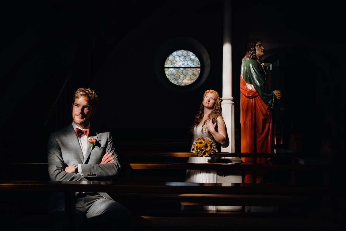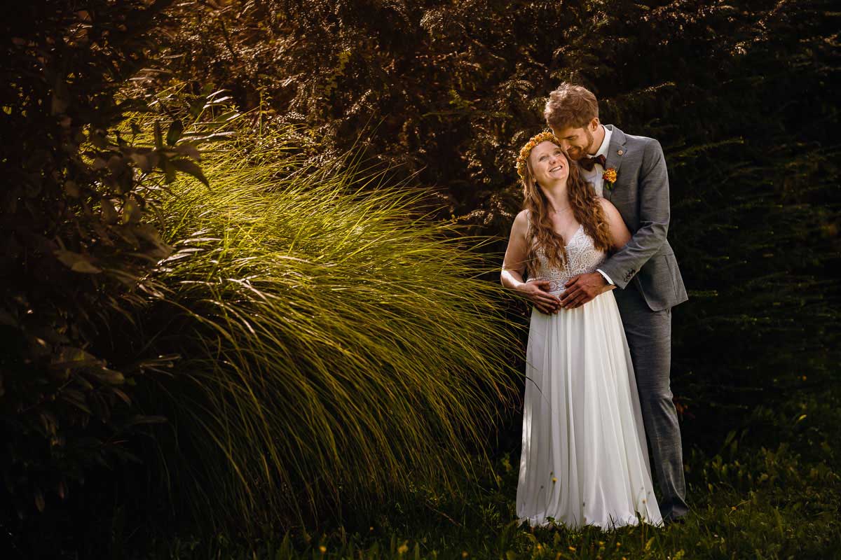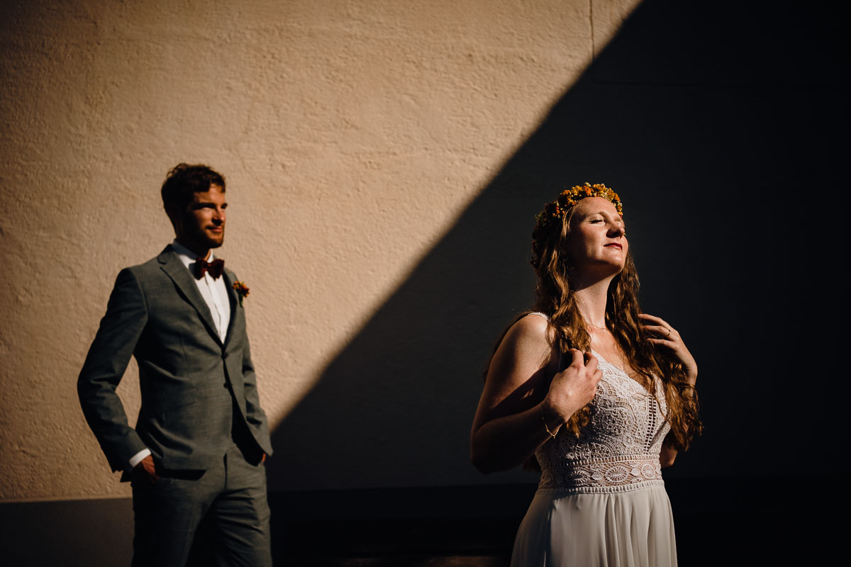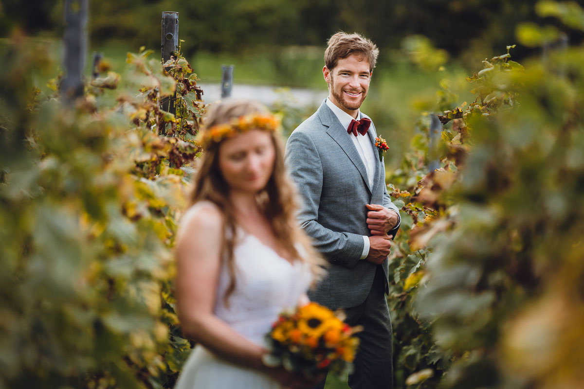 Wir begannen den Tag mit den Hochzeitsporträts in der idyllischen Umgebung der St. Johann Kirche in Gaienhofen-Horn. Dort sollte am Samstag die kirchliche Trauung stattfinden. Anschließend begaben wir uns zum Scheffelschlösschen, wo die Trauungszeremonie von großer Emotion begleitet wurde. Einschließlich eines herzergreifenden Gesangs einer Freundin – derselben Freundin, deren Hochzeit ich auf der Heuchelberger Warte fotografisch festgehalten hatte.