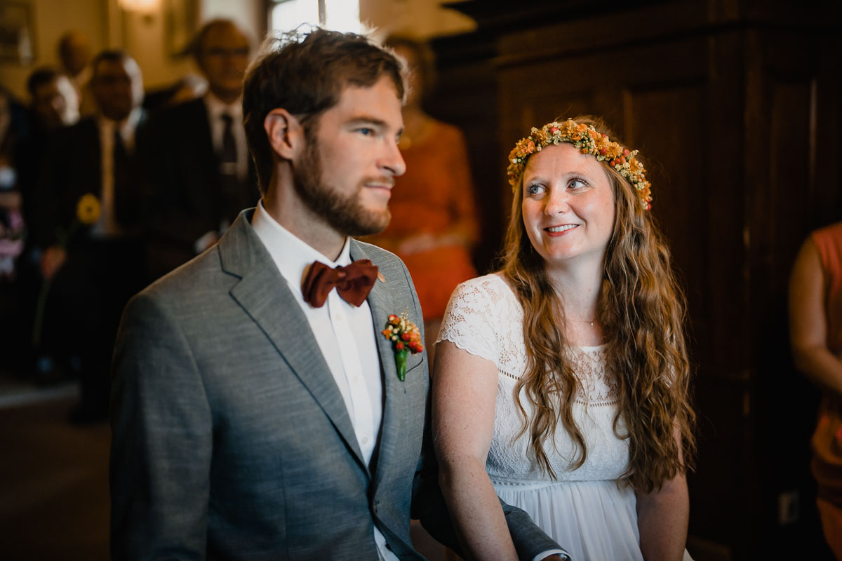Und genau das haben sich die Beiden auch gesagt. Ursprünglich hatten sie geplant, mich für ihre große Hochzeit am darauffolgenden Tag zu buchen. Da ich jedoch bereits ausgebucht war, entschieden sie sich, mich für ihre standesamtliche Hochzeit im zauberhaften Scheffelschlösschen zu engagieren. Bereits von einer wundervollen Hochzeit auf der Heuchelberger Warte kannten sie meine Arbeit. Ihnen war der standesamtliche Termin genauso wichtig. Da sie viele kostbare Momente ihrer Trauung, ihre Gäste und einige Hochzeitsporträts festhalten wollten.
