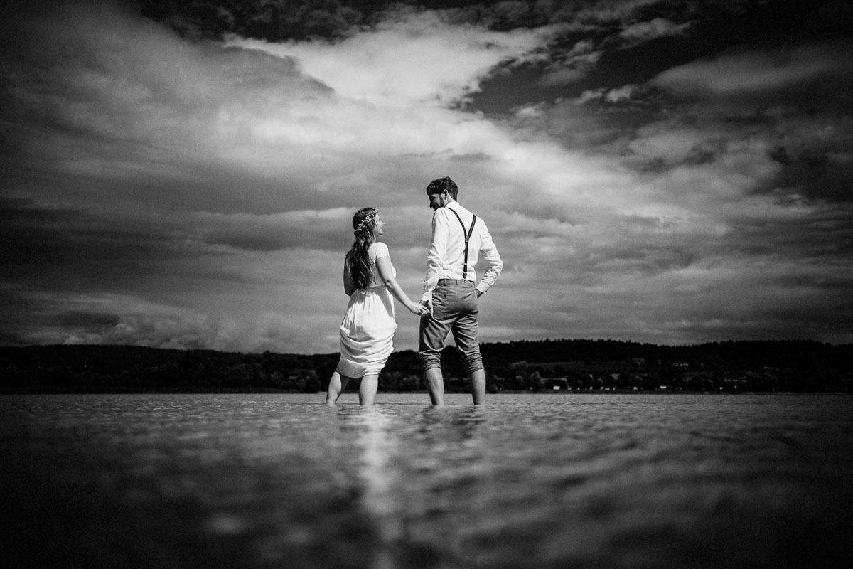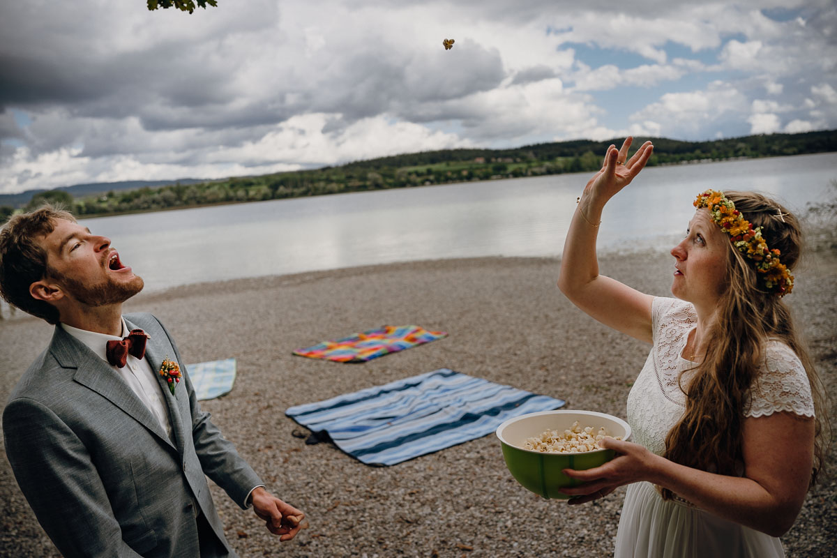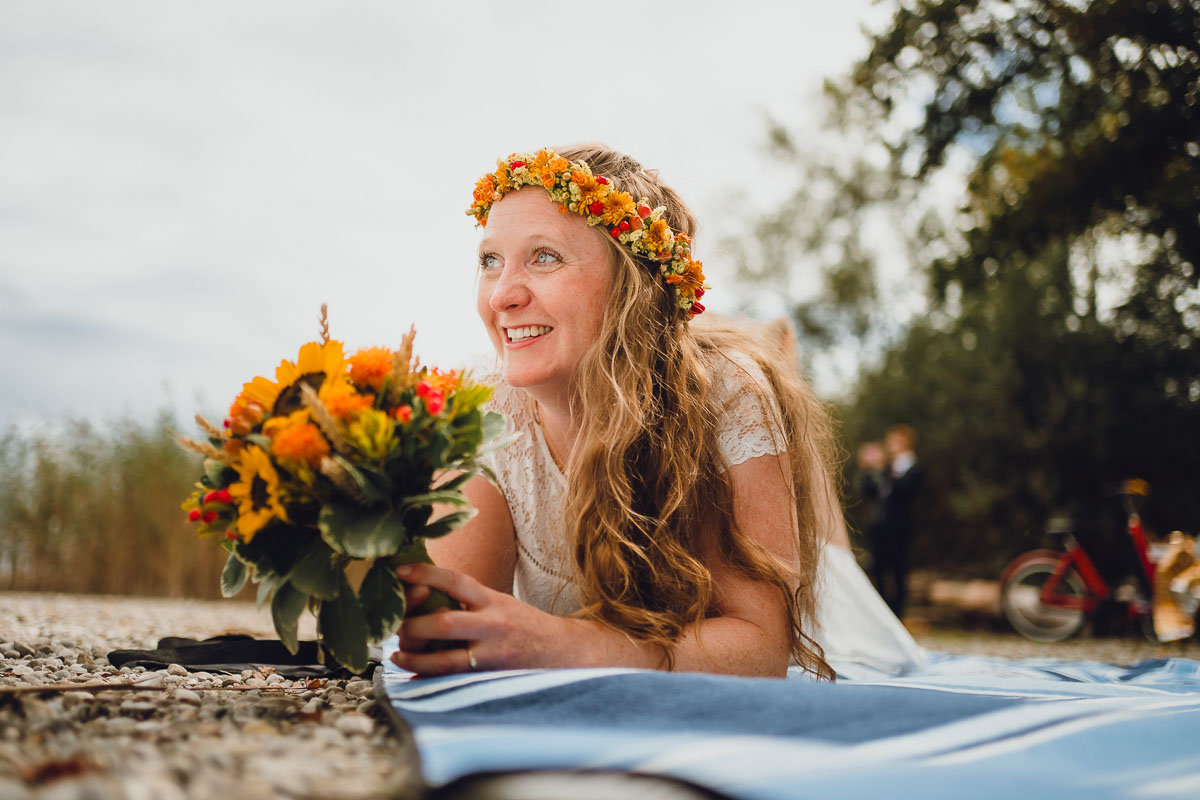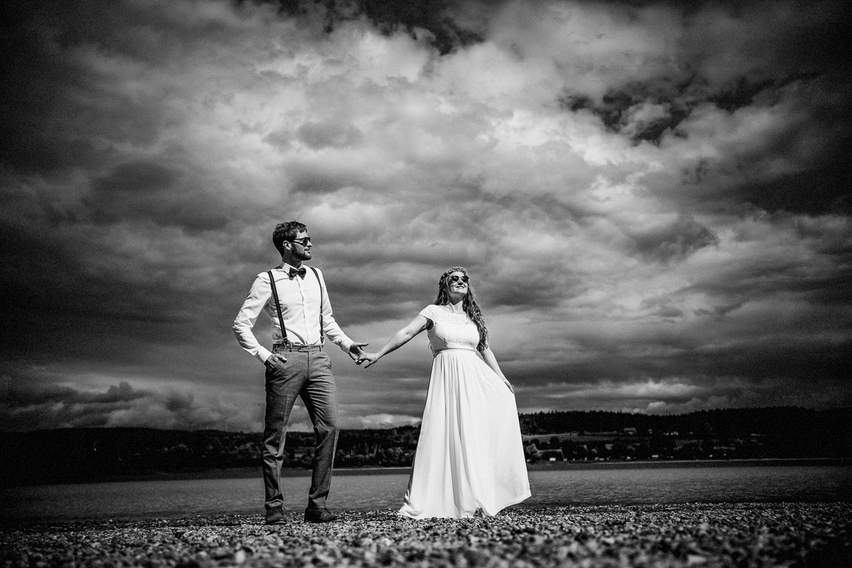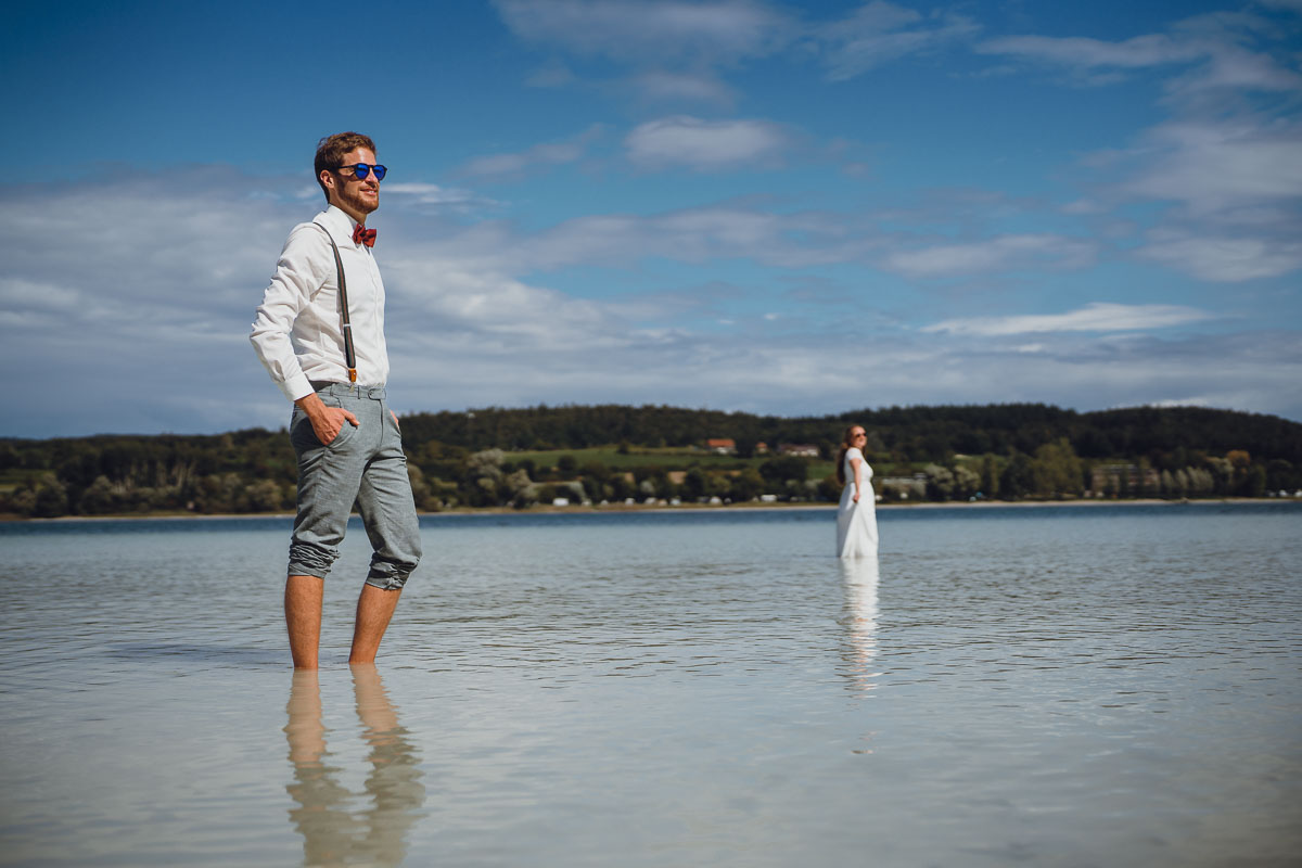 Nach den Glückwünschen im Freien führte uns der Weg zu einem selbstorganisierten Sektempfang auf der Mettnau, direkt am Seeufer in der Nähe des Mettnauturms. Dort genossen sie eine gemütliche Zusammenkunft, während wir die Gelegenheit nutzten, weitere Hochzeitsfotos zu machen.
