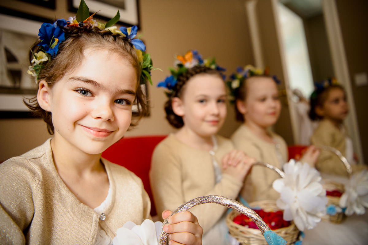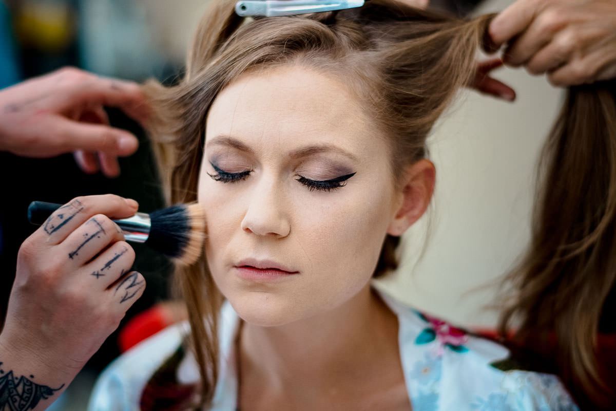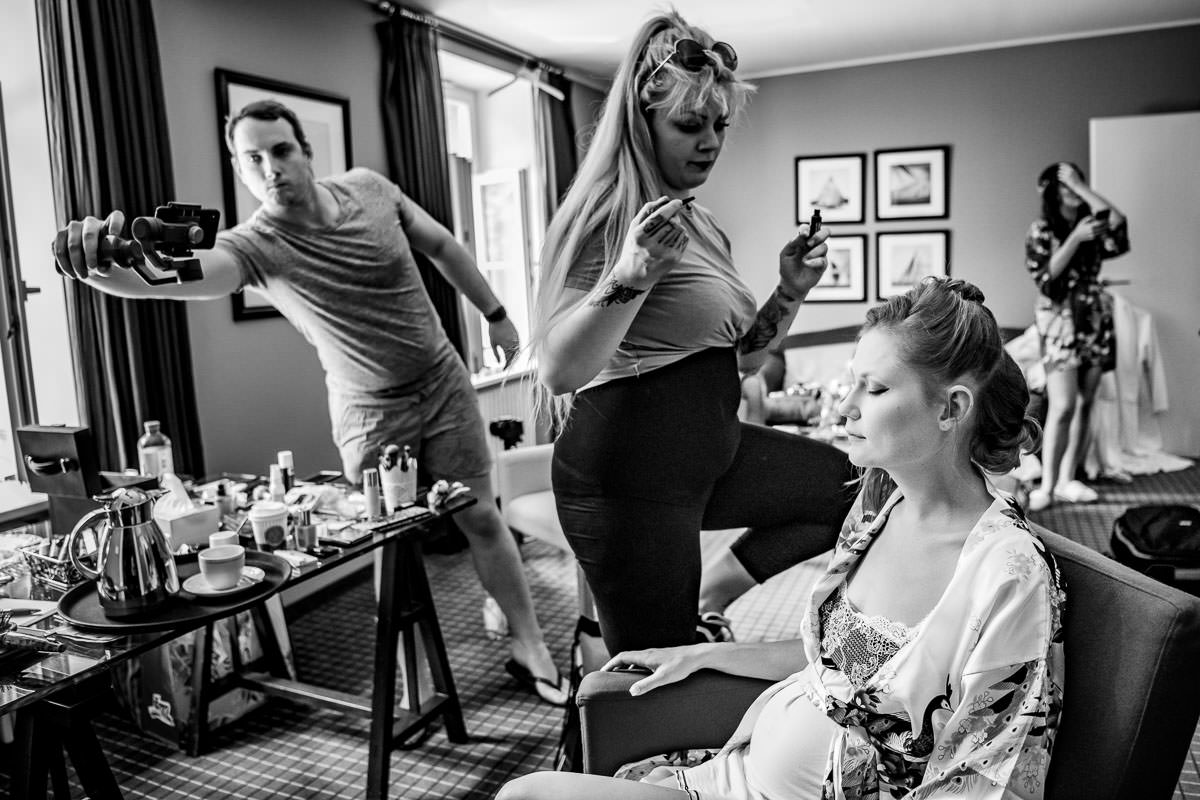 Das getting ready fand in einer der Suiten im Hotel statt. Und da war es ganz schön voll. Denn neben den zwei Stylistinnen und den drei Brautjungfern waren noch die Mama, der Sohn, ach ja und natürlich auch die Braut anwesend. Also alles schön kuschelig gemütlich.