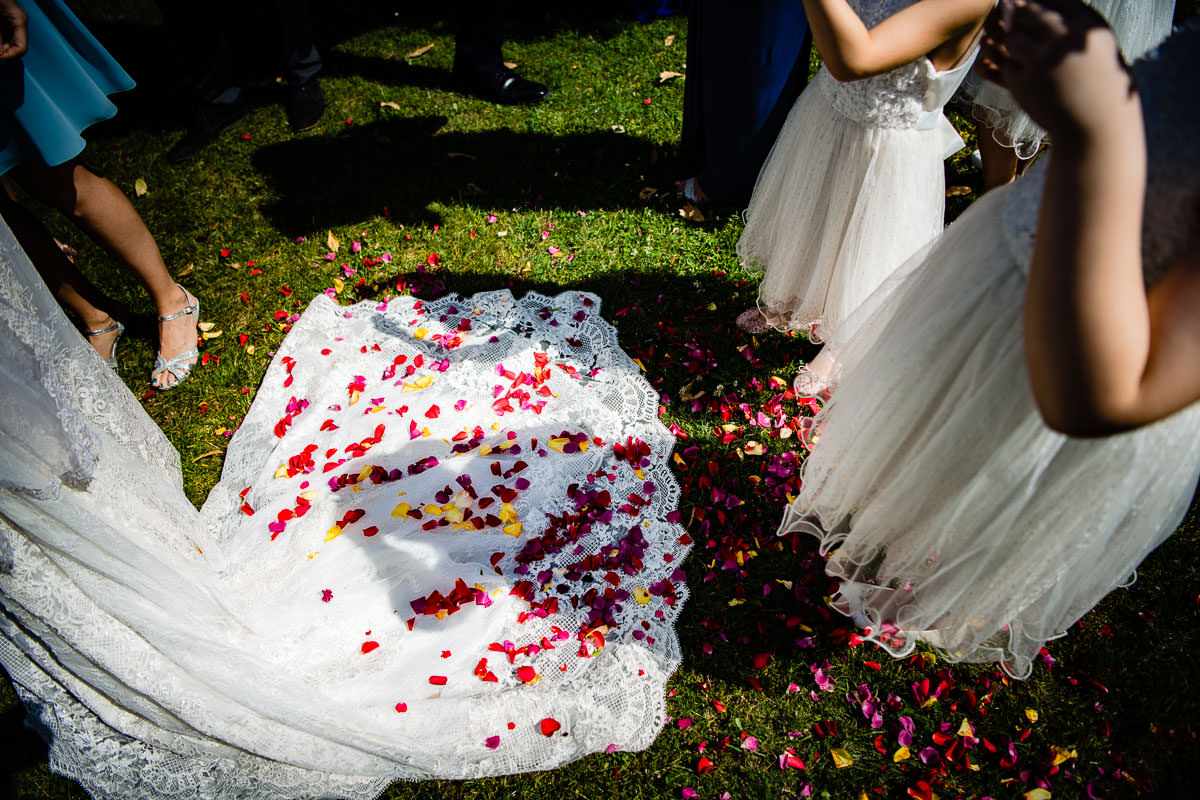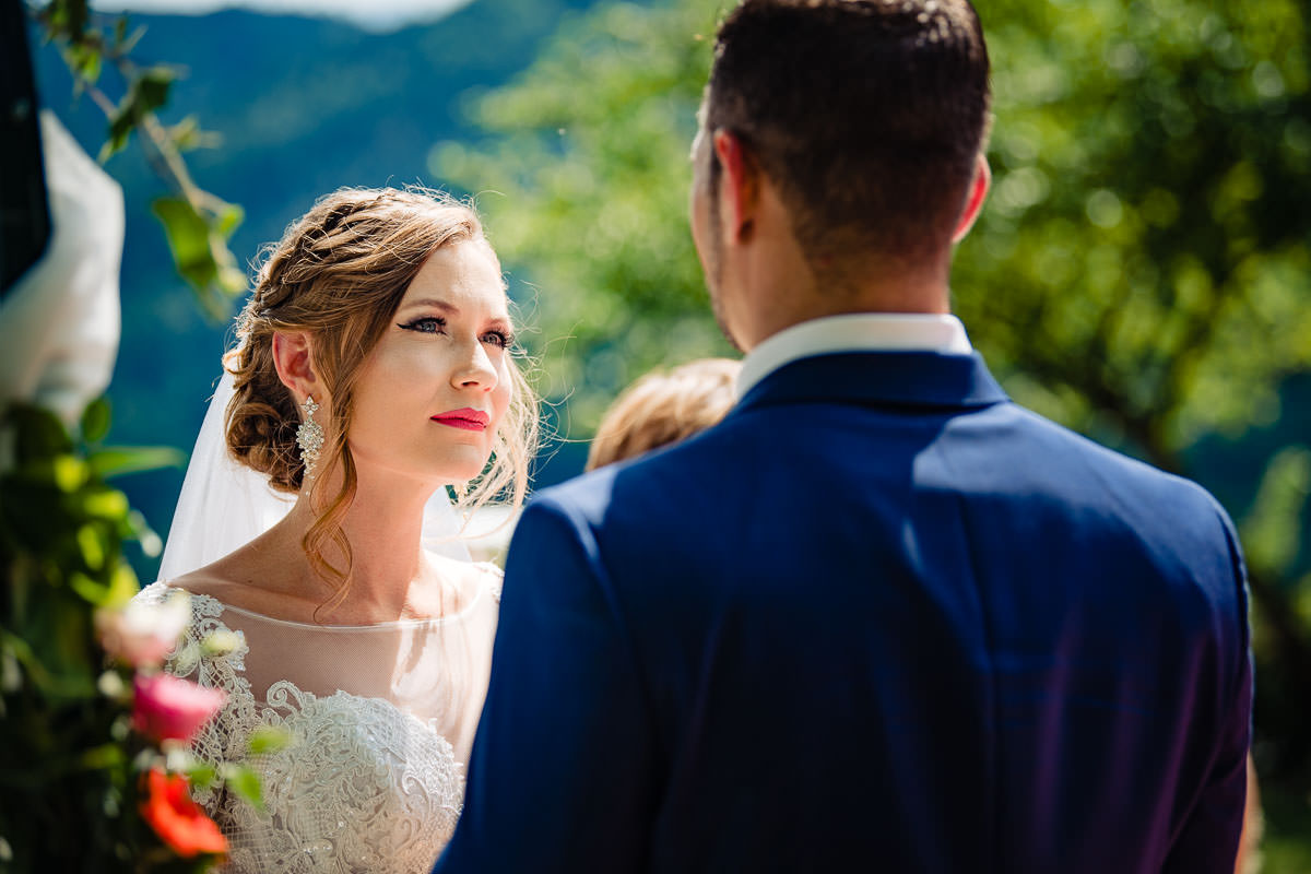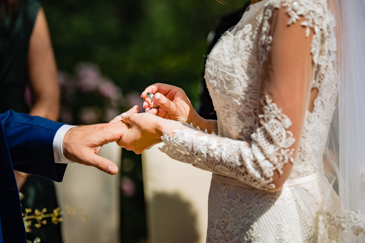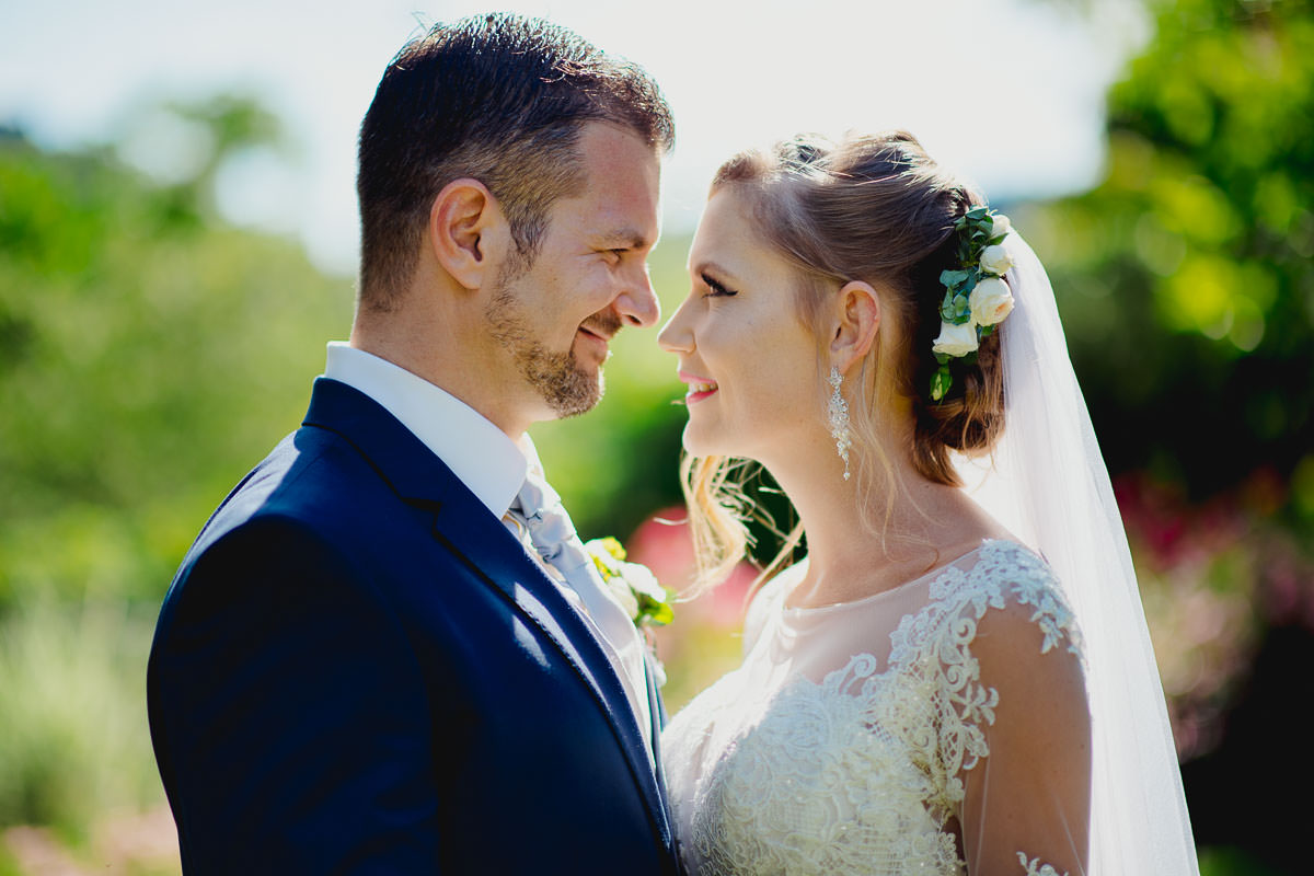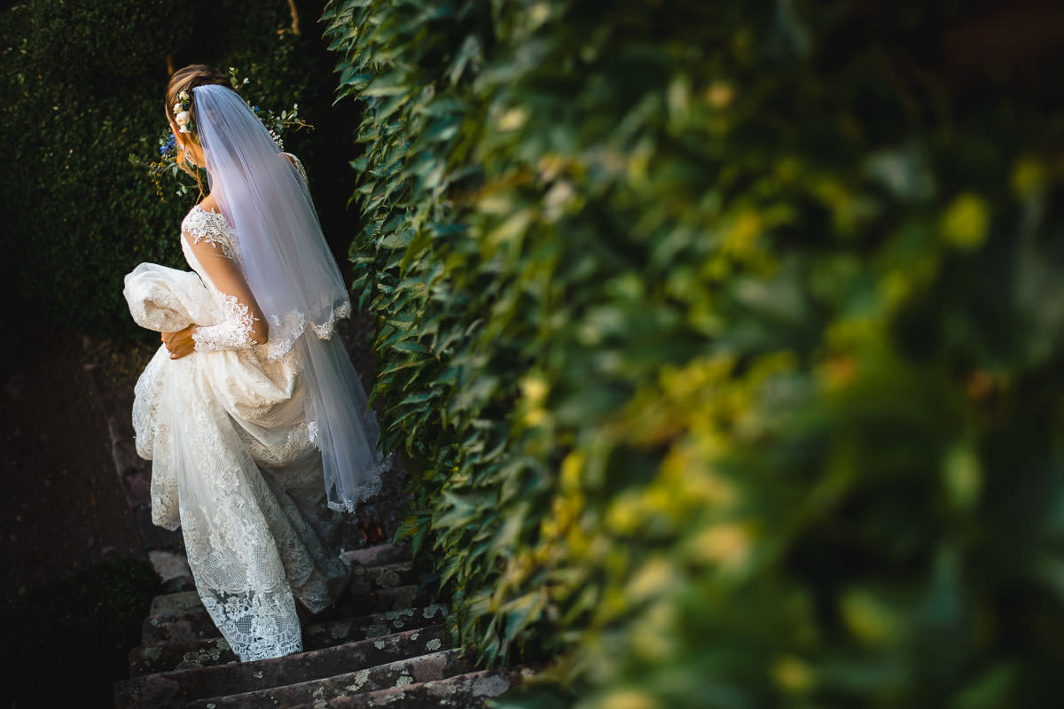 Bei herrlich sommerlichem Wetter fand die freie standesamtliche Trauung mitsamt Übersetzerin im Rosengarten des Schlosses statt. Wie bereits erwähnt ist das Ambiente im Rosengarten mit Blick ins Tal wunderschön. Im Anschluss fand der Sektempfang auf der Terrasse der Schloss Schänke statt. Nachdem der erste Durst gestillt war, bin ich mit den beiden für die Hochzeitsportraits losgezogen. Die hochzeitsbilder haben wir alle auf dem Gelände des Schlosses gemacht. Dabei habe ich auch eines meiner Lieblingsportraits von diesem Jahr gemacht.