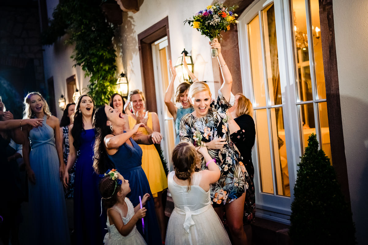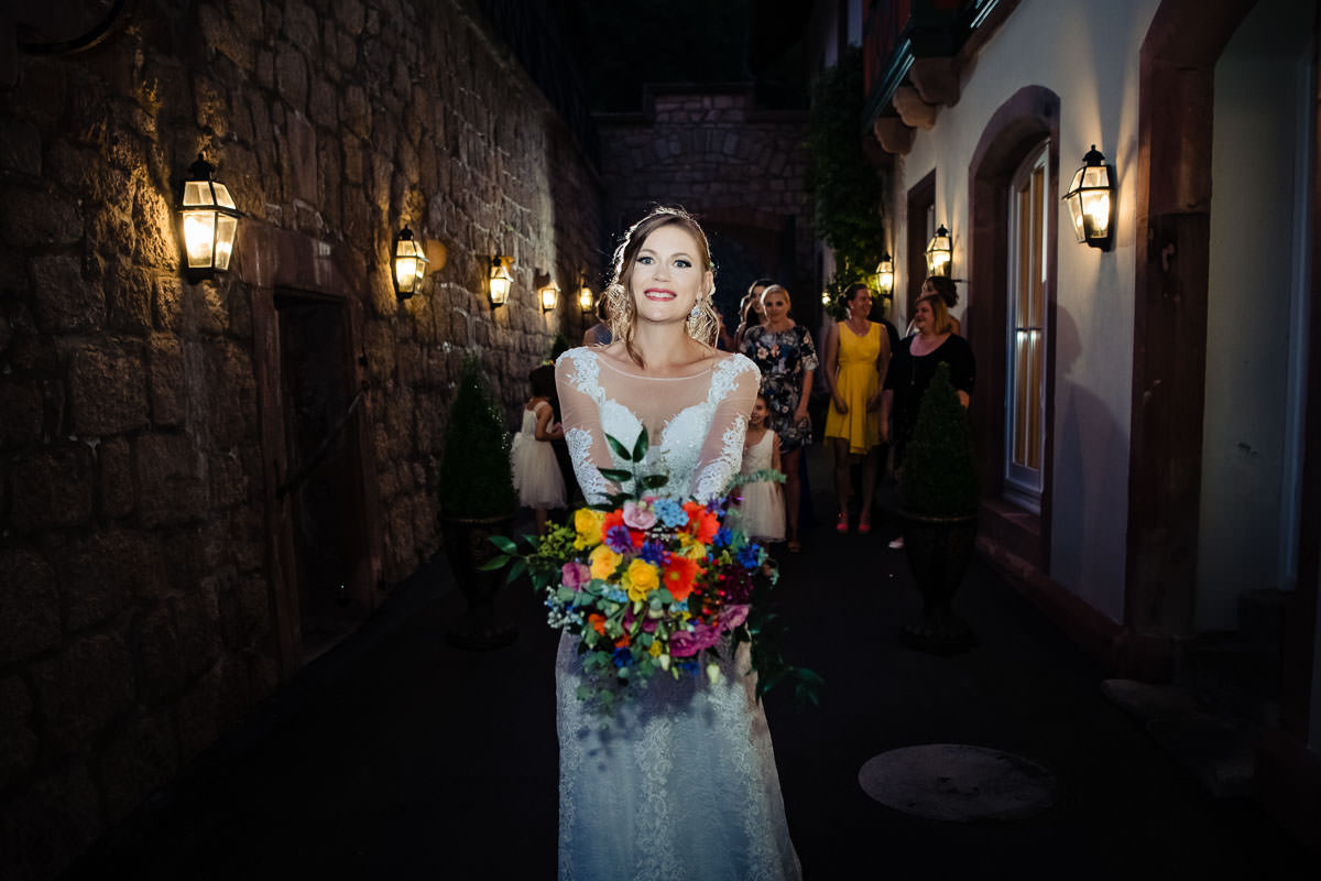 Was war das für eine hammermässige Hochzeit im Schloss Eberstein im nördlichen Schwarzwald. Das Hotel Schloss Eberstein befindet sich in Gernsbach, oder besser gesagt es befindet sich hoch über Gernsbach. Die Hochzeitslocation Schloss Eberstein liegt auf einer Anhöhe und bietet somit einen phantastischen Ausblick auf die Ebene und auf den Schwarzwald. Eine der schönsten Hochzeitslocations in Baden Württemberg. Im Schloss Eberstein kann nicht nur geheiratet werden. Darüberhinaus bietet es seinen Gästen einen hervorragenden Hotel und Restaurantbetrieb. Und das ist natürlich auch für Brautpaare interessant, da Hochzeitsgäste in nächster Nähe übernachten können. Gerade auch die Nähe zu Baden Baden oder Karlsruhe ist für viele Urlauber und Tagesbesucher von Vorteil.