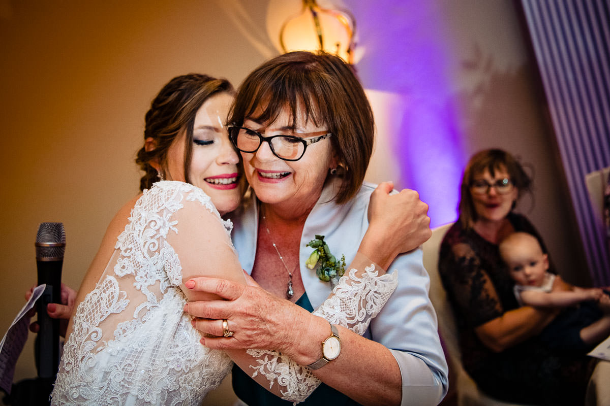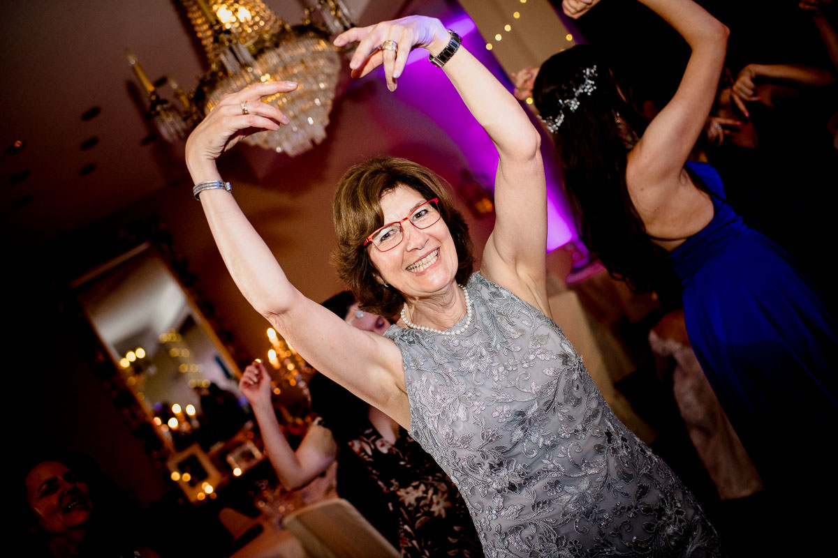 Die abendliche Feier fand im Spiegelsaal statt. Nach dem Einzug der Trauzeugen und des Brautpaares begann der Abend mit der Rede des Brautvaters. Im Anschluss wurde des Buffet eröffnet. Über den Abend hinweg wurden noch einige Reden gehalten. Die Trauzeugen und die Mutter der Braut sorgten mit ihren Reden und Präsentationen für einen abwechslungsreichen Abend. Anschließend wurde durch das Brautpaar zuerst zu zweit und dann zu dritt, die Tanzfläche eröffnet. Dabei haben sich das Brautpaar sehr ausgelassen feiern lassen.