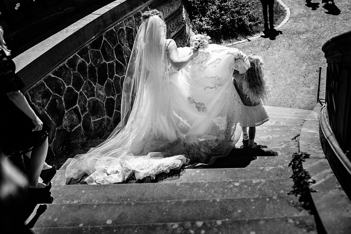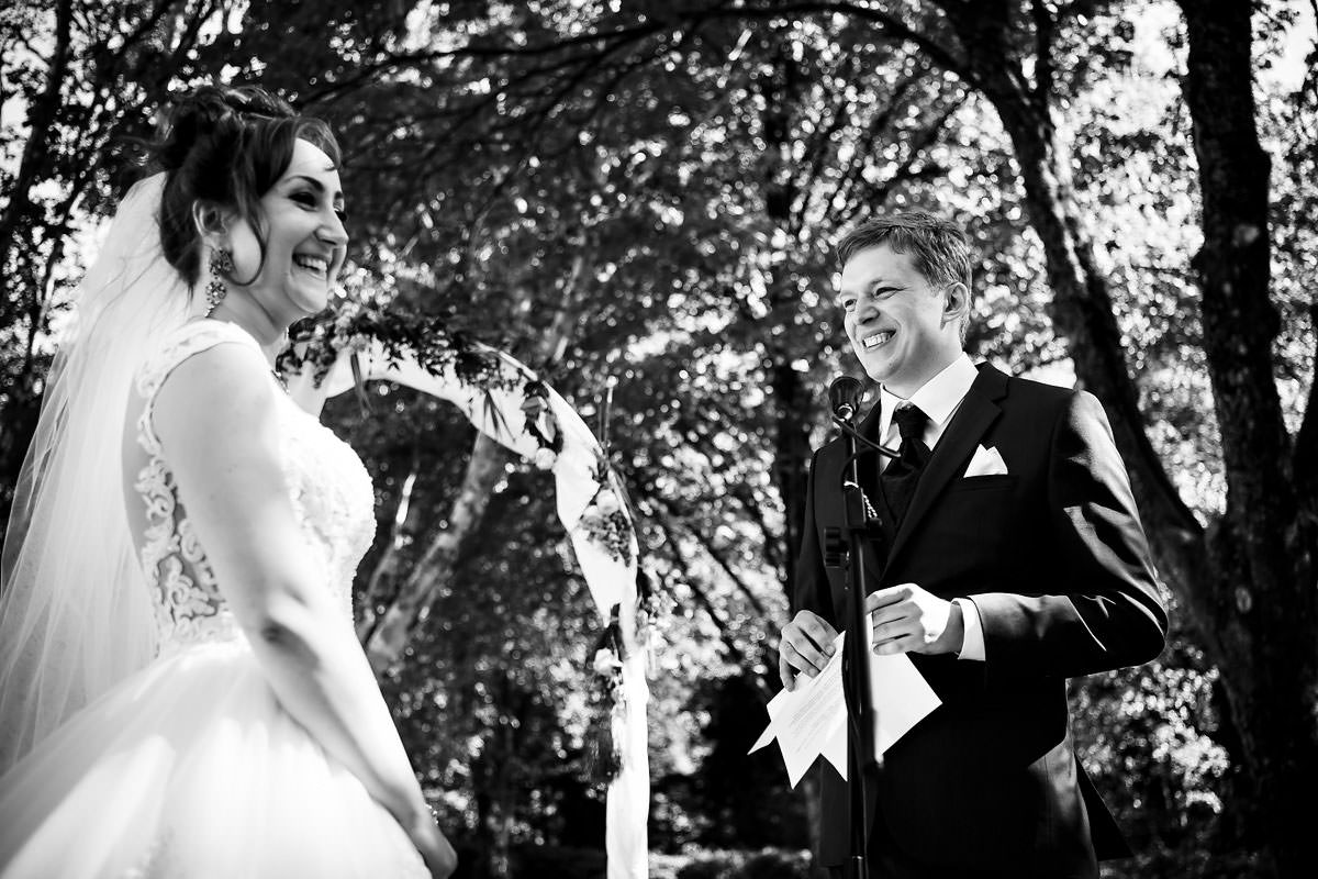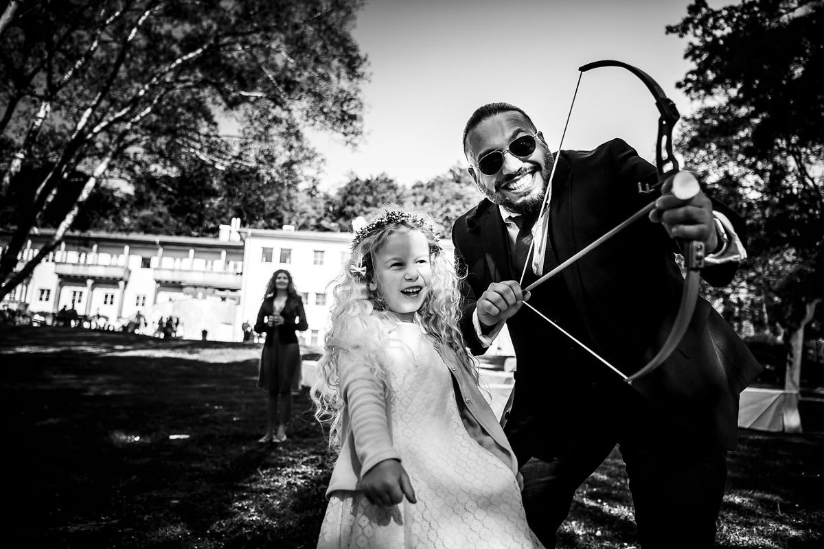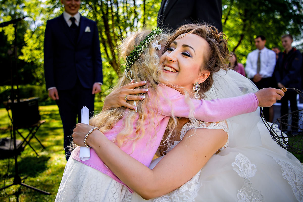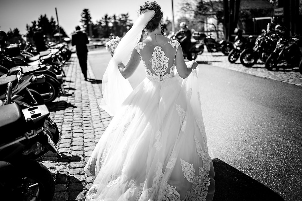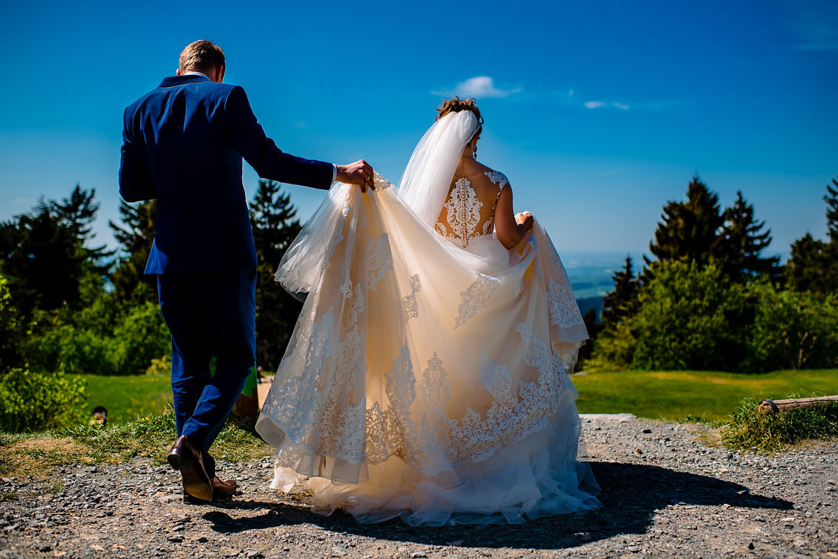 Nach dem Sektempfang im Garten des Schlosses Philippsruhe ging es mit der Stretchlimo zuerst mal auf den Feldberg. Denn dort wollten die beiden unbedingt noch ein paar Hochzeitsfotos machen. Und dort war es ganz schön windig. Respekt an die Braut, die zu allem bereit war und die ein oder andere kleine Kletterpartie mitgemacht hat. Danach ging es zu den restlichen Gästen, die im Naturparkhotel Weilquelle bei Kaffee und Kuchen die Natur genossen haben. Dort fand im Garten die freie Trauung statt, die von Freunden gemacht wurde. Der stolze Papa durfte die Braut hier zur ihrem Mann bringen.