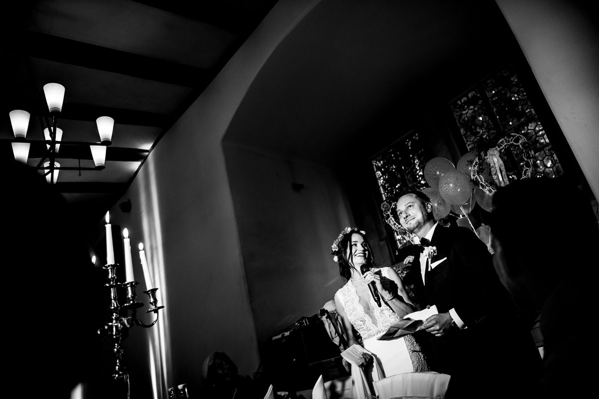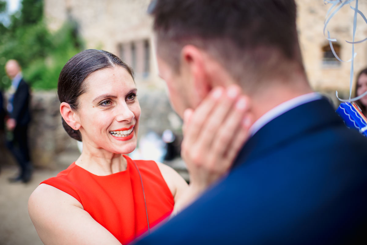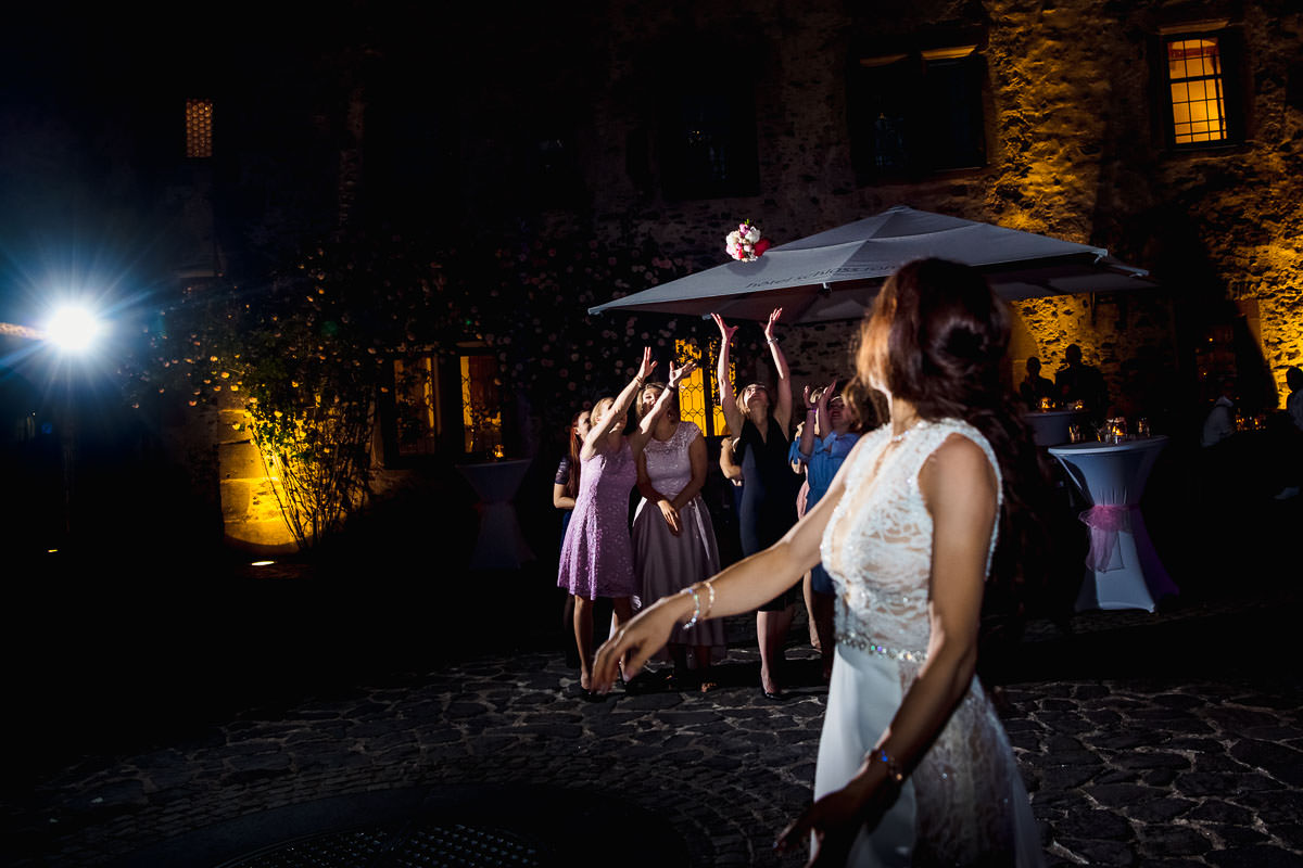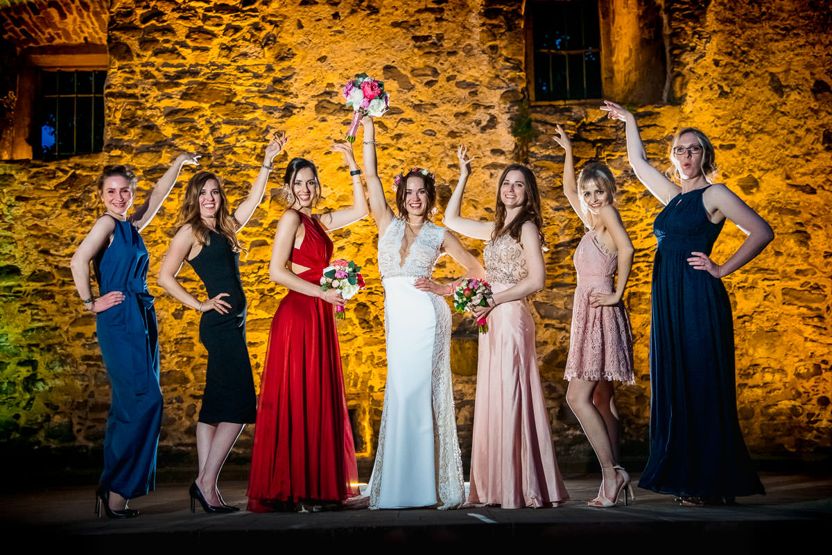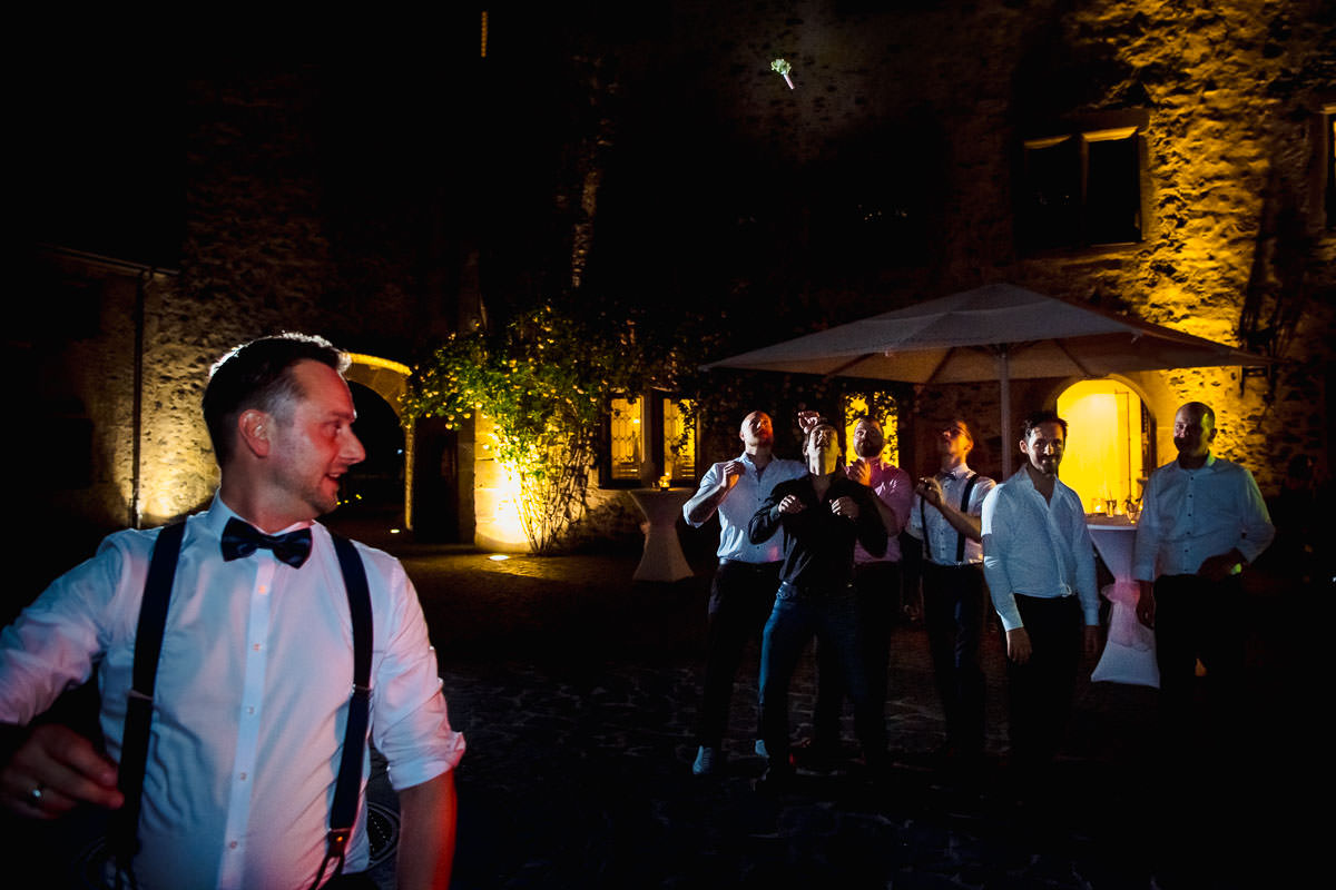 Im Anschluss fand der Sektempfang im Garten des Schlosses statt, wo die Beiden von ihren Gästen erwartet wurden. Hier begann erstmal der ruhige Teil, und die Gäste konnten das schöne Wetter und die Location geniessen. Für die Portraits ist uns leider etwas die Zeit davon gerannt. So dass wir leider nur eine halbe Stunde Zeit dafür hatten. So musste ich also etwas Gas geben. Das Abendprogramm mit Reden und kleinen Spielen fand im Rittersaal des Schlosses statt. Der Eröffnungstanz dann draussen im Innenhof und die Party in der Havanna Bar. Dort wurde dann bis spät abends ausgiebig gefeiert und getanzt.