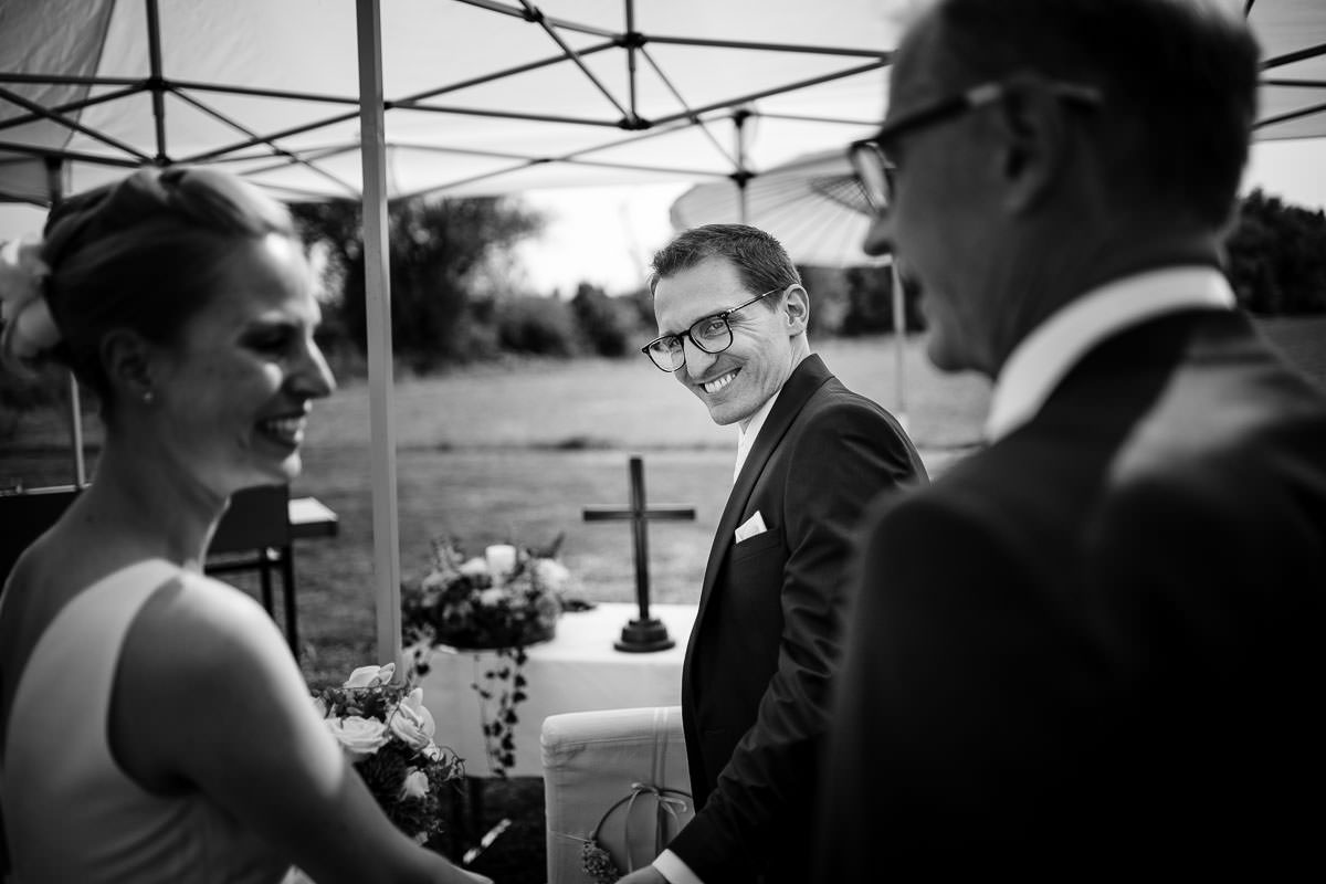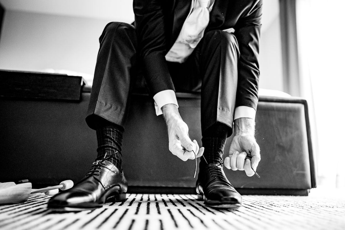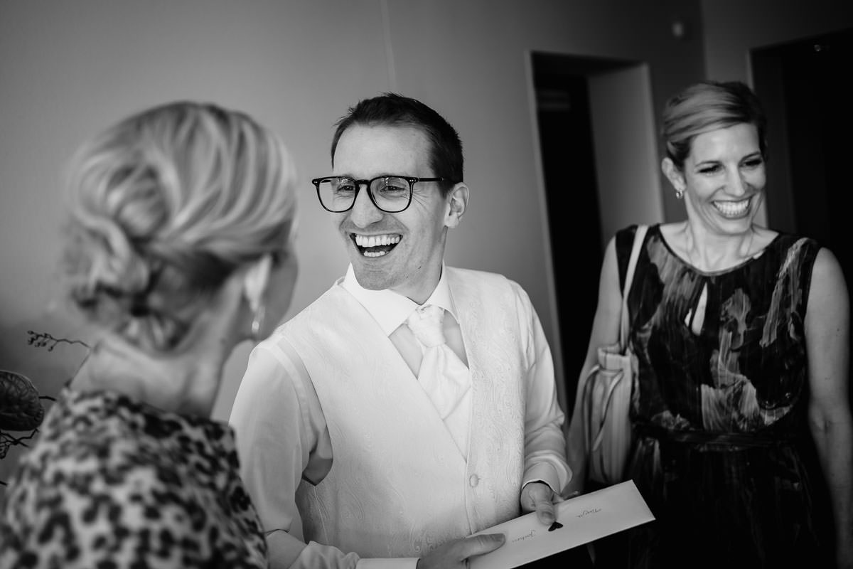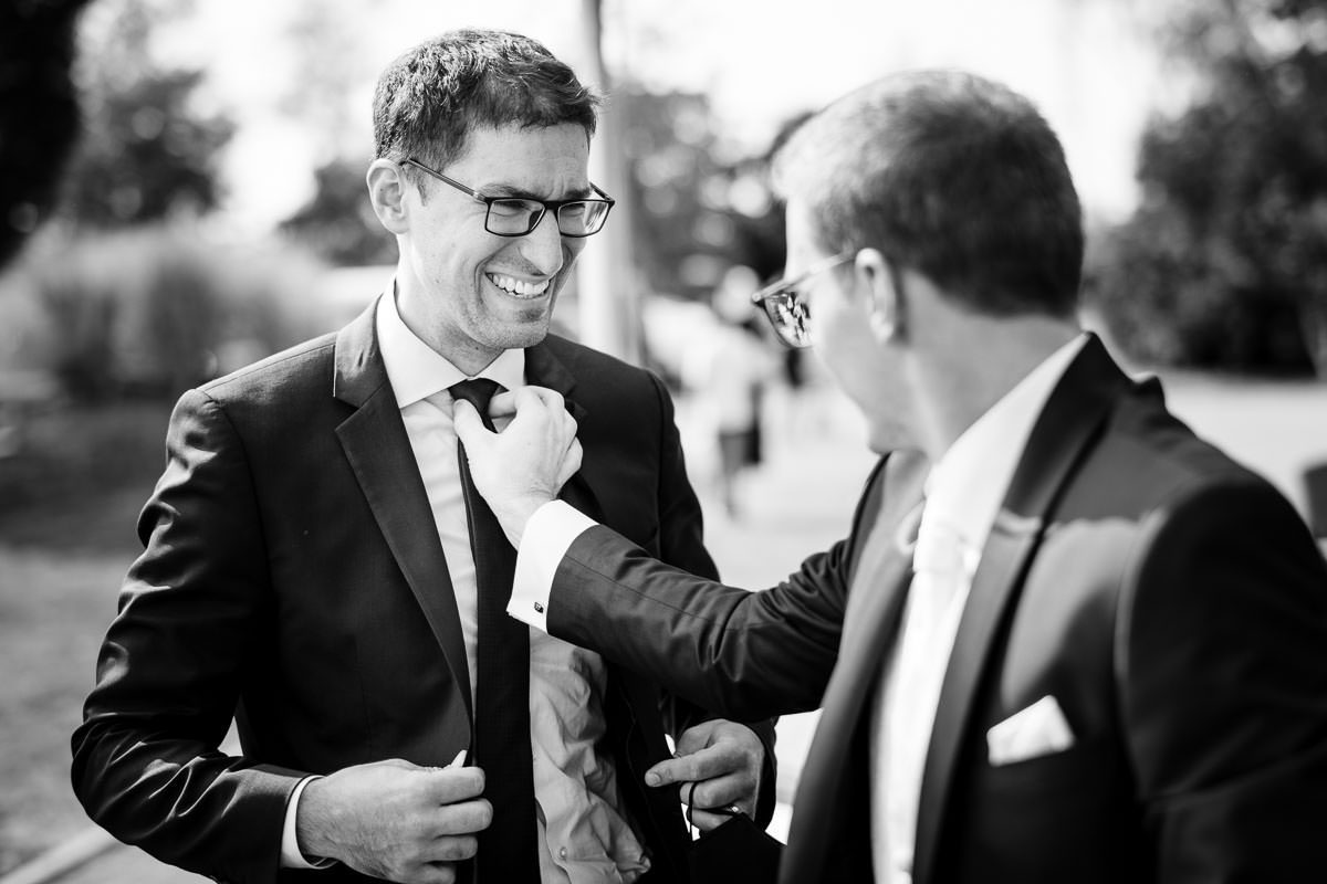 Begonnen hat die Hochzeitsreportage im Seehotel Ketsch mit den Vorbereitungen. Hier erwartete mich gut gelaunt der Bräutigam. Ich kannte die Beiden bereits von einer Hochzeit von vor einigen Jahren. Und bereits damals stand fest, dass ich ihr Hochzeitsfotograf werden sollte.