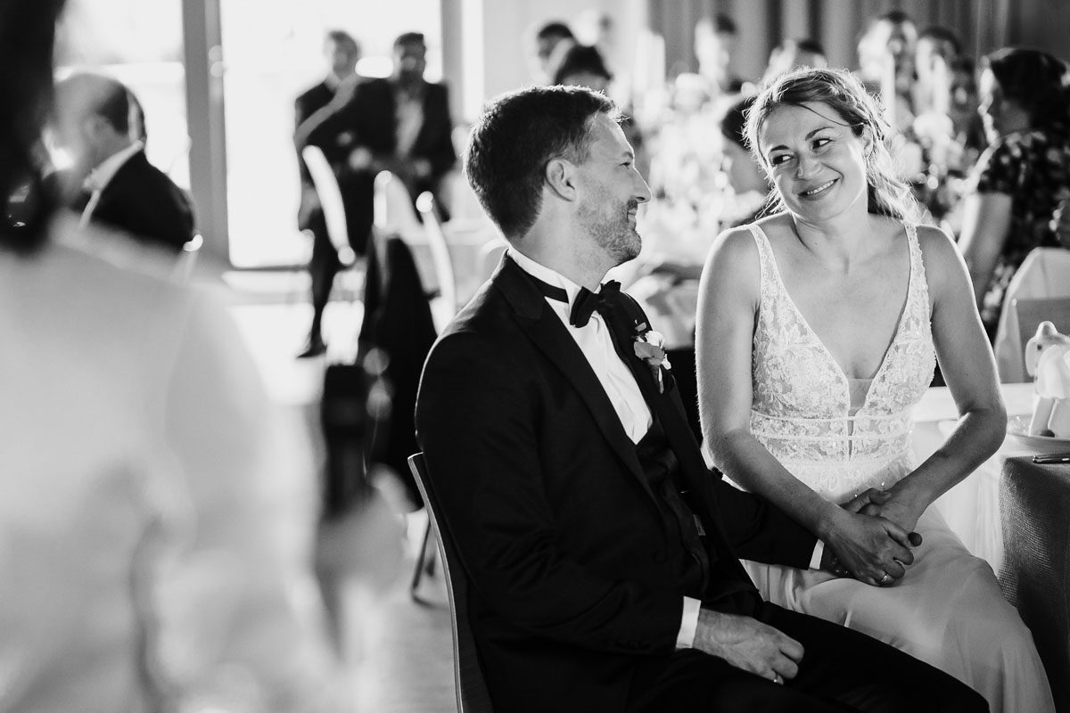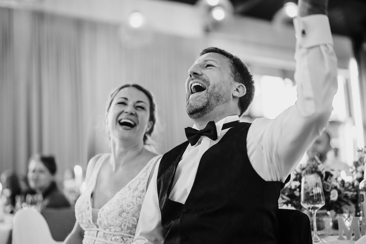 Nach den feierlichen Momenten in Nordheim führte der Weg endlich nach Lauffen zum Steng Landgut am Rotenberg. Dort empfingen strahlender Sonnenschein und eine einladende Terrasse die Gäste, die sich hier erstmals zu ausgiebigen Glückwünschen versammelten. Anschließend folgte Kaffee und Kuchen, während wir die Gelegenheit nutzten, für Familien- und Gruppenaufnahmen. Dann war es Zeit, den Veranstaltungssaal zu betreten, wo draußen bereits das köstliche Grillbuffet aufgebaut wurde. Die Gäste waren begeistert von den kulinarischen Genüssen. Zwischendurch fanden wir auch Momente für weitere wundervolle Hochzeitsaufnahmen des Brautpaares. Der Abend wurde von bewegenden Reden geprägt. Und dann begann die grandiose Party, bei der ausgelassen getanzt und gefeiert wurde.