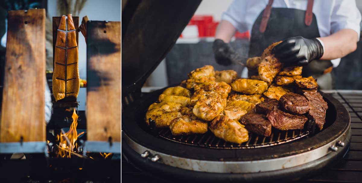 Der Empfang mit Sekt und anderen Erfrischungen findet auf dem Vorplatz der Eventhalle statt, der auch perfekt für ein Grillbuffet oder andere kulinarische Highlights geeignet ist. Bei der Wahl des Caterings haben Sie die freie Auswahl, während die Getränke vom Landgut bereitgestellt werden.