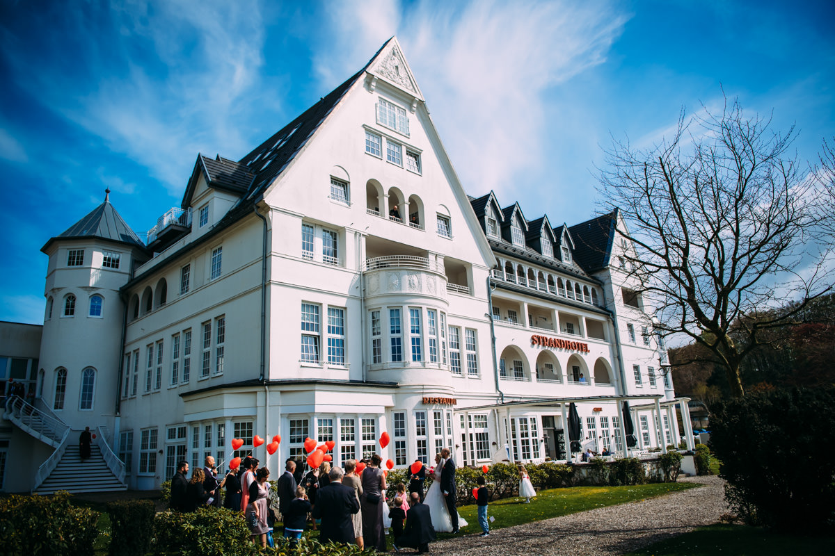 Heute berichte ich von einer wahnsinnigen schönen Hochzeit im Strandhotel Glücksburg. Ja, was habe ich mich gefreut. Dass mal so jemand der mehr im Süden Deutschlands beheimatet ist, für eine Hochzeit an den Strand durfte. Genauer gesagt an die Ostsee und dort ging es für mich nach Glücksburg, das liegt in der Nähe von Flensburg, nahe zur Grenze nach Dänemark. Also viel weiter kann ich in Deutschland nicht reisen. In Glücksburg wurde natürlich im Schloss Glücksburg geheiratet und im wunderschönen Strandhotel Glücksburg gefeiert.
