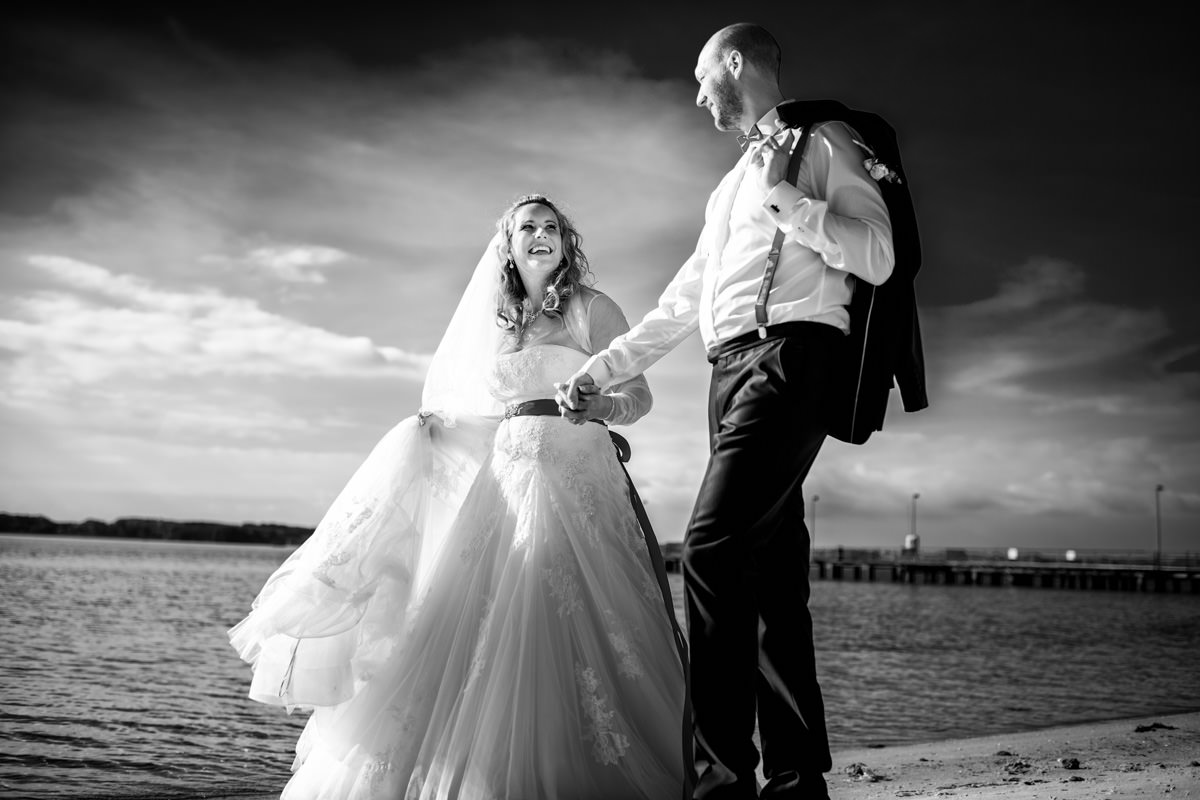 Aber dann sah es kurz vor der Hochzeit gar nicht so rosig aus. Wetteraussichten miserabel, es hat als ich tags davor in Hamburg angekommen bin, in Strömen geregnet. Ja es hat sogar übelst geschüttet. Dann kam noch dazu, dass sich die Braut ein paar Tage zuvor den Knöchel gebrochen hat. Als ich mir dann noch die Örtlichkeiten am Strandhotel Glücksburg angeschaut habe, musste ich feststellen, dass dieser wunderschöne Steg, der ins Meer reinführt, und so ziemlich fototechnisch eine der schönsten Stellen beim Strandhotel ist, wegen Wartungsarbeiten gesperrt war, und nicht nur gesperrt, nein drumherum war noch grosszügig Baustelle.