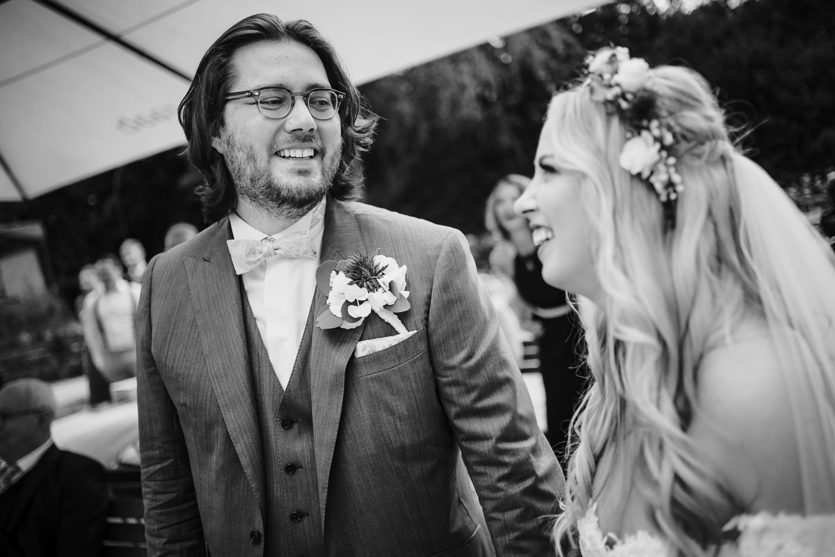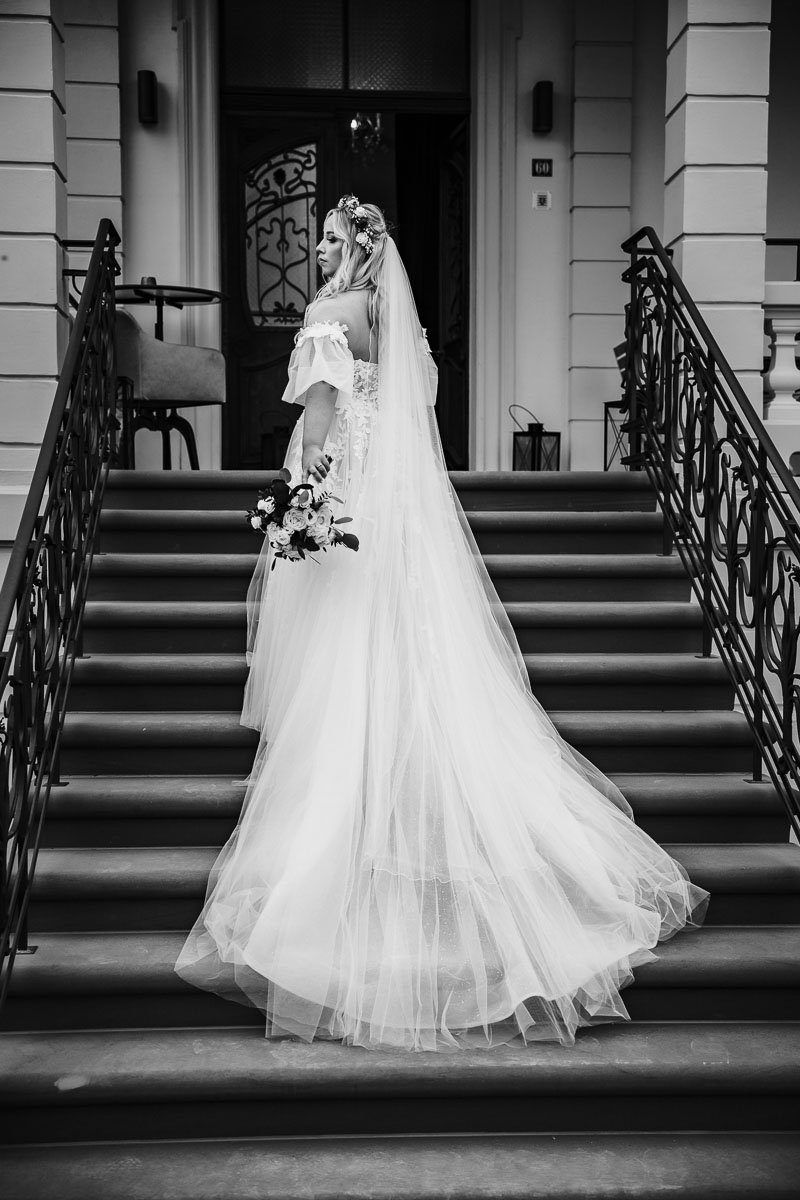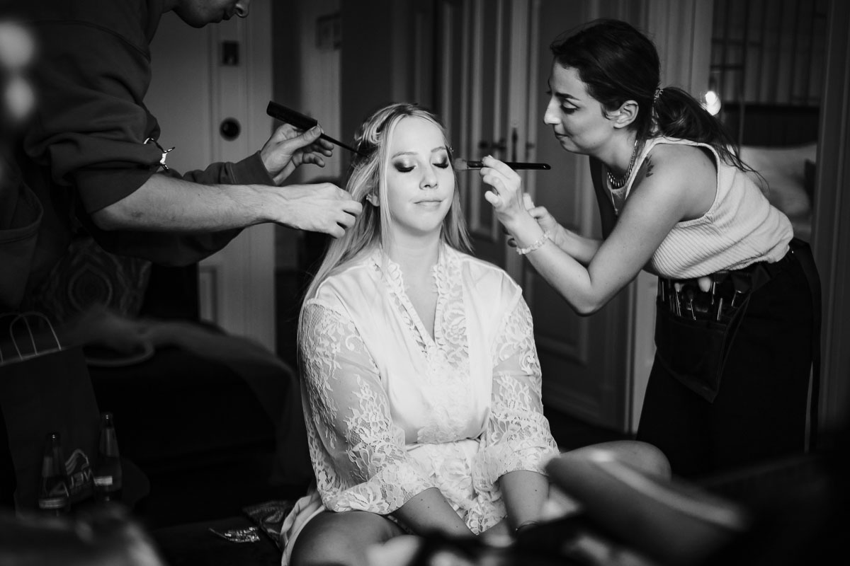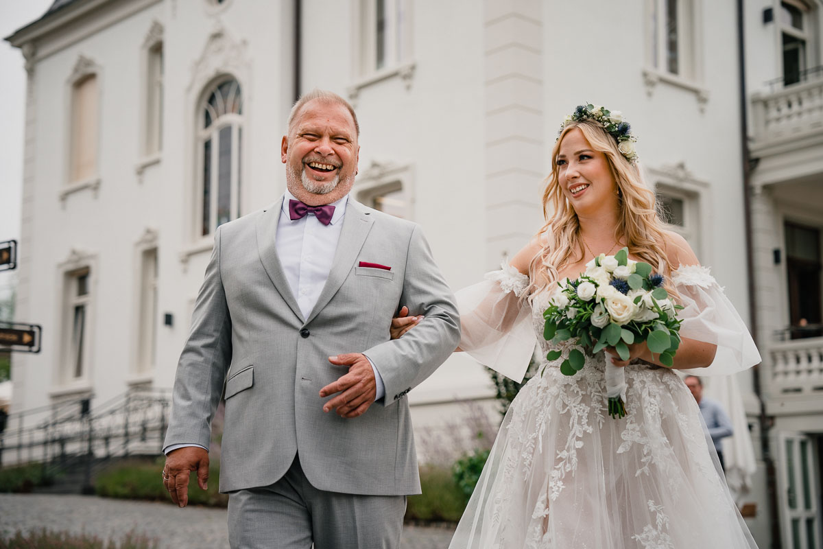 Gestartet hat der Tag mit den Brautvorbereitungen, dem sogenannten Getting ready in der Brautsuite der Villa. Dort hatte ich das Vergnügen die wunderschöne Braut beim Styling zu fotografieren. Der Bräutigam wollte eher die Zeit für sich haben, so dass wir hier nur ein paar wenige Porträts gemacht haben. Danach war dann Zeit für den First Look und einem kurzen First Look Shooting.
