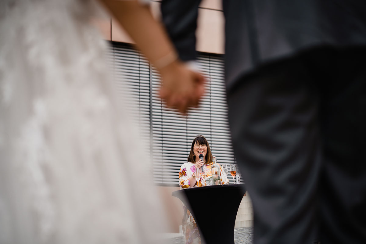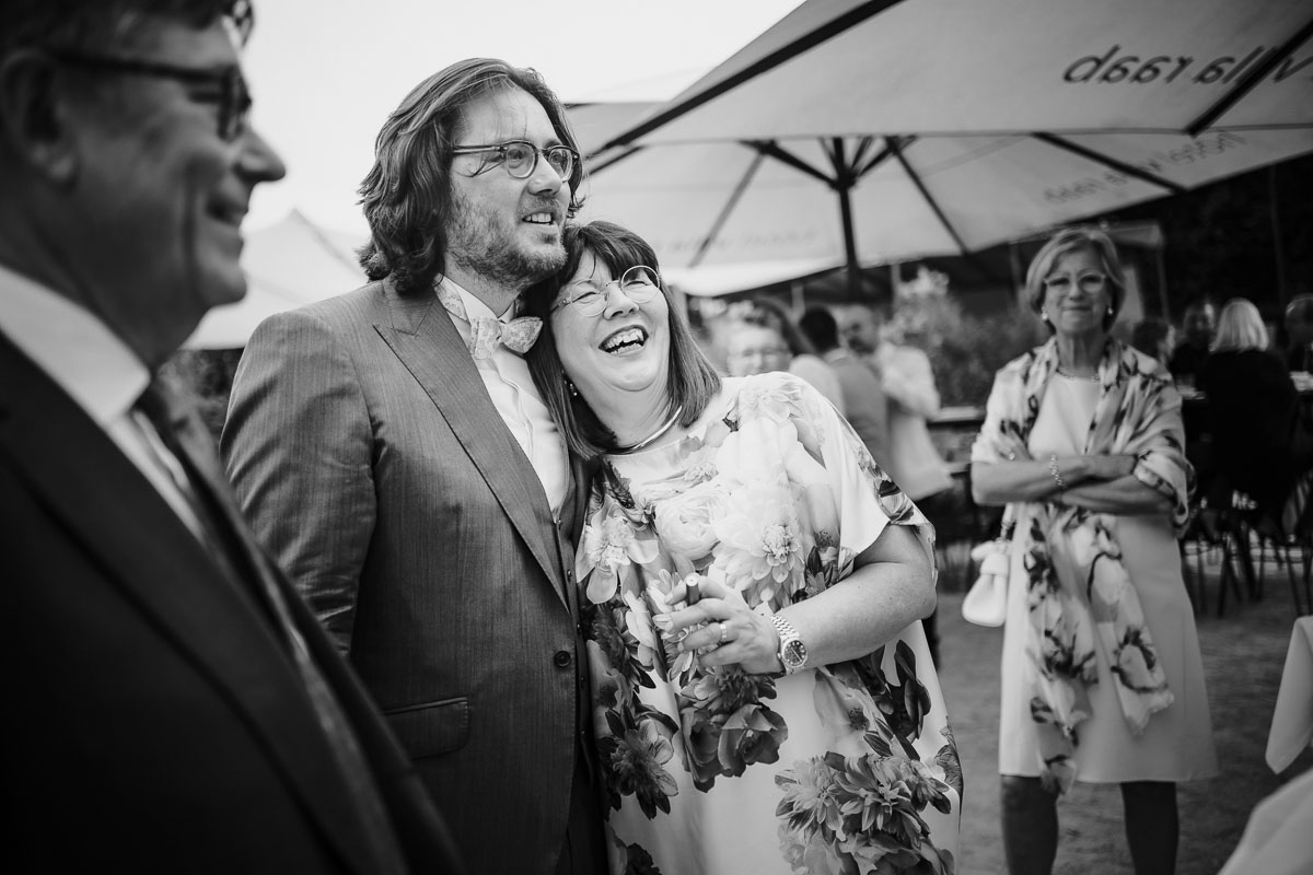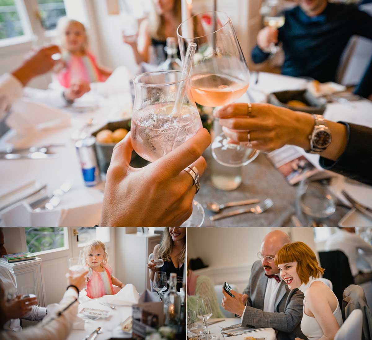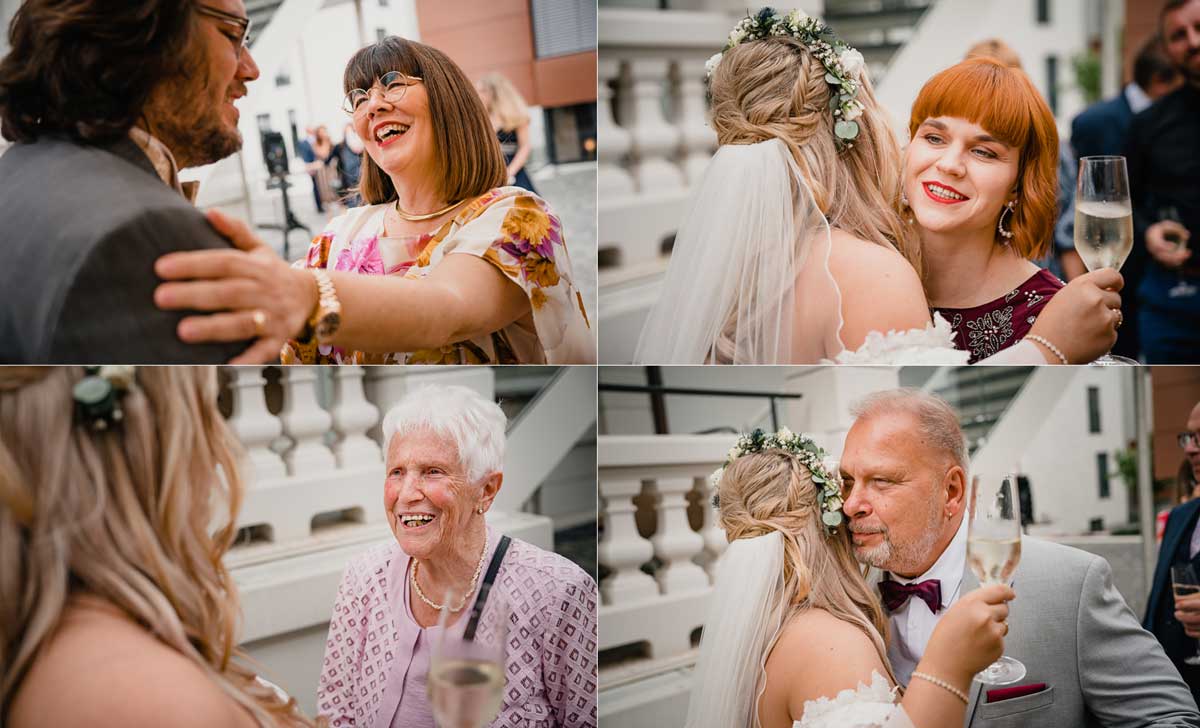 Der Sektempfang wurde im hinteren Bereich der Villa ausgerichtet, der weniger einsehbar ist. Hier fanden auch die ersten Reden der Eltern statt. Für das leibliche Wohl der Hochzeitsgäste war natürlich gesorgt. Denn auch die Hochzeitstorte wurde angeschnitten.