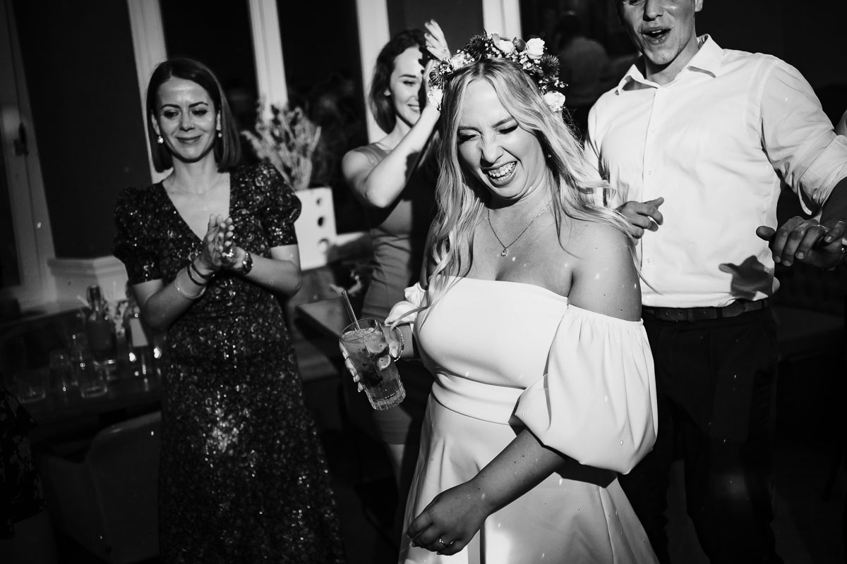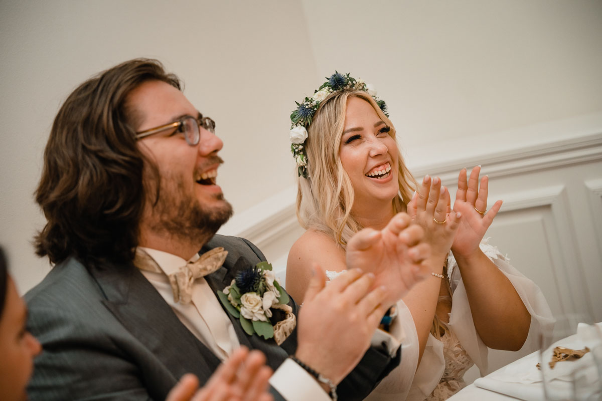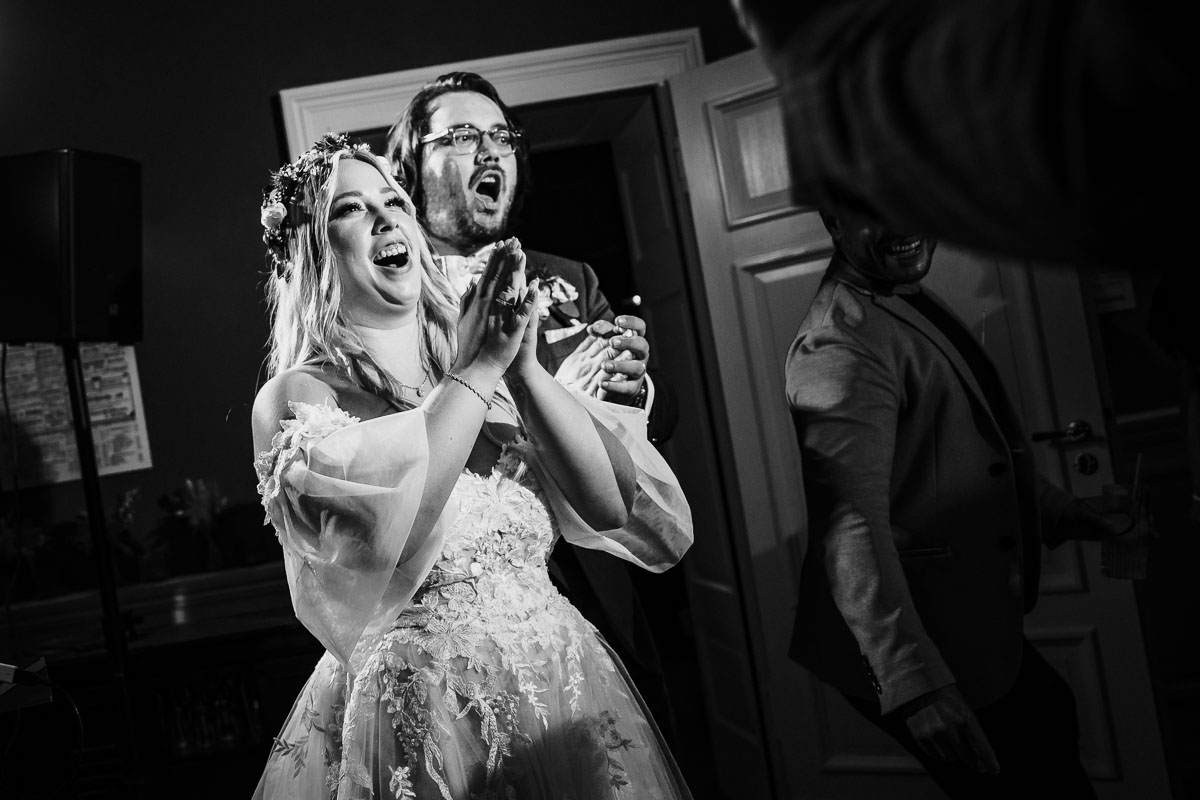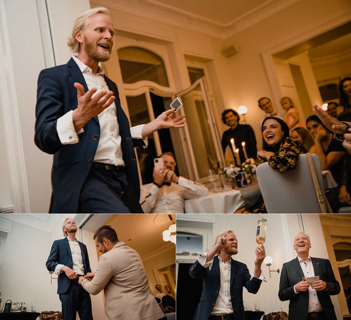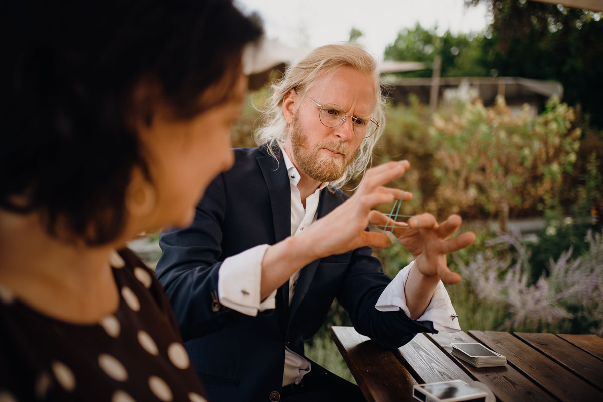 Ein Zauberer, der bereits am Nachmittag die Gäste mit einigen Tricks unterhalten hat, hat dann am Abend noch eine tolle Show abgefackelt. So kann man auch mal auf Hochzeitsspiele verzichten. Und im Anschluß ging es für die abendliche Party in die Partylounge im Erdgeschoß. Hier hieß es dann tanzen, tanzen und nochmal tanzen.