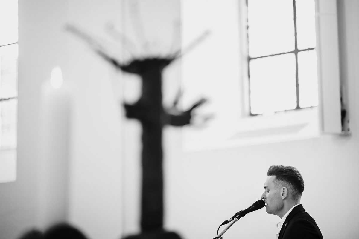 Nur wenige Schritte entfernt gebt ihr in der evangelischen Kirche euer Jawort. Ich positioniere mich dezent im Hintergrund. So kann ich den feierlichen Akt der kirchliche Trauung, den Ringtausch und den ersten Kuss als Ehepaar einfangen. Der festliche Ablauf bleibt dabei völlig ungestört. Die hohen Fenster und der würdige Altar bilden einen ergreifenden Rahmen. Diese zentralen Bilder eures Tages erhalten dadurch eine besondere Tiefe.