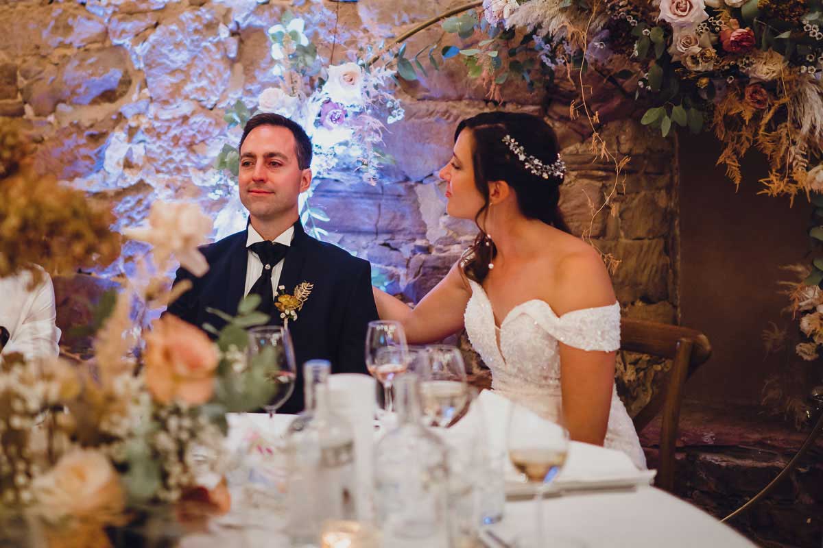 Am Abend verlagerte sich die Feier in die urige Festscheune, die mit ihrem warmen, rustikalen Charme den perfekten Rahmen für eine ausgelassene Hochzeitsfeier bot. Zwischen romantischer Stimmung, herzlichen Reden und einer mitreißenden Party wurde bis in die Nacht hinein gefeiert – ein rundum unvergesslicher Hochzeitstag.
