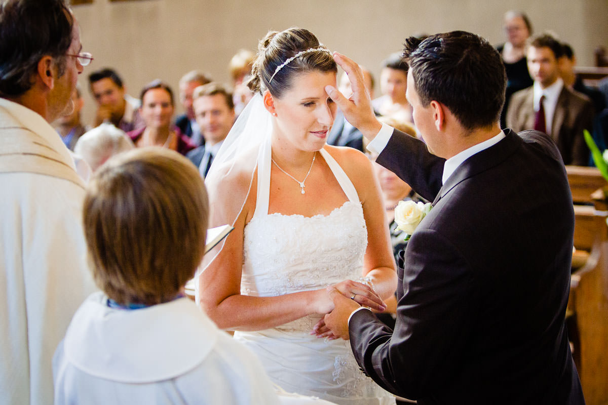 Der Tag hat mit dem getting ready der Braut im Weingut Zumstein begonnen. Danach ging es für die Trauung in einen Nachbarort. Dort haben sich die Beiden kirchlich das Ja-Wort gegeben, Nach der schönen Trauung ging es mit dem Planwagen ins Grüne, mitten in die Weinberge. Das ist ein Service der vom Weingut Zumstein angeboten wird. Dort wurde mit Wein und Sekt und einer schönen Aussicht gefeiert. Zwischendurch sind wir für die Hochzeitsportraits verschwunden. Zum Schluss wurde es noch richtig dramatisch und der Himmel hat sich zugezogen. Also noch schnell die letzten Bilder und dann ging es wieder zurück ins Weingut Zumstein. Die Feier fand im schönen Gewölbekeller des Weinguts statt. Und dass es draussen geregnet hat, hat keinen gestört.