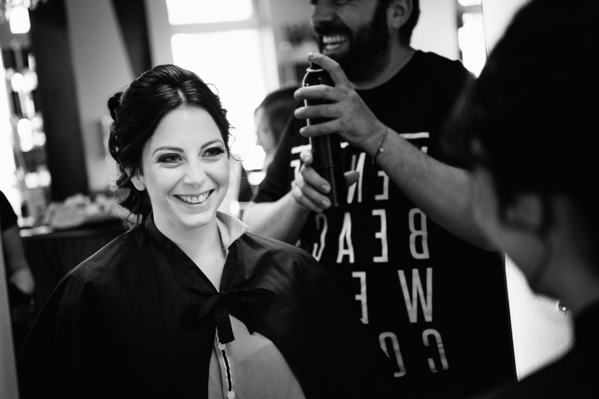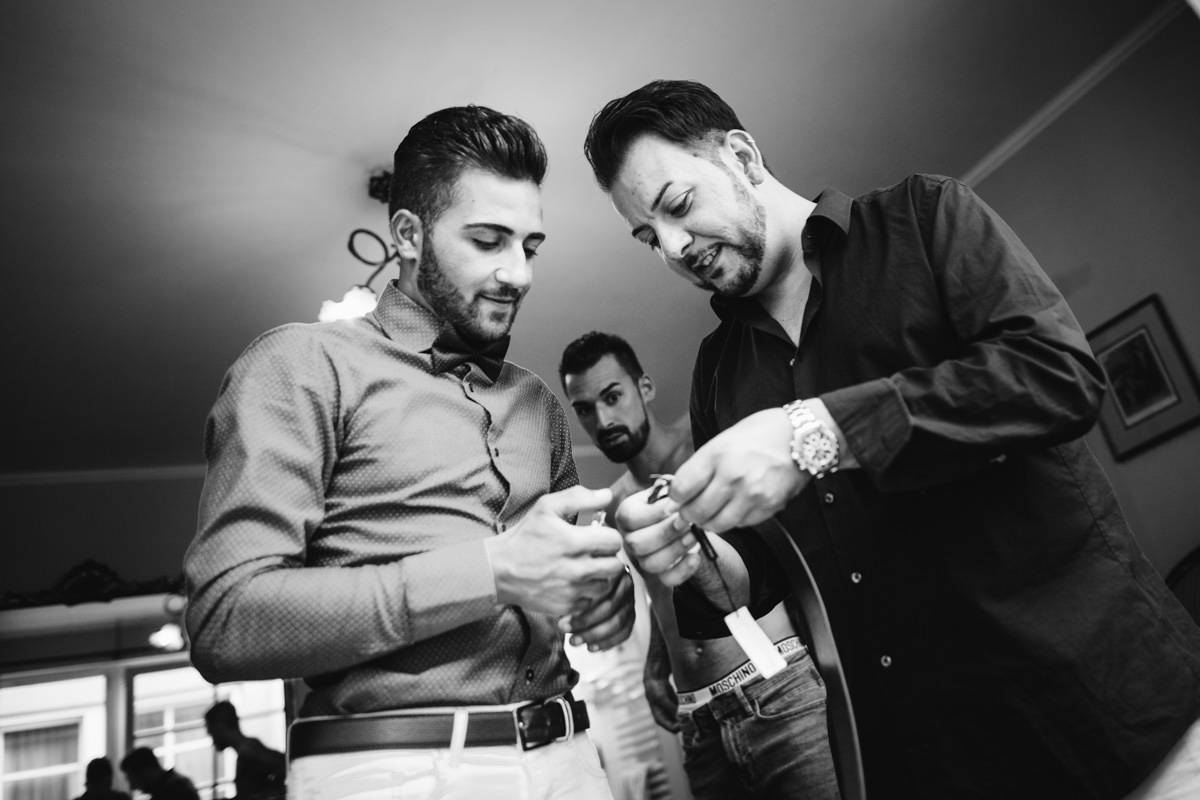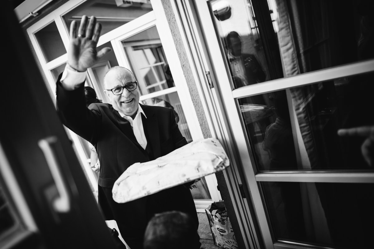 Der Morgen begann mit viel Fahrerei zwischen den einzelnen Locations. Die Brautvorbereitungen fanden bei Daniele Hair & Lifestyle in Gondelsheim statt, dem Friseur des Vertrauens der Braut. Danach ging es nach Pforzheim in die Innenstadt, wo sich der Bräutigam mit seinen Freunden und Eltern zurecht gemacht hat. Ich habe die Zeit sehr genossen, dass ich auch mal länger mit dem Bräutigam und seinen Freunden in Pforzheim verbringen durfte. Lustige und herzliche italienische Gesellschaft. Dann wiederum bin ich nach Neulingen-Bauschlott gefahren, zu den Eltern der Braut, hier wurde das Brautkleid angezogen, und die Braut konnte von einem Teil der Familie bewundert werden. Italienische Tradition halt.
