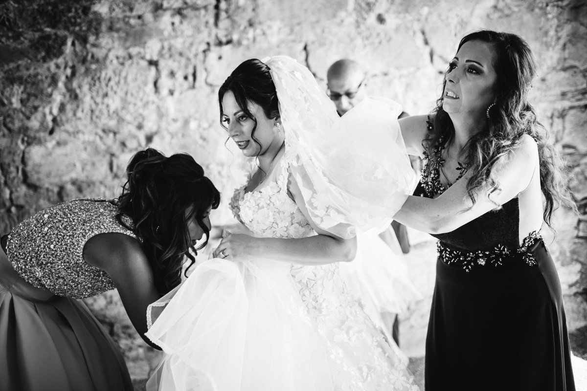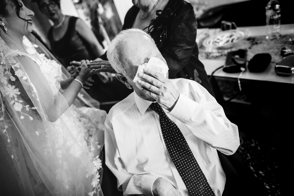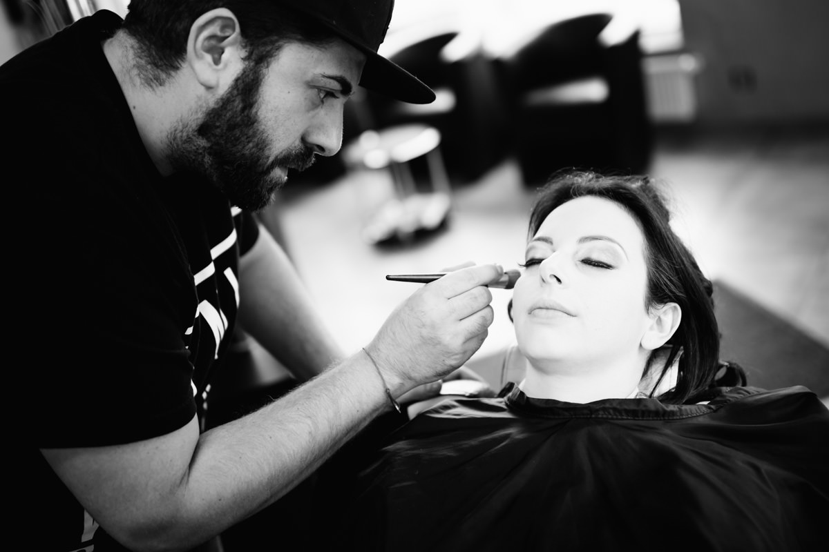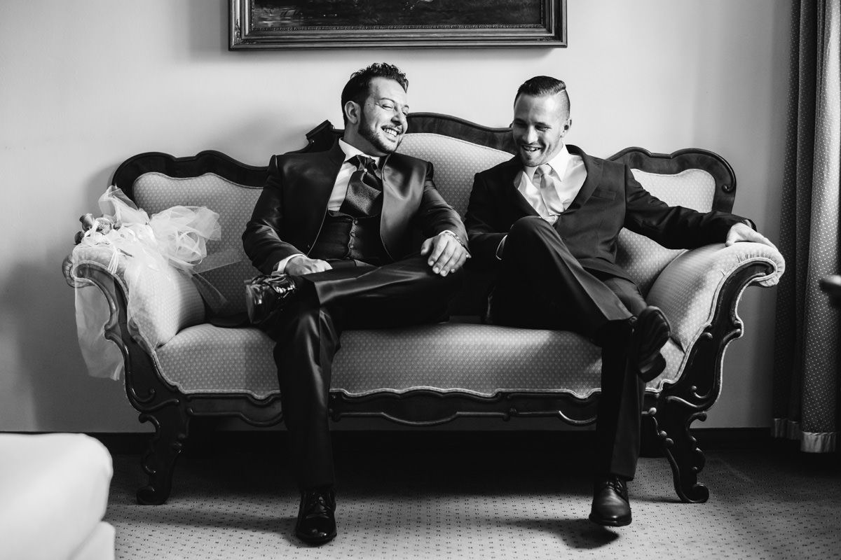 Der Morgen begann mit viel Fahrerei zwischen den einzelnen Locations. Die Brautvorbereitungen fanden bei Daniele Hair & Lifestyle in Gondelsheim statt, dem Friseur des Vertrauens der Braut. Danach ging es nach Pforzheim in die Innenstadt, wo sich der Bräutigam mit seinen Freunden und Eltern zurecht gemacht hat. Ich habe die Zeit sehr genossen, dass ich auch mal länger mit dem Bräutigam und seinen Freunden in Pforzheim verbringen durfte. Lustige und herzliche italienische Gesellschaft. Dann wiederum bin ich nach Neulingen-Bauschlott gefahren, zu den Eltern der Braut, hier wurde das Brautkleid angezogen, und die Braut konnte von einem Teil der Familie bewundert werden. Italienische Tradition halt.