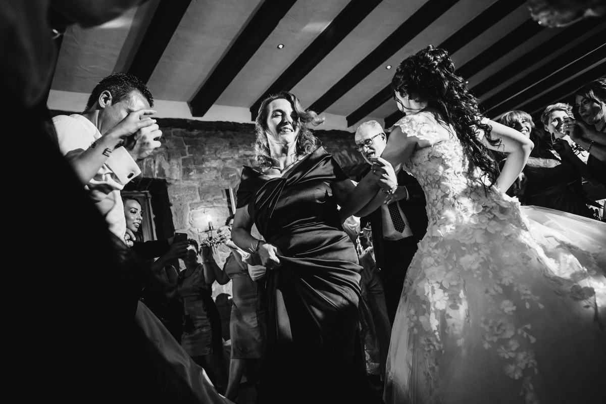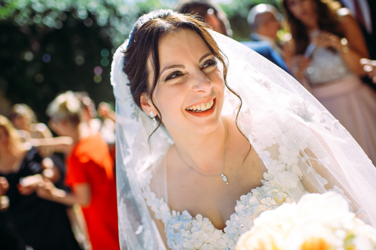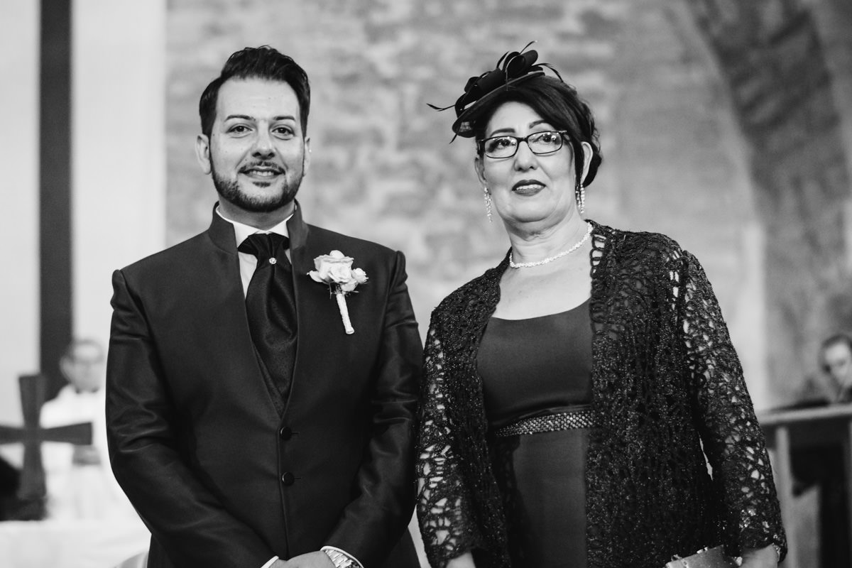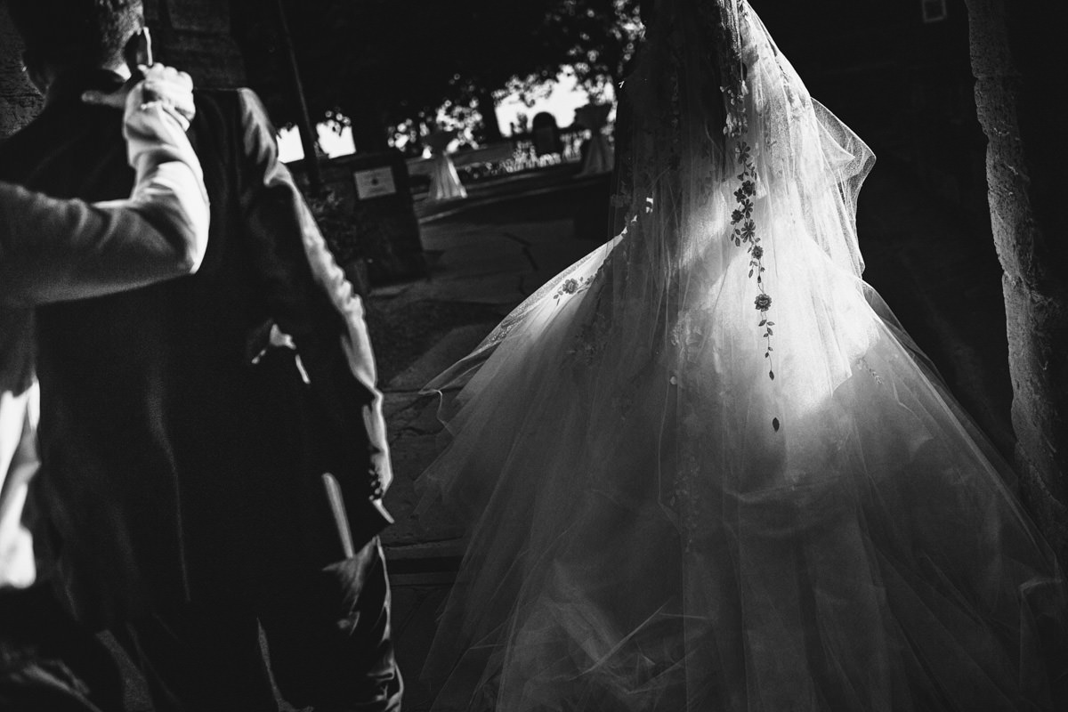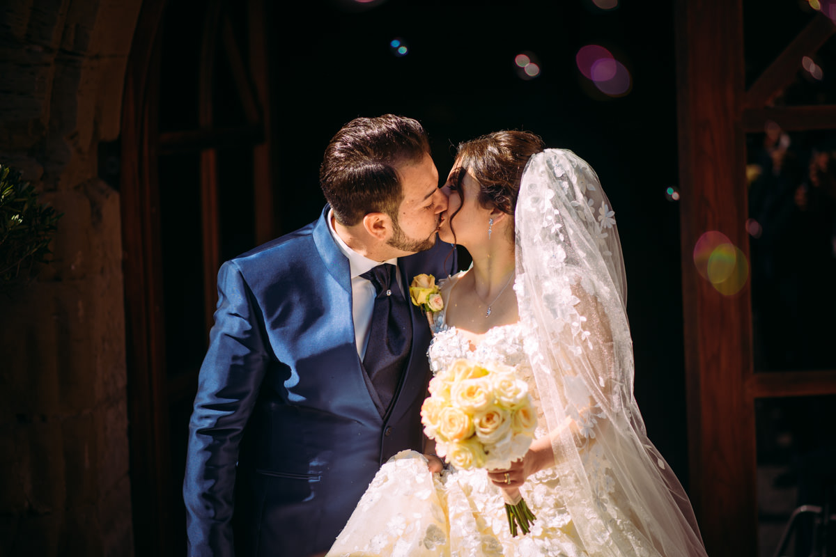Von Pforzheim ging es dann nach Sulzfeld in die Hochzeitslocation Burg Ravensburg. Hier wurde die Braut schon sehnlichst erwartet, da wir ein wenig zu spät dran waren. In der Traukapelle, ein grosser Saal im Gewölbekeller der Burg, wurde die feierliche italienische Trauung zelebriert. Der Gewölbekeller ist fototechnisch nicht einfach, da der Raum sehr dunkel ist und nur spärlich beleuchtet, und von hinten durch den Eingang die Sonne stark reinstahlt, aber halt leider dort, wo man das Licht nicht braucht. Aber als Hochzeitsfotograf hat man eben nicht den ganzen Tag die ideale Bedingungen zum fotografieren.