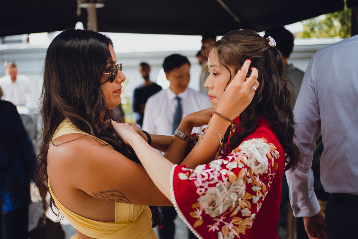 Der Tag begann im Hotel Qube in Heidelberg, wo auf der Dachterrasse eine traditionelle chinesische Teezeremonie stattfand. Unter strahlend blauem Himmel und warmem Sonnenschein zelebrierte das Paar mit seinen Eltern diese berührende Zeremonie, die von emotionalen Momenten und glücklichen Tränen geprägt war. Ein zauberhafter Auftakt für einen unvergesslichen Tag.