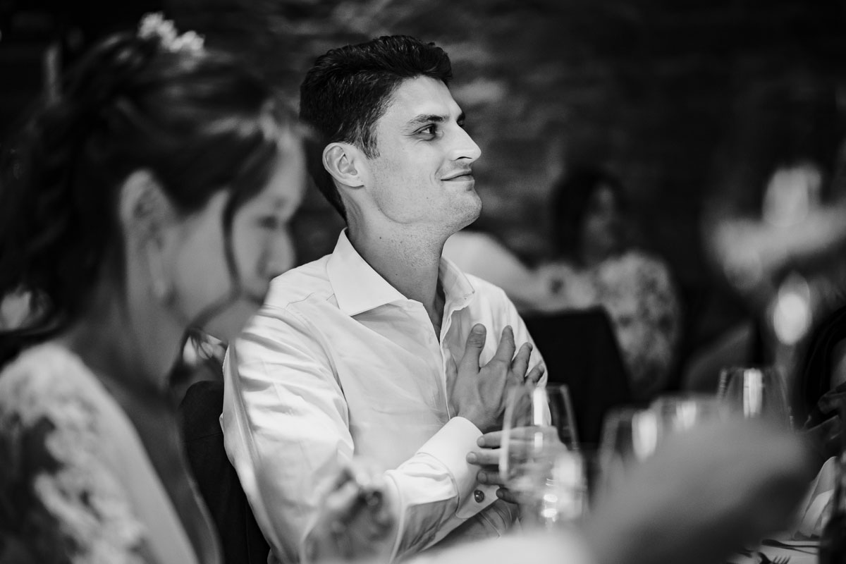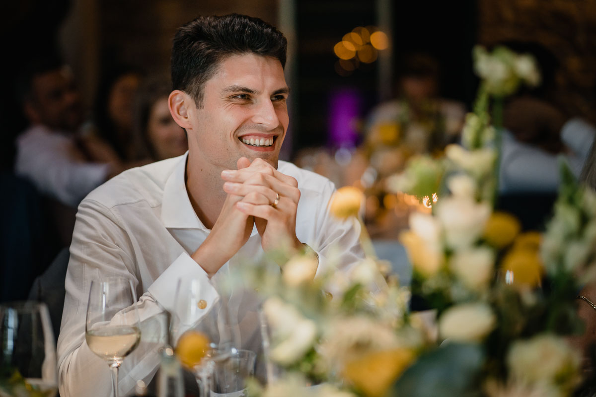 Trotz des straffen Zeitplans fand ich kurz Zeit, um einige wundervolle Porträtaufnahmen des Paares festzuhalten, bevor das Abendprogramm begann. Wie bei englischen Hochzeiten üblich, wurden herzliche Reden gehalten, die das Brautpaar gleichermaßen zum Lachen und zum Weinen brachten. Auch das ein oder andere Hochzeitsspiel durfte nicht fehlen. Nach dem traditionellen Anschneiden der Hochzeitstorte und dem Eröffnungstanz brach eine ausgelassene Feier aus, bei der die Gäste voller Begeisterung das Tanzbein schwangen und das Glück des Paares feierten.